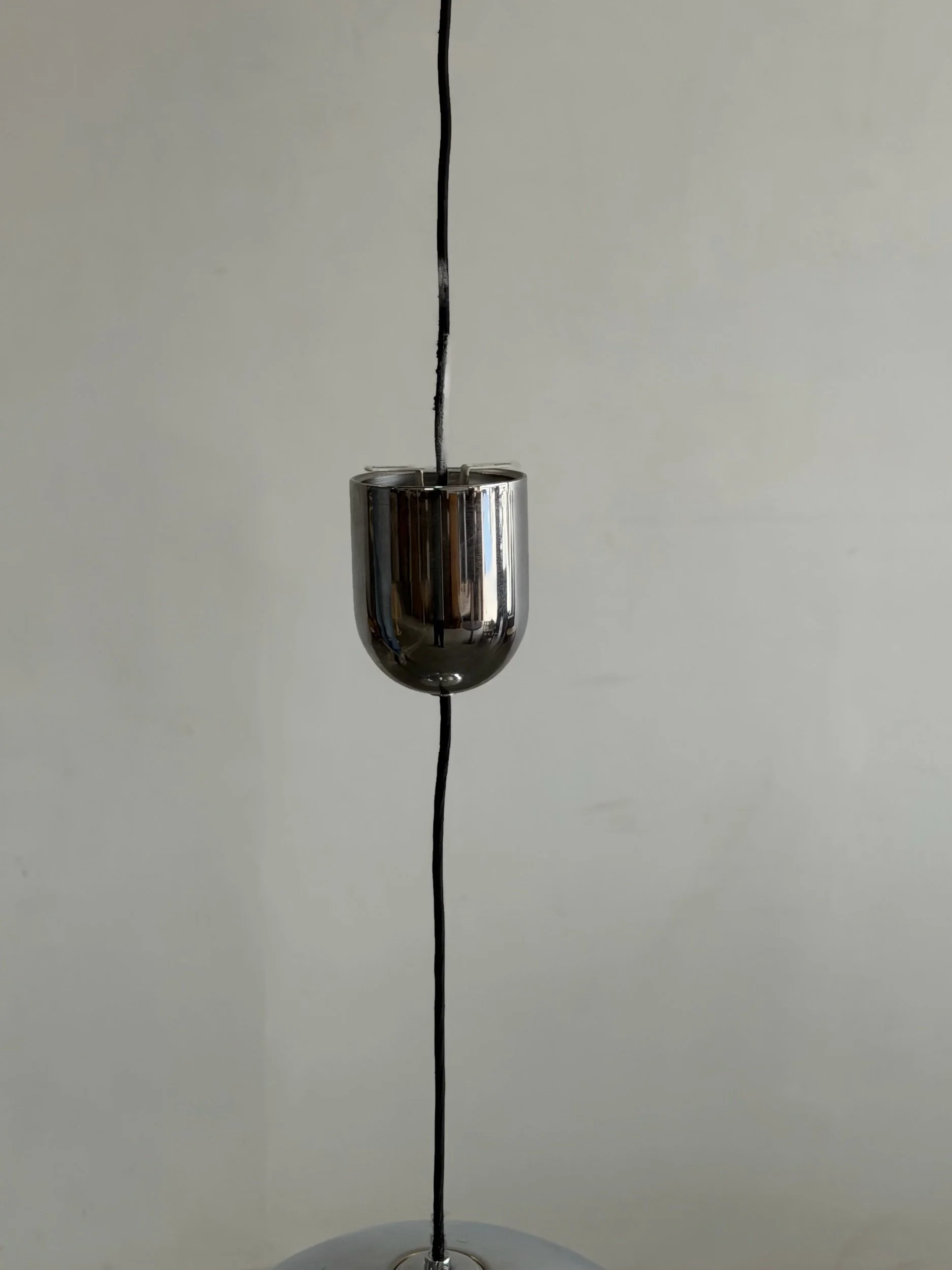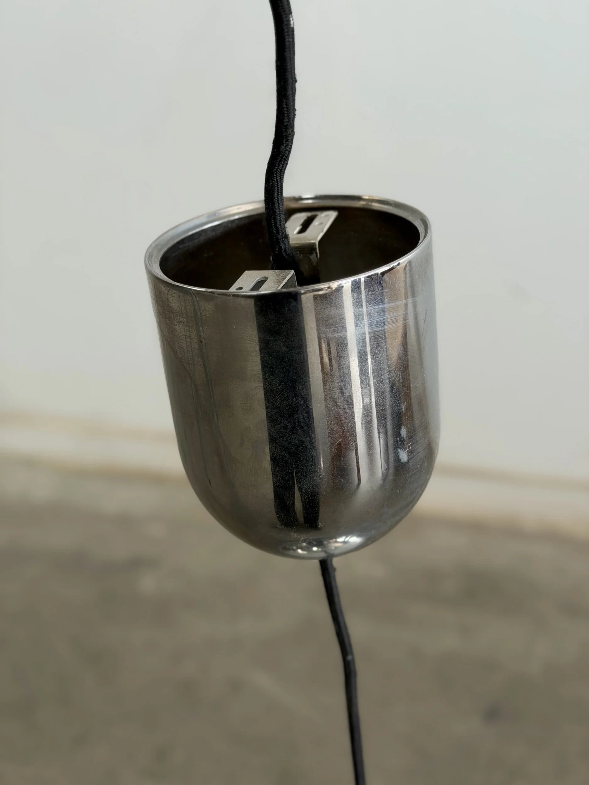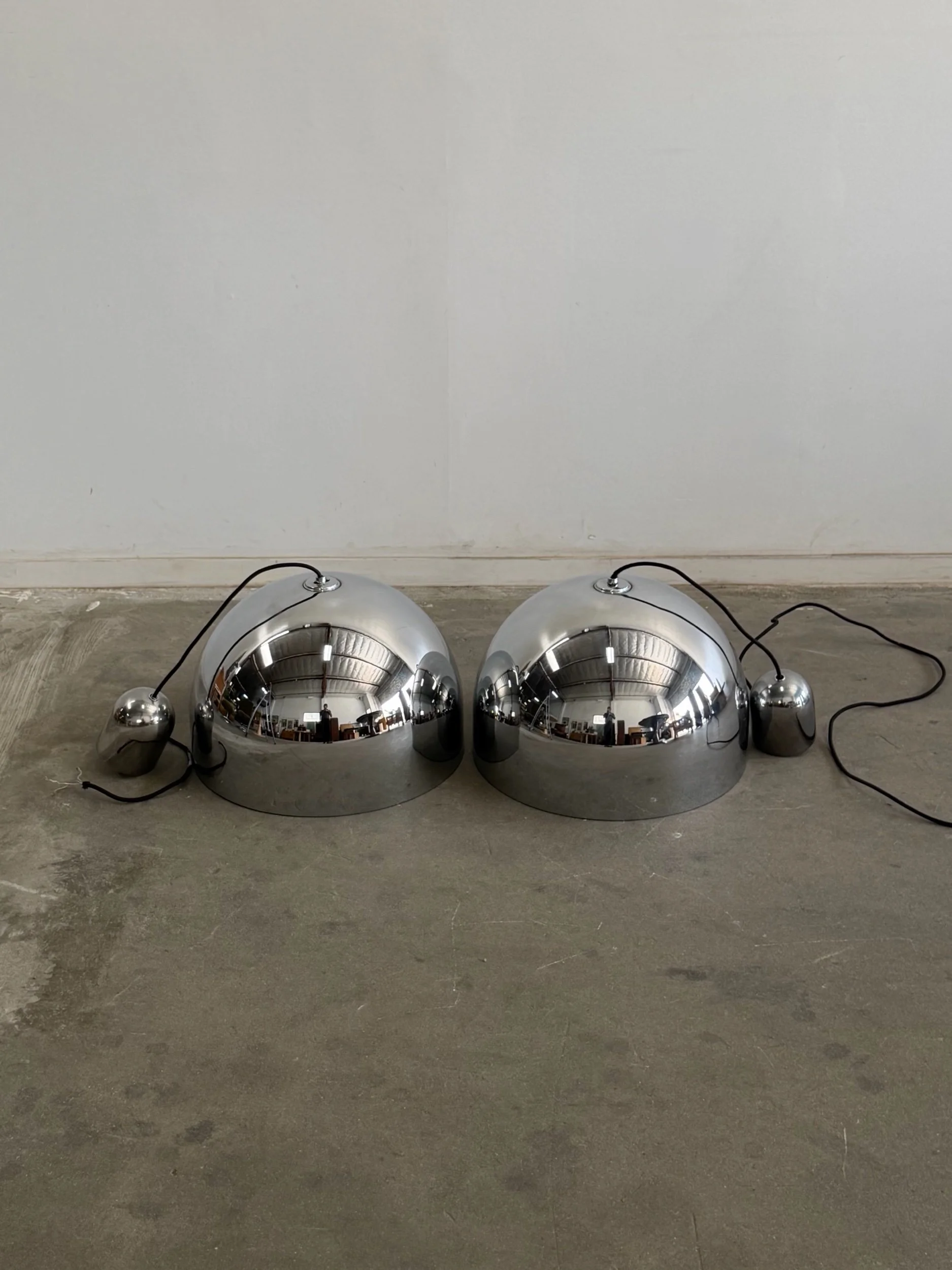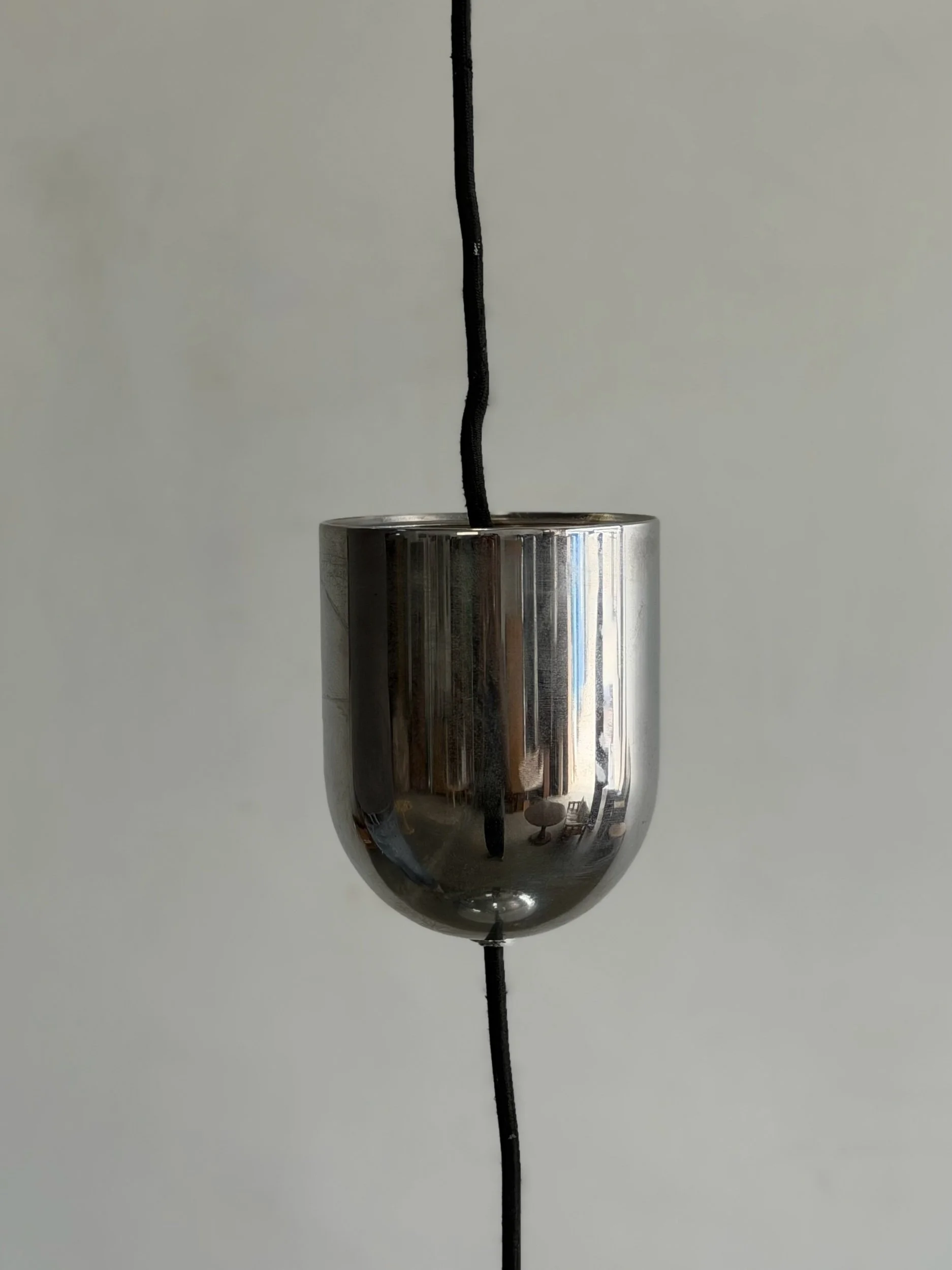 Chrome metal pendants in functional condition. Item origin is unknown.