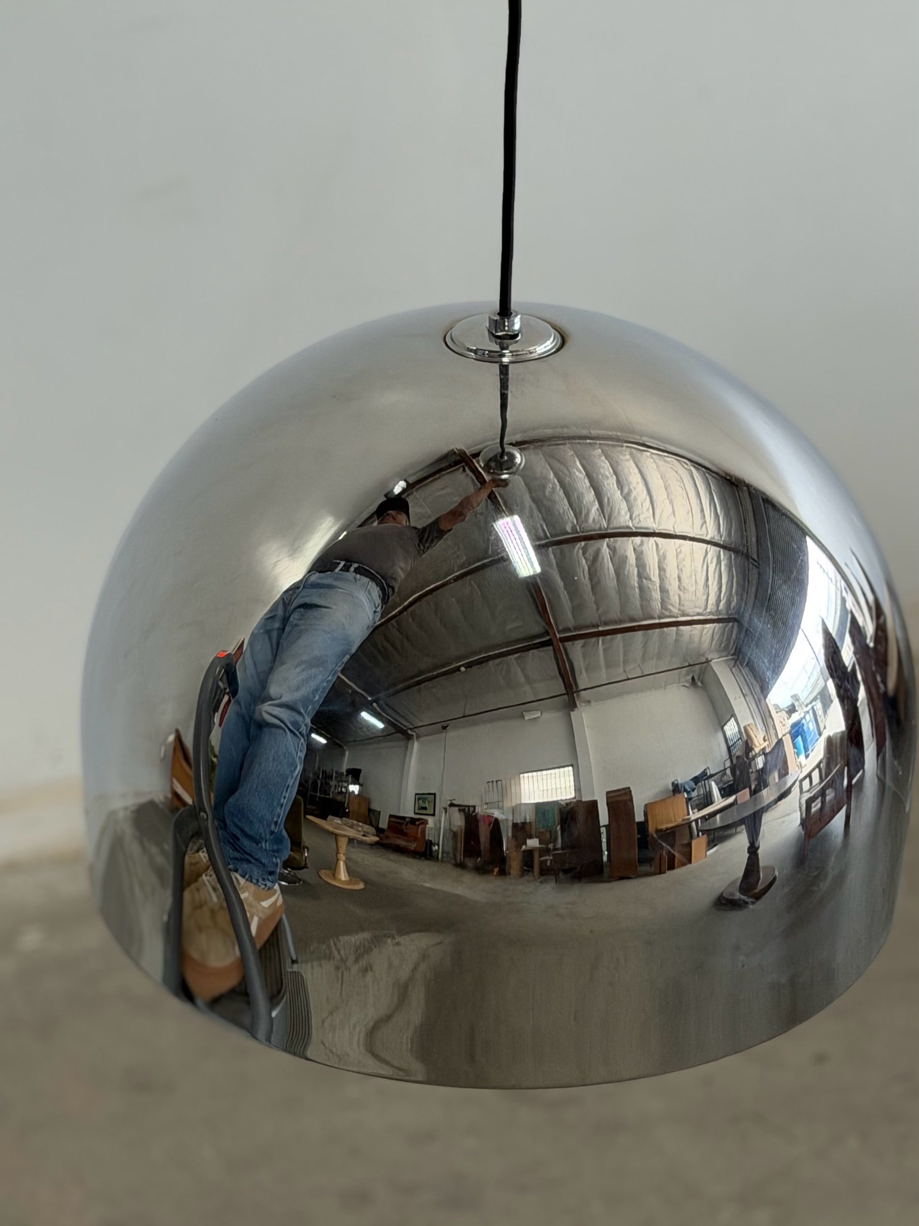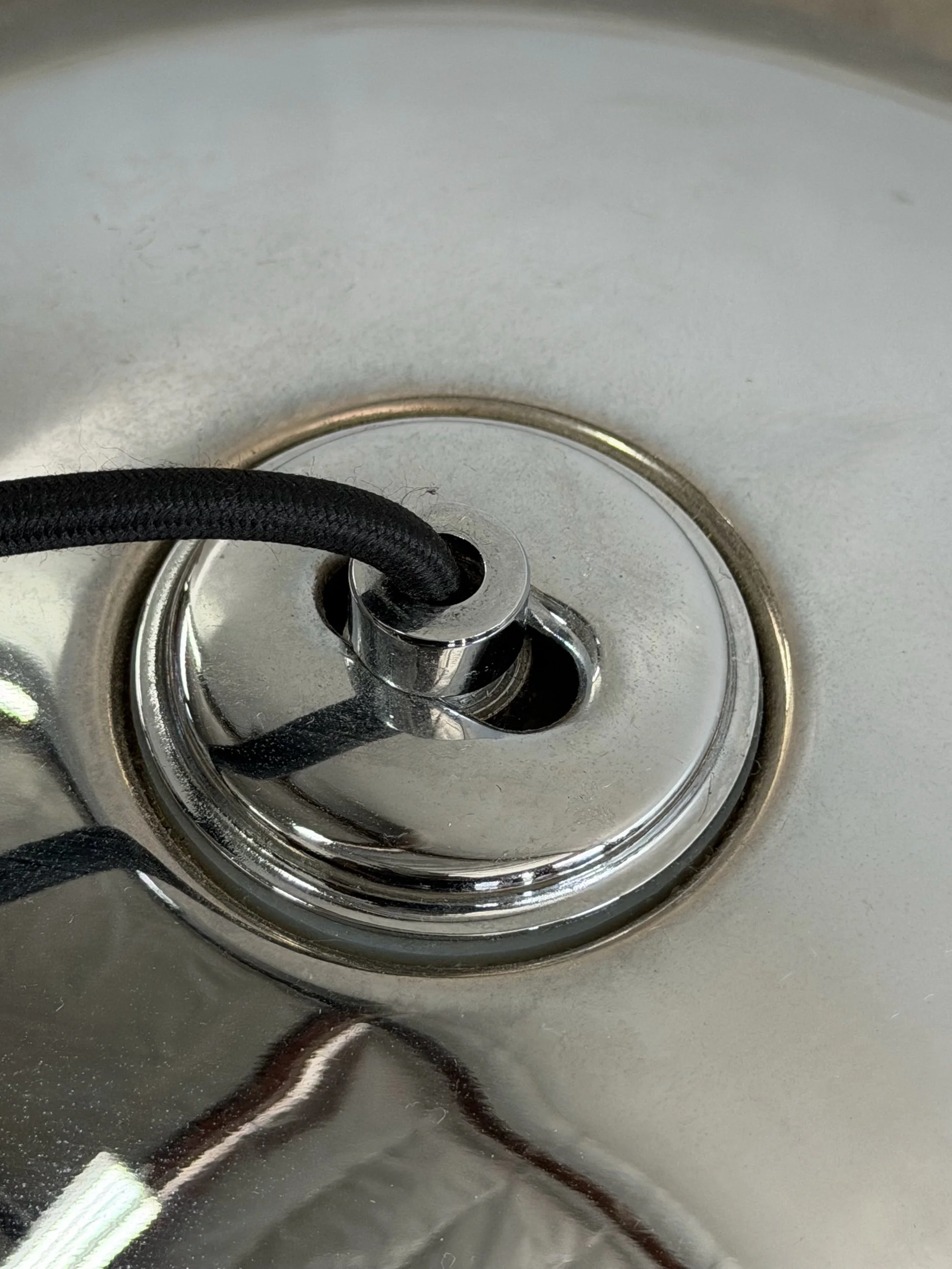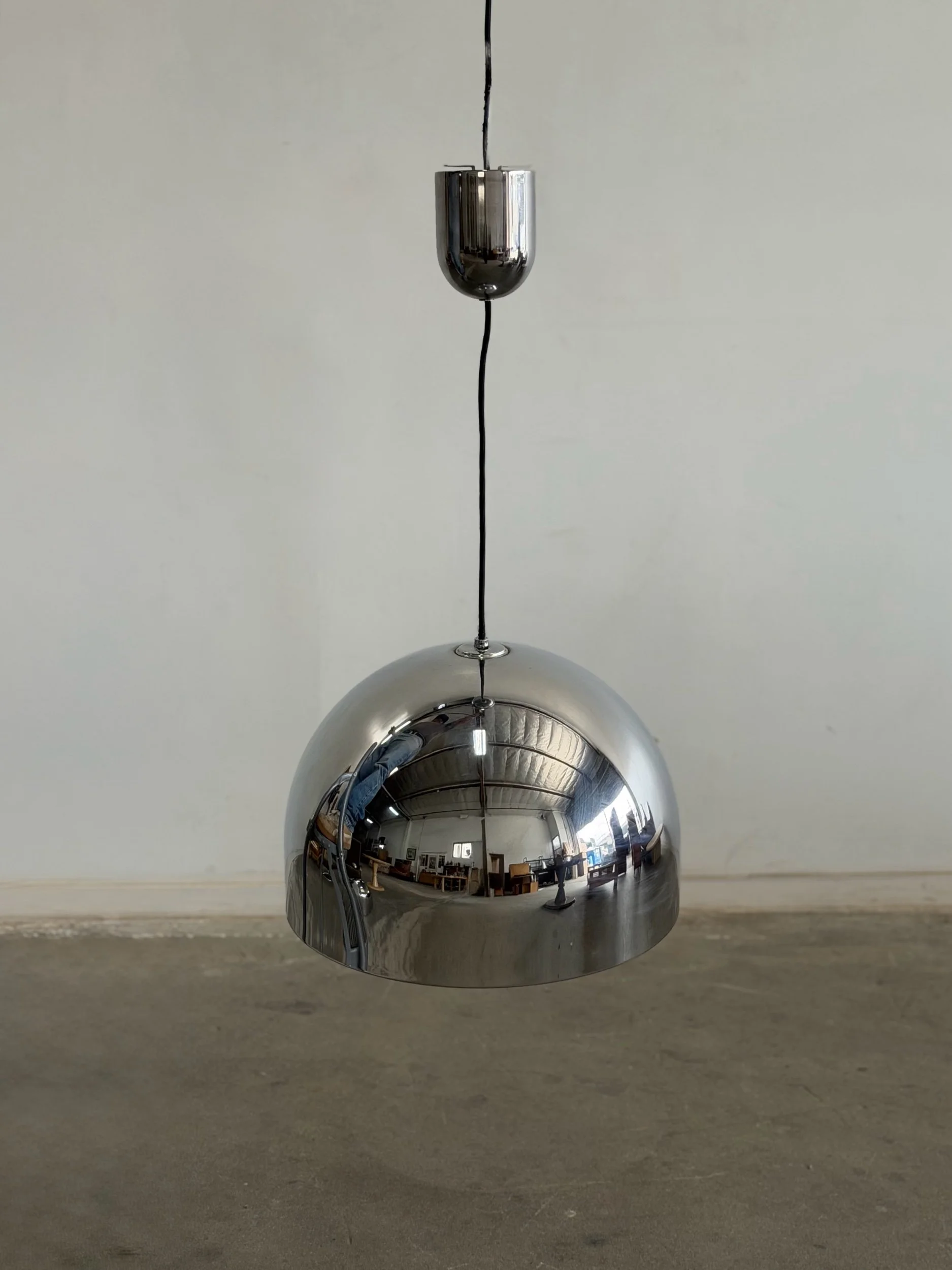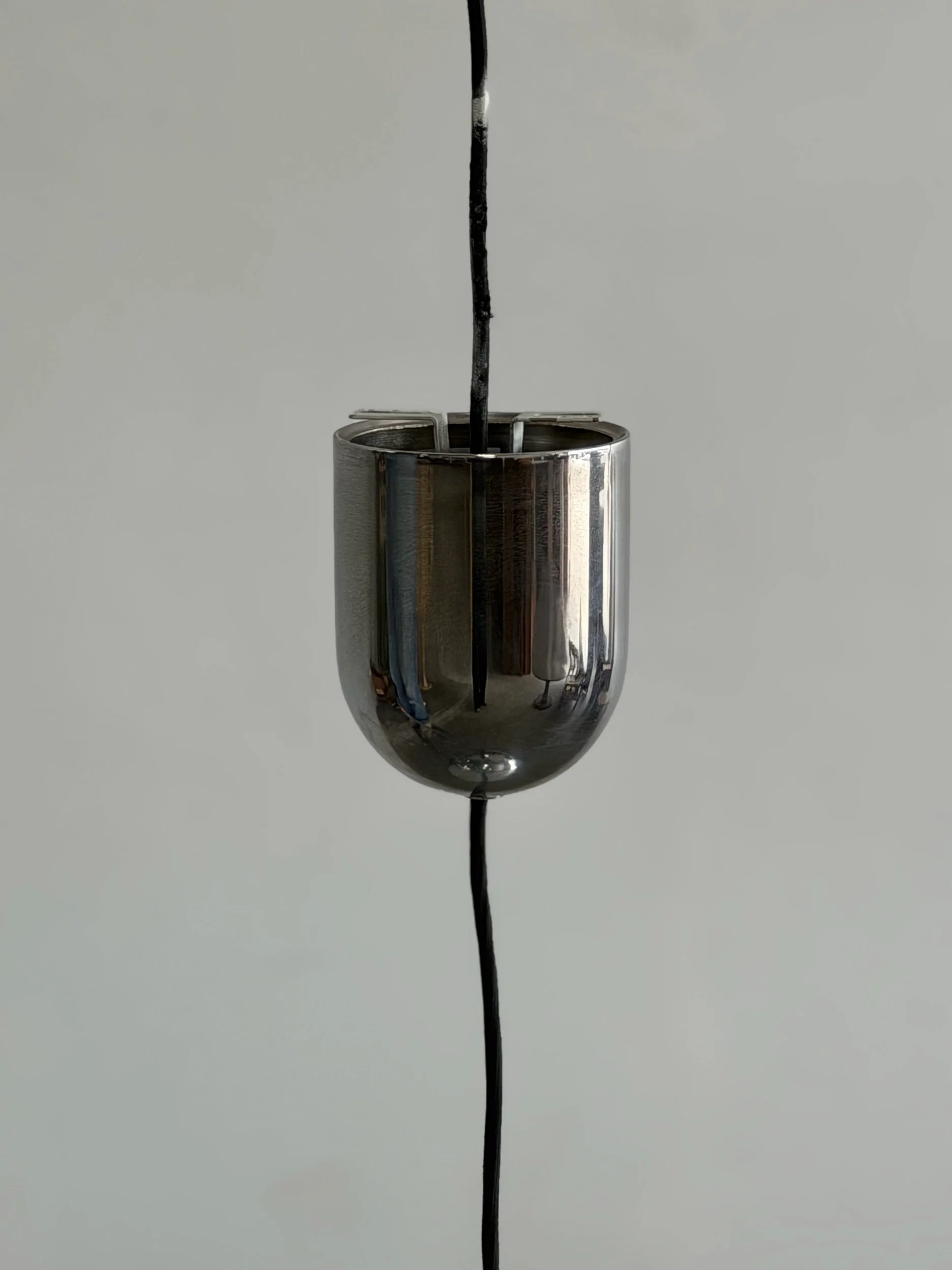 Chrome metal pendants in functional condition. Item origin is unknown.
