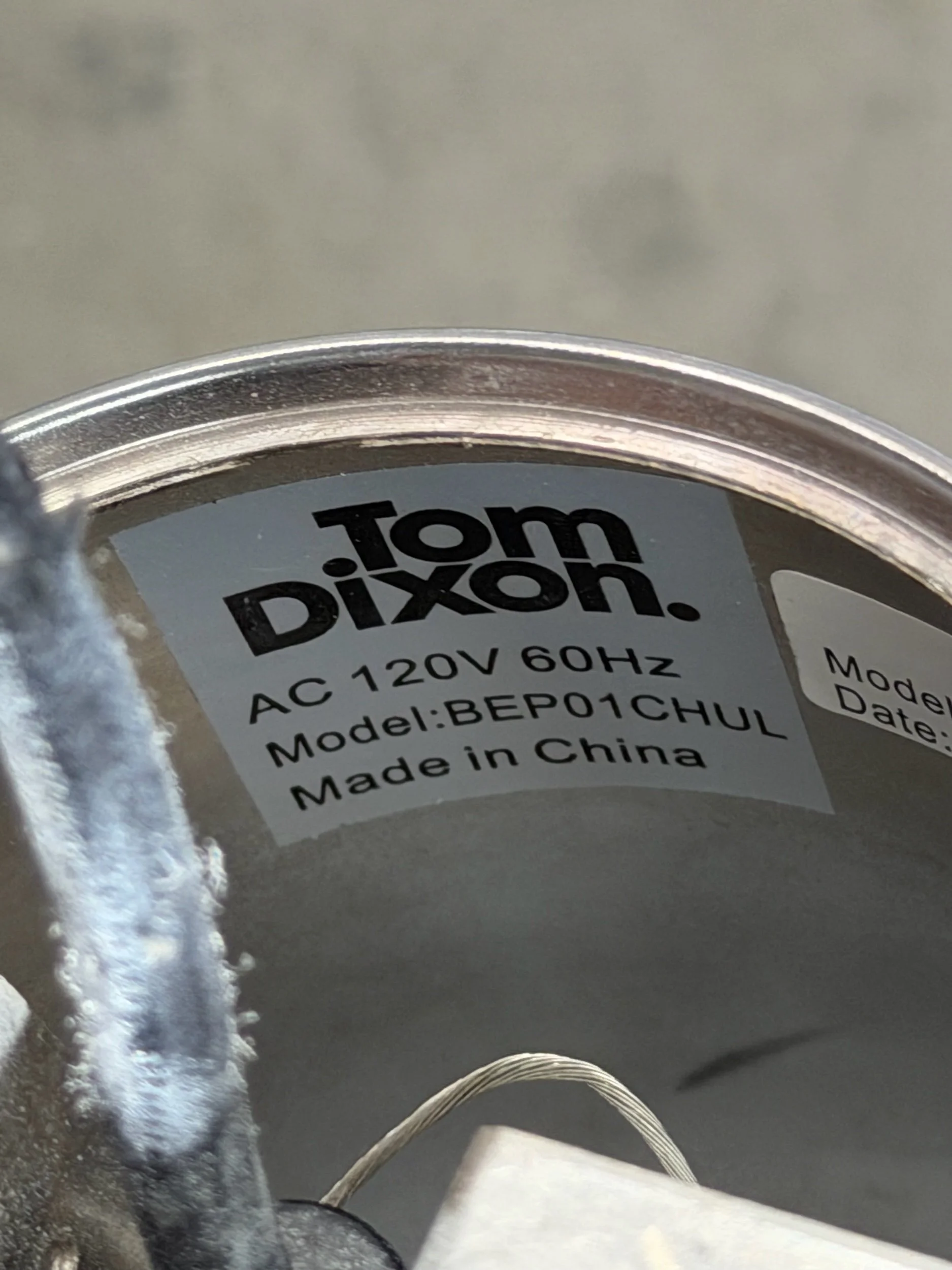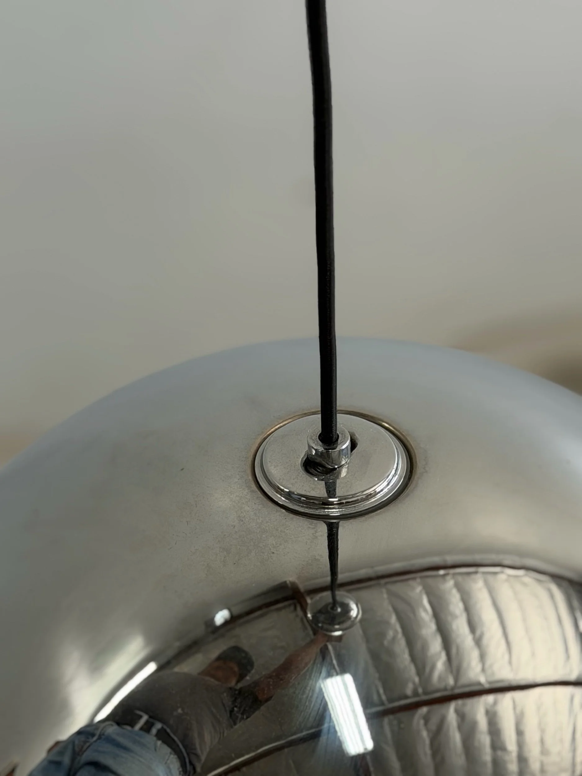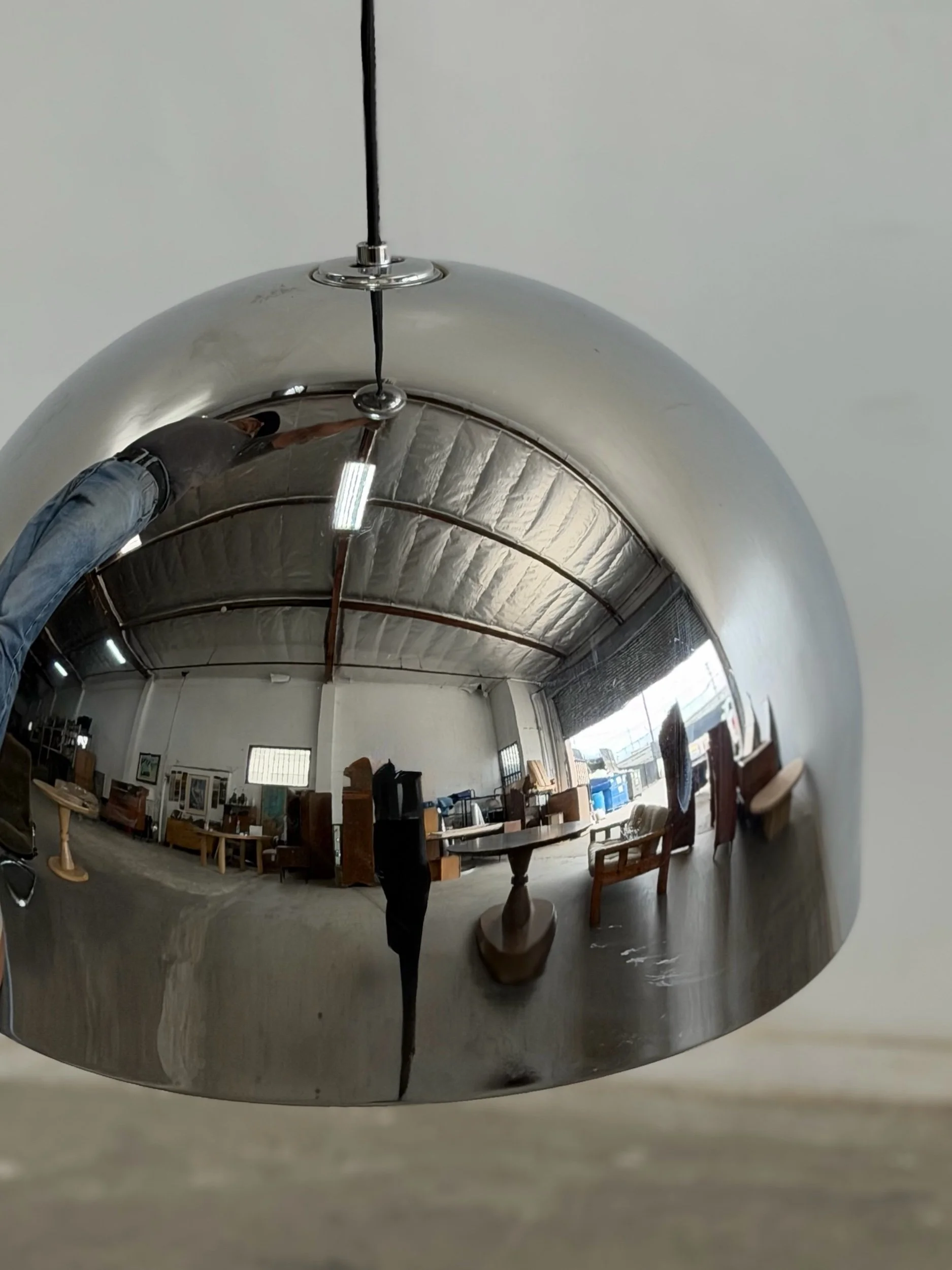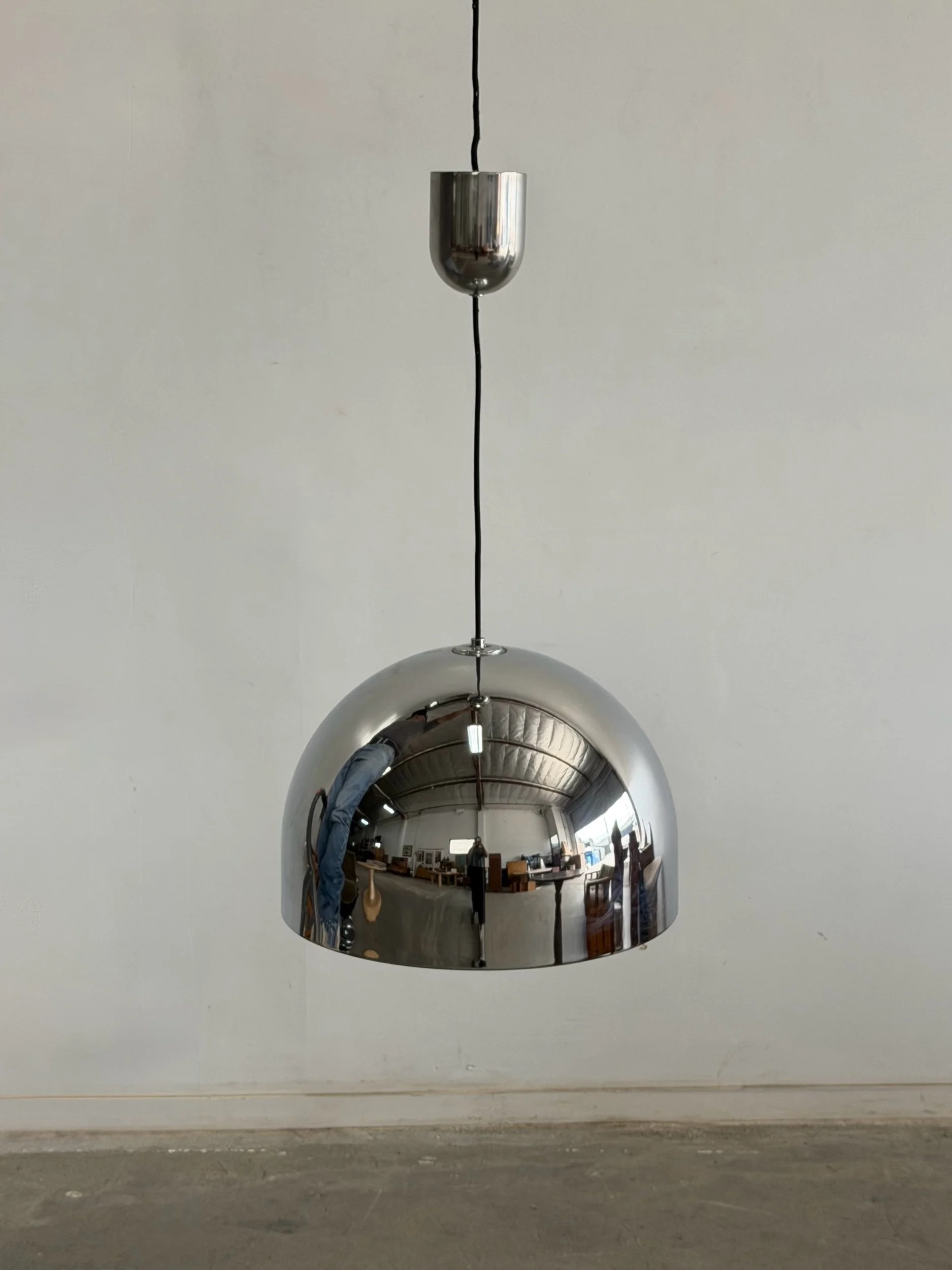 Chrome metal pendants in functional condition. Item origin is unknown.