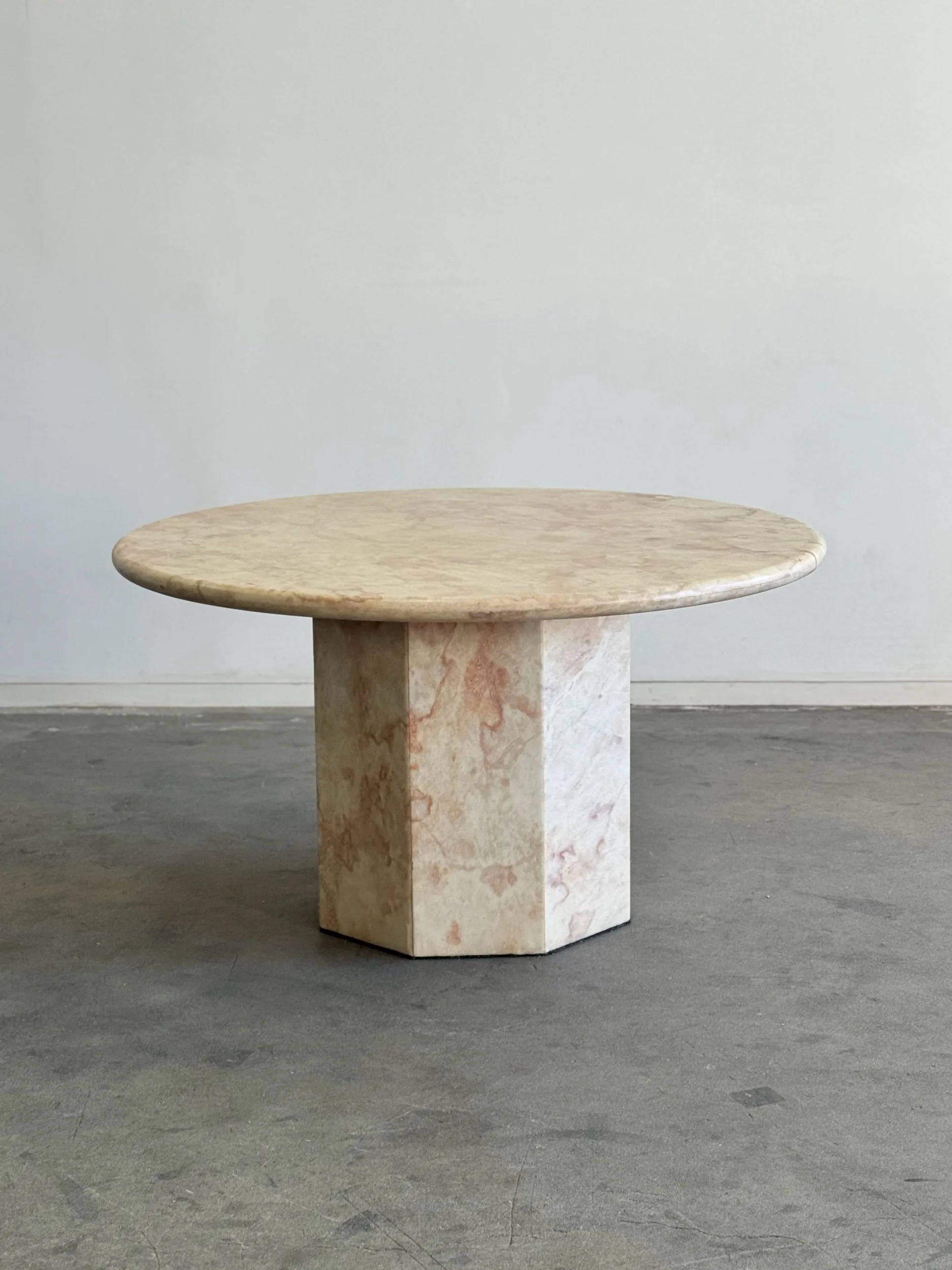 Fully restored vintage marble table in overall great condition. Unit features new marble mesh on the base , new adhesive , and a new large furniture rug pad to keep the marble from hitting the floor directly. Item also has a new wooden surface underneath to lock the surface into place with the base. Table and base show well with no major areas of wear.