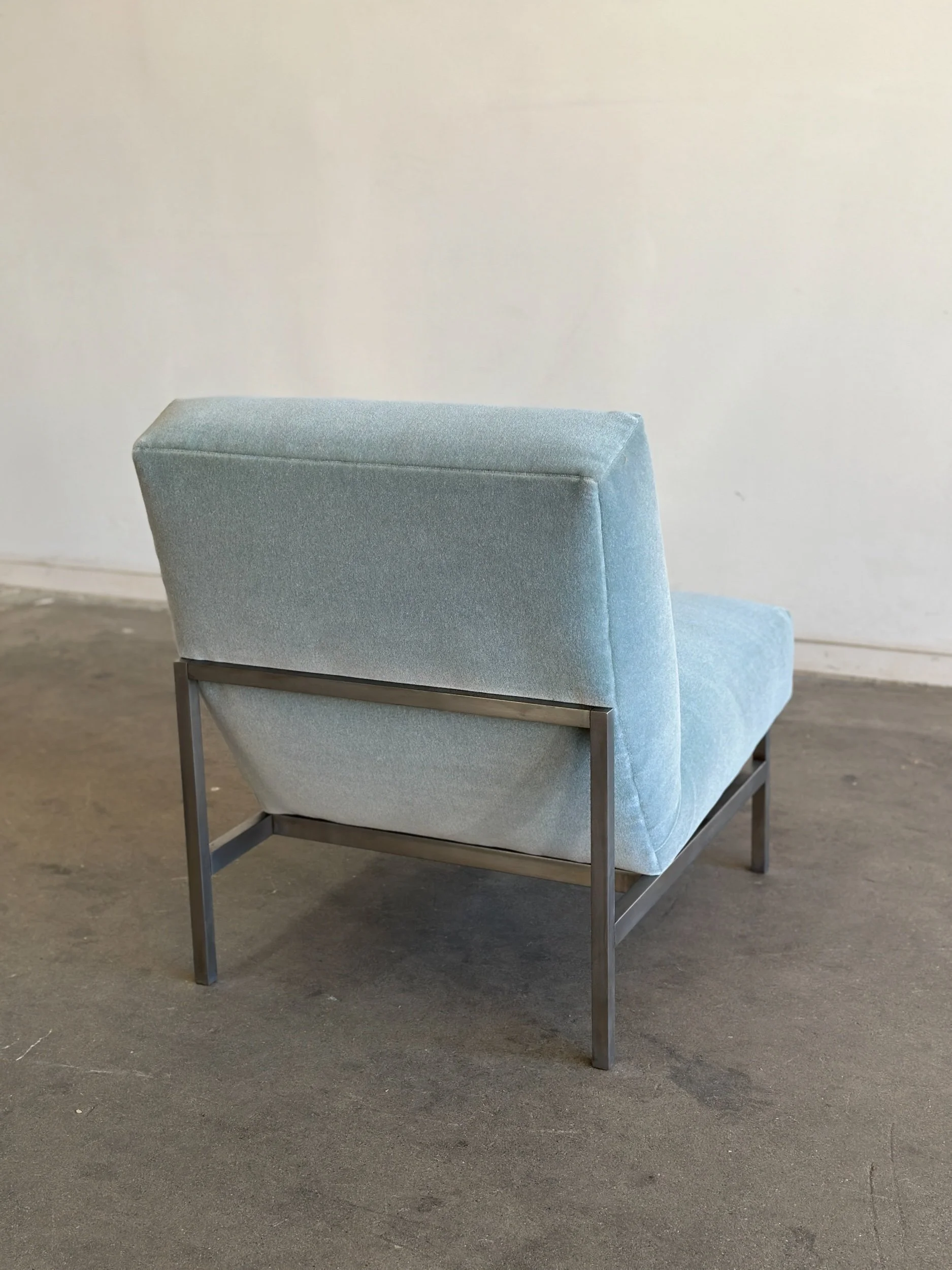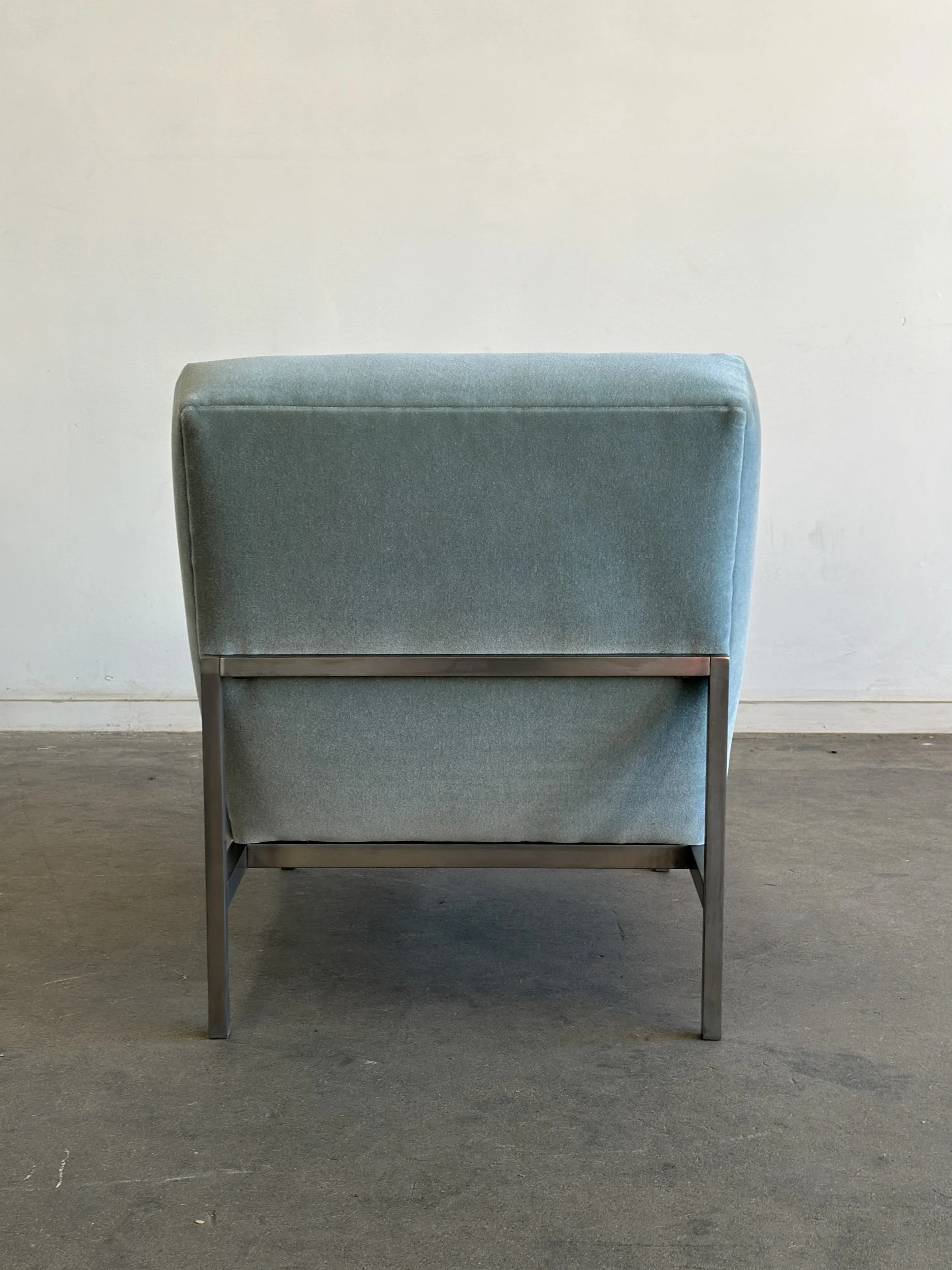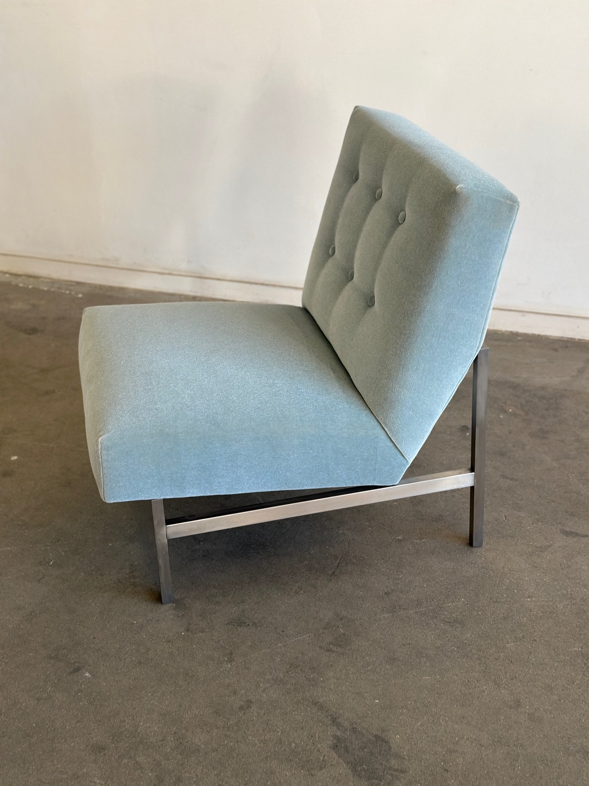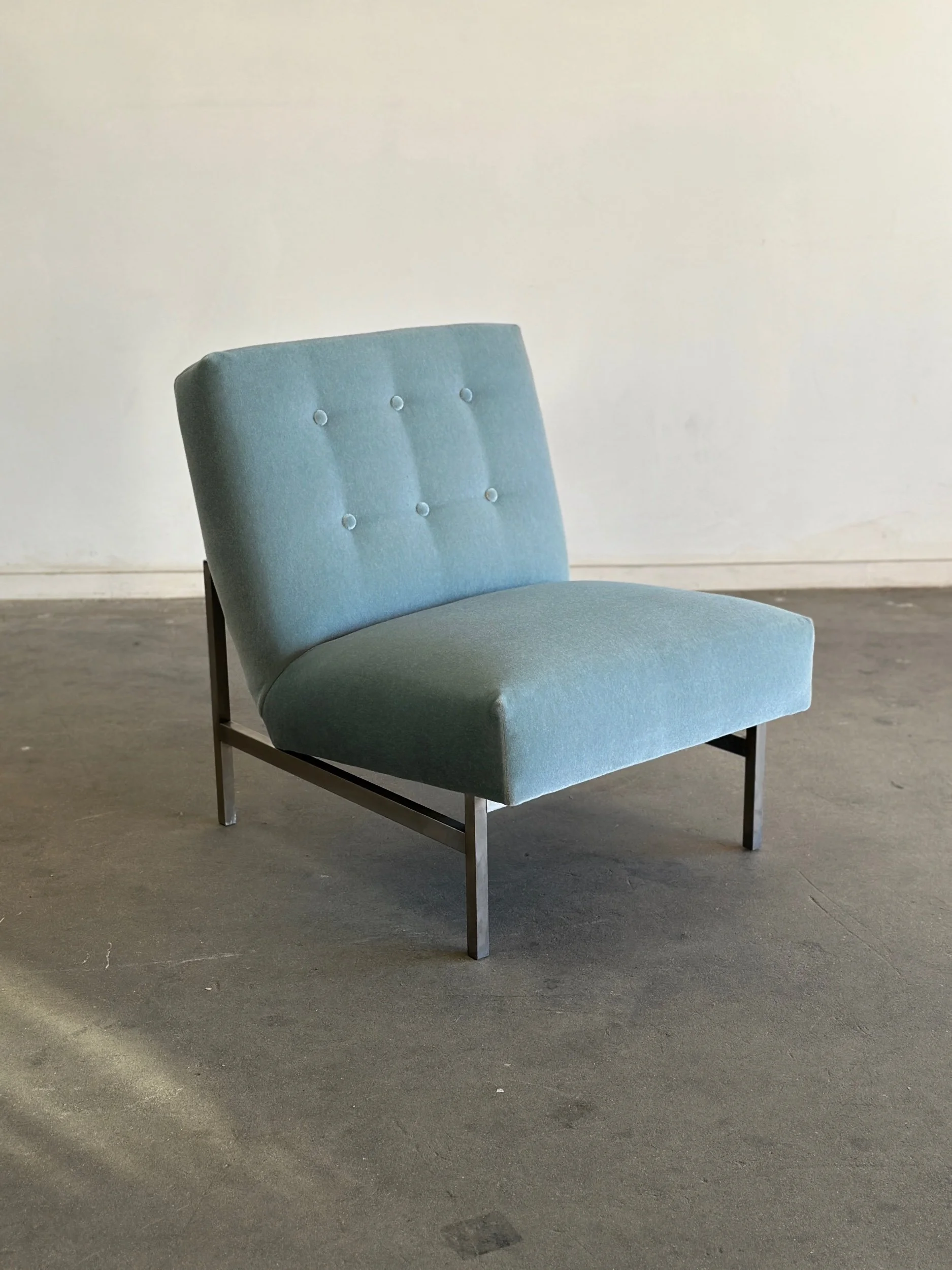 Vintage Knoll lounge chair newly restored. Unit features new foam , new straps , and fresh light blue mohair. Base has been polished and shows well.