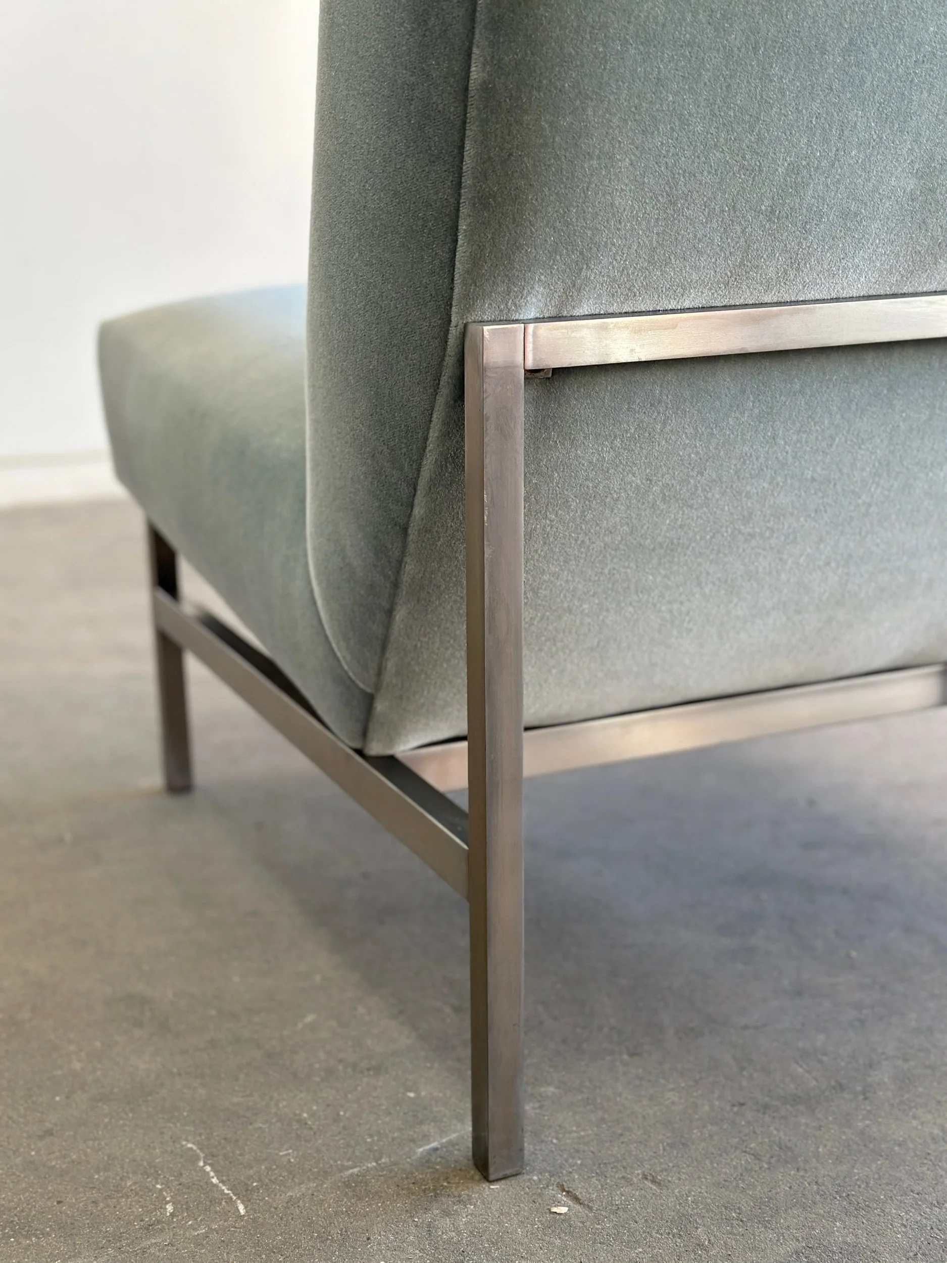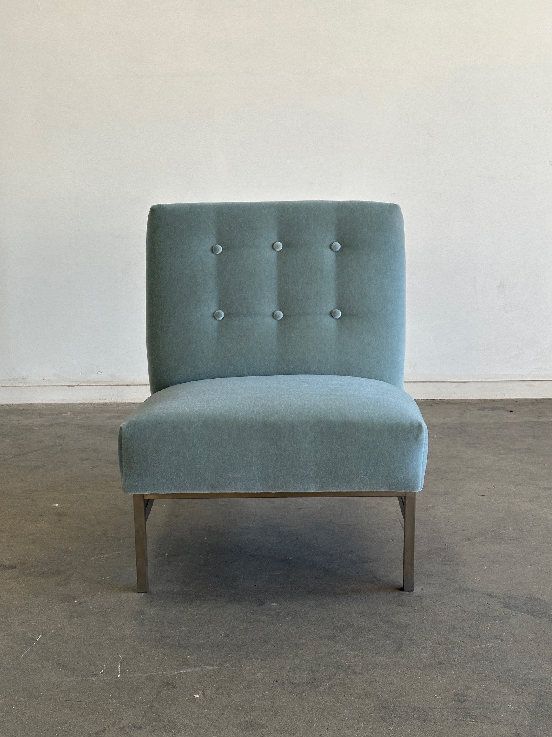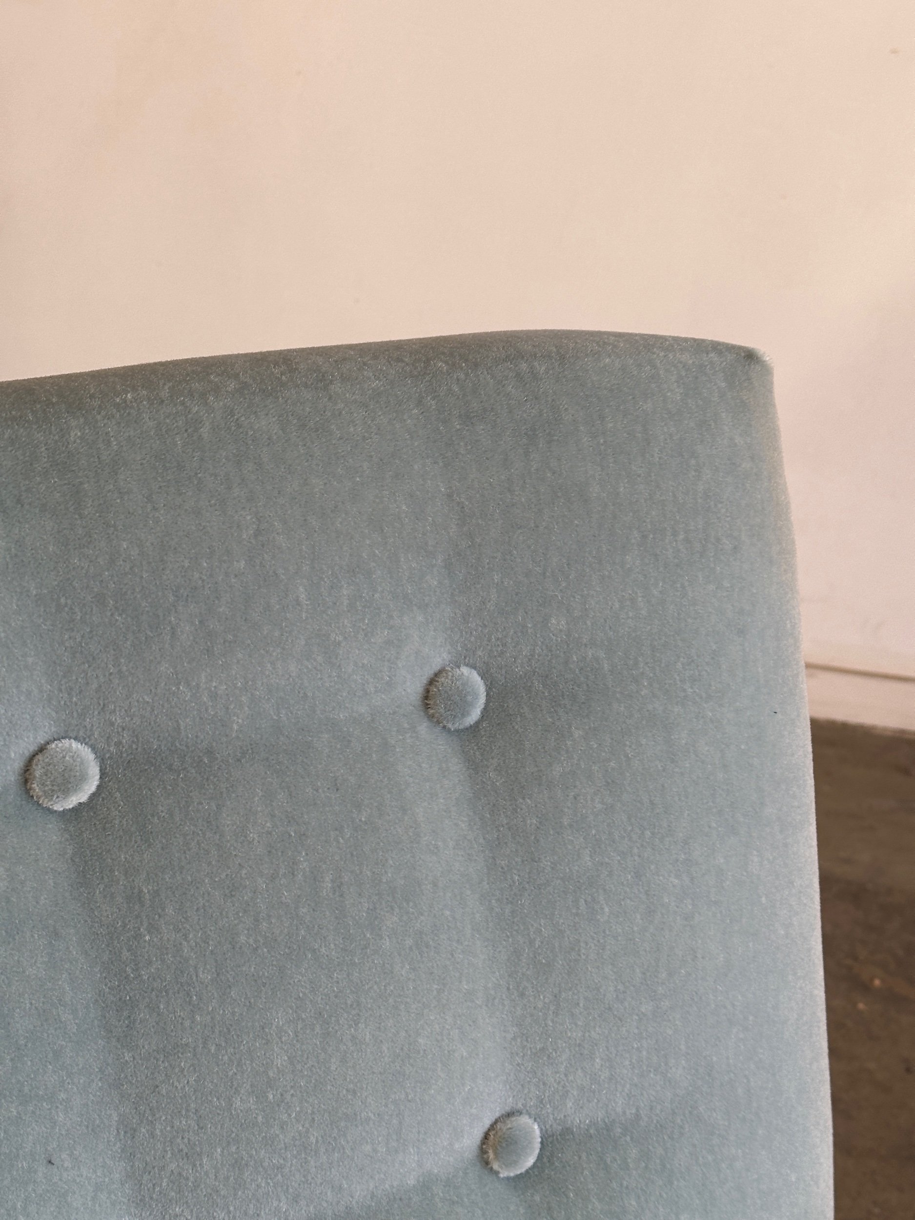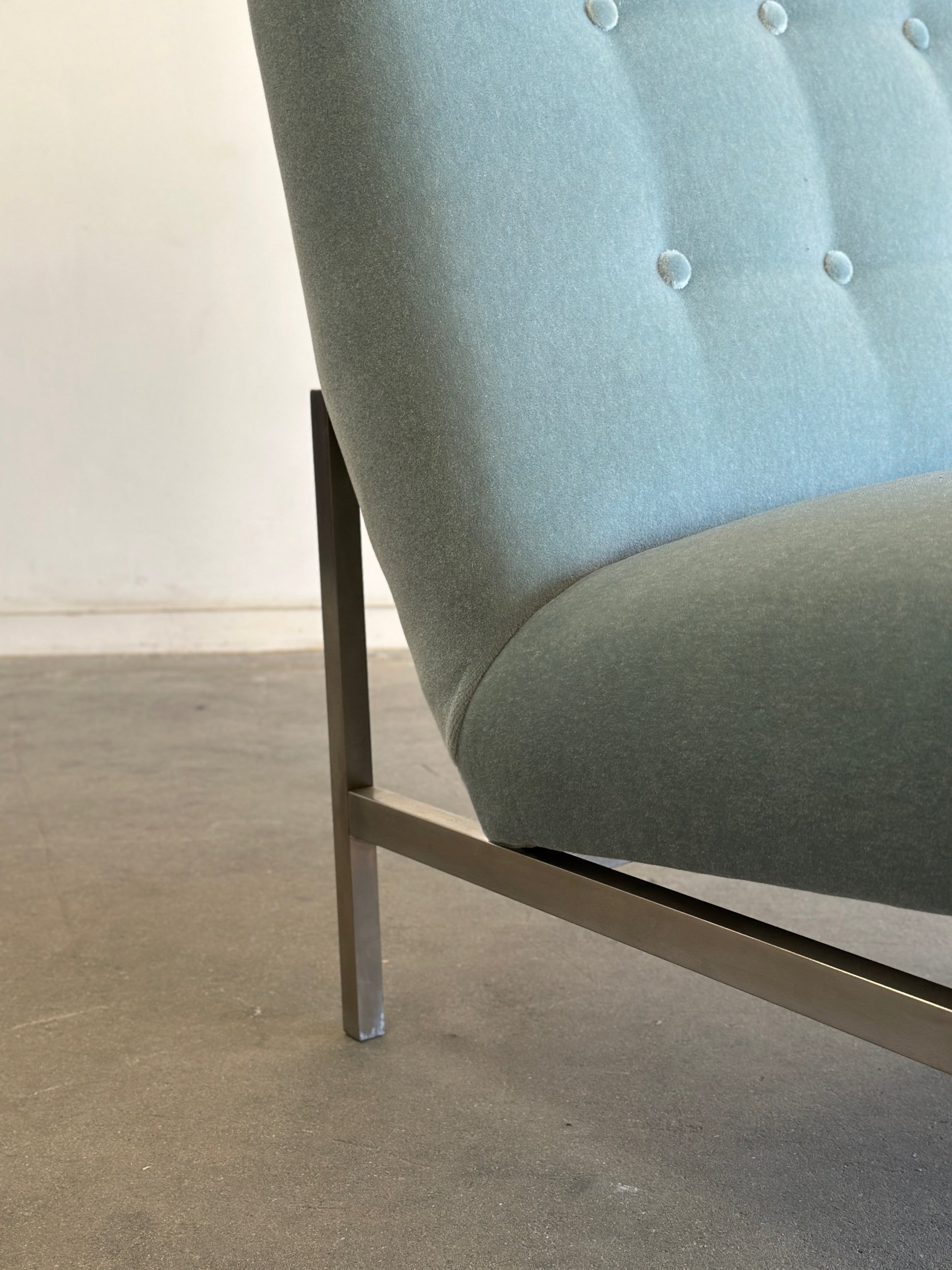 Vintage Knoll lounge chair newly restored. Unit features new foam , new straps , and fresh light blue mohair. Base has been polished and shows well.