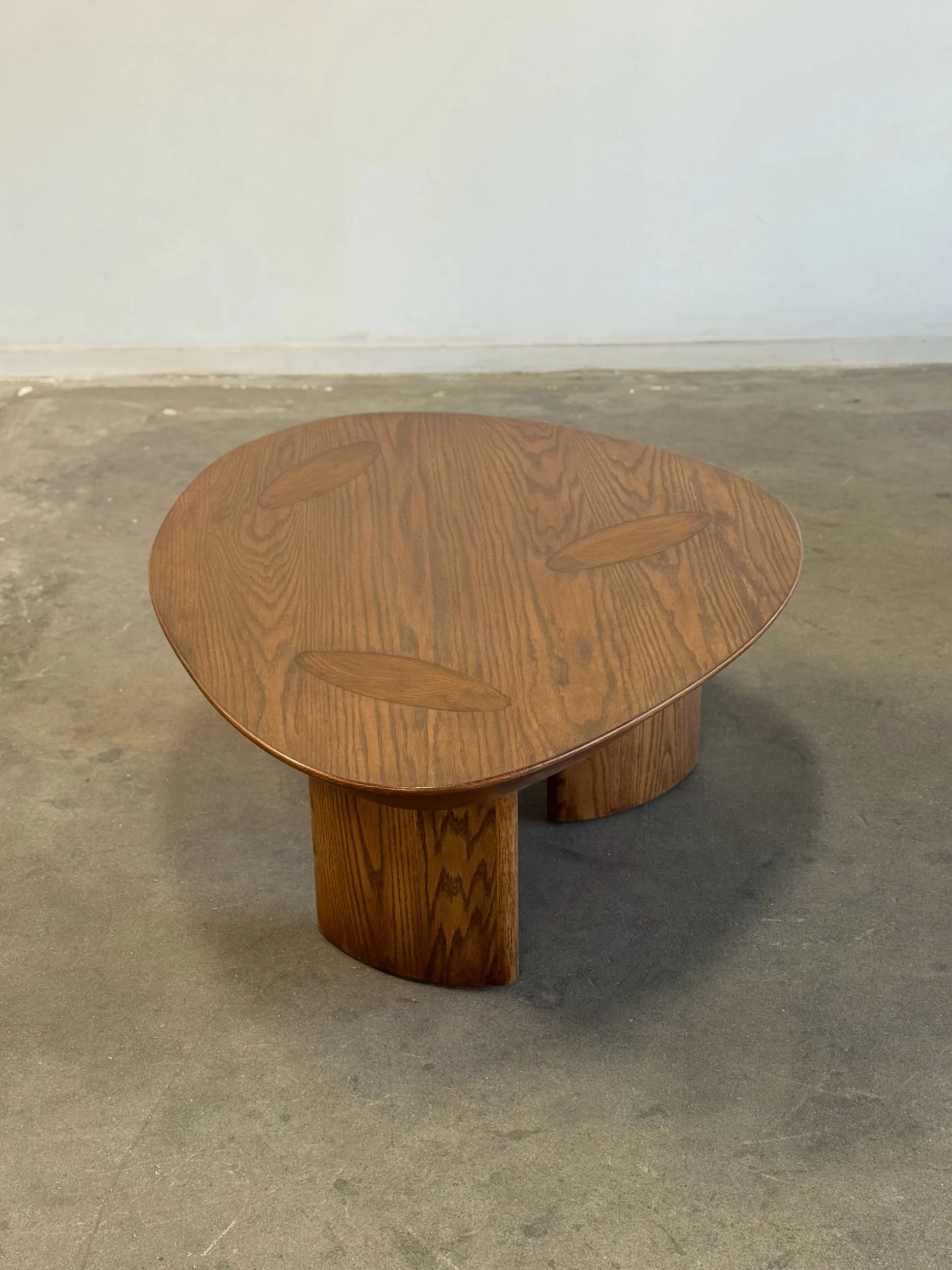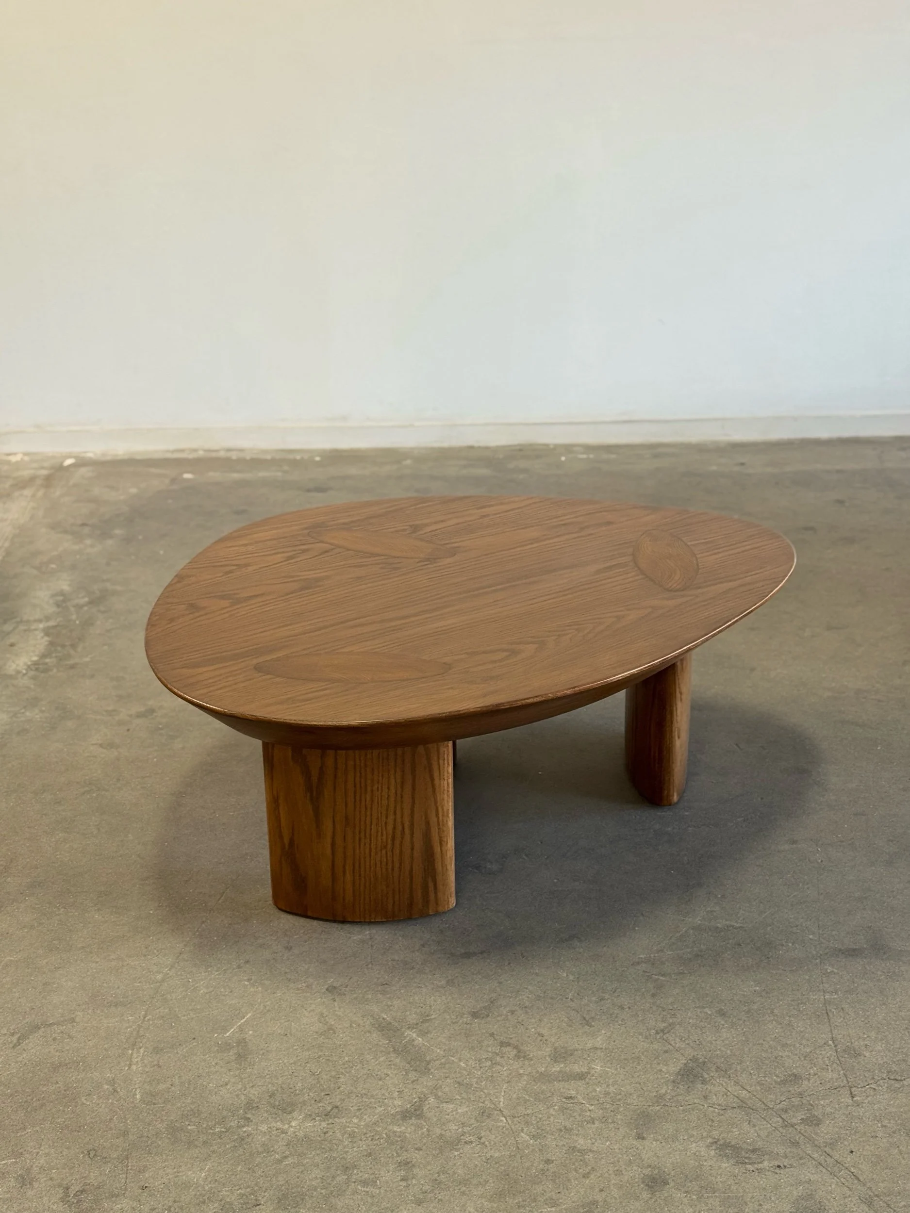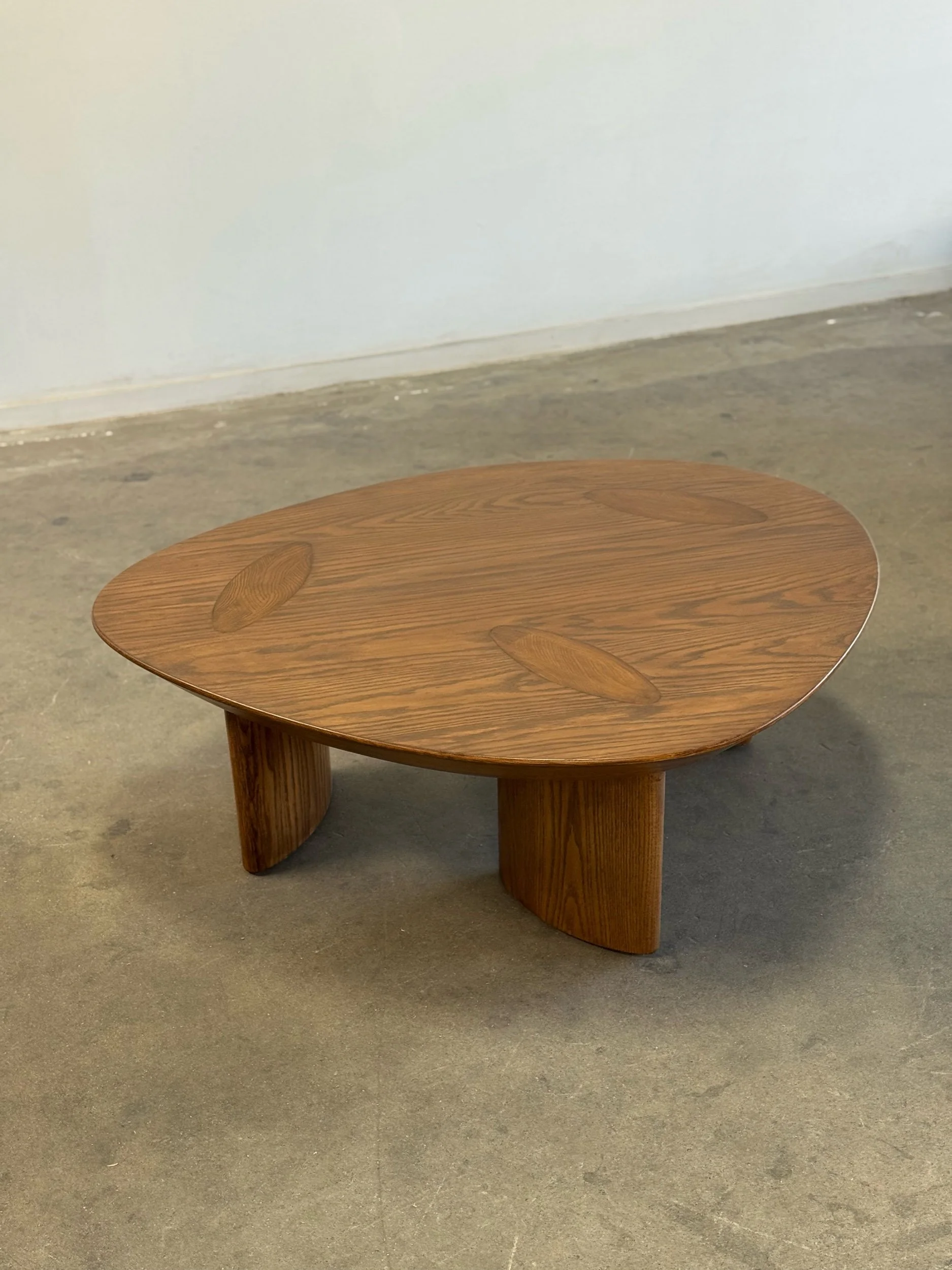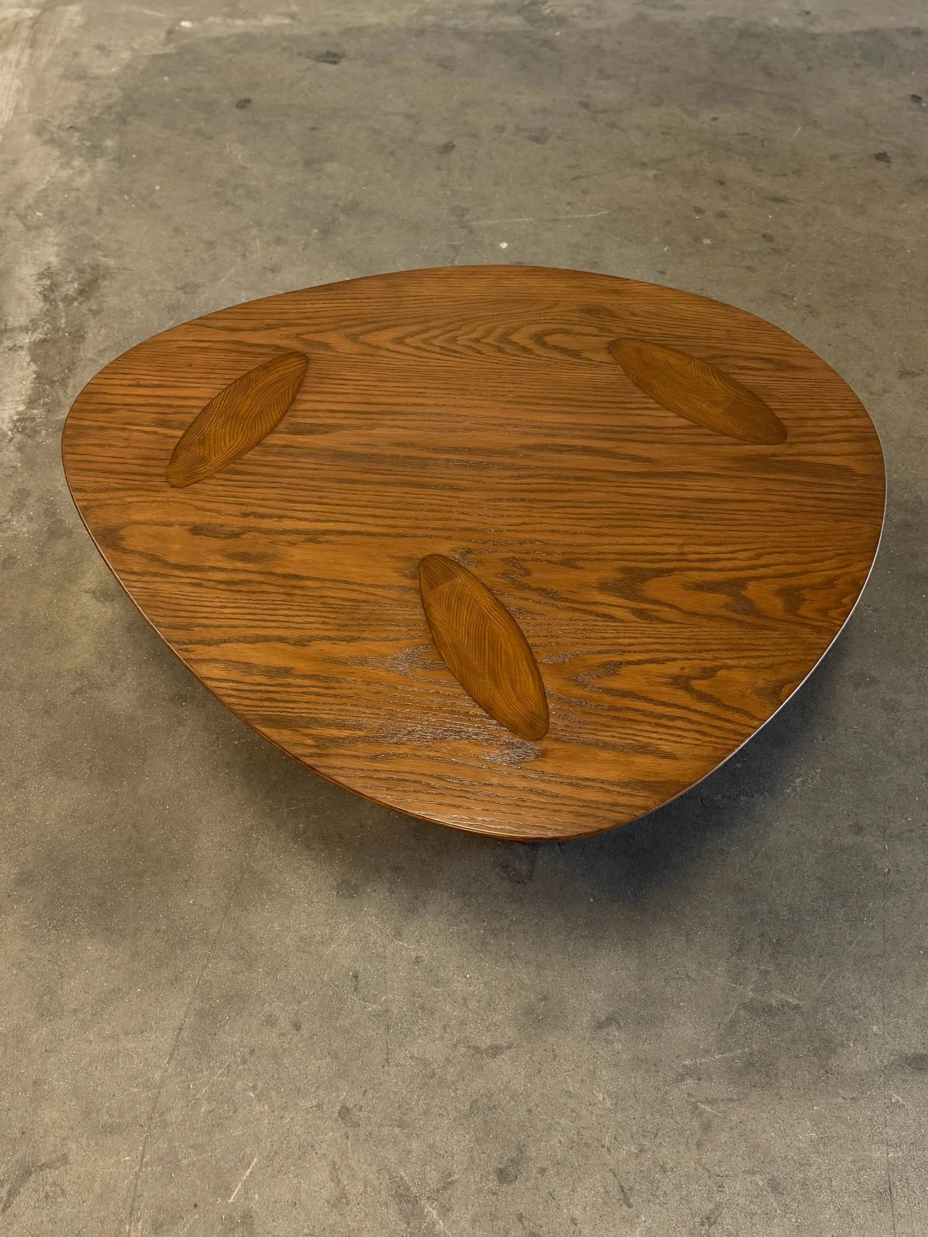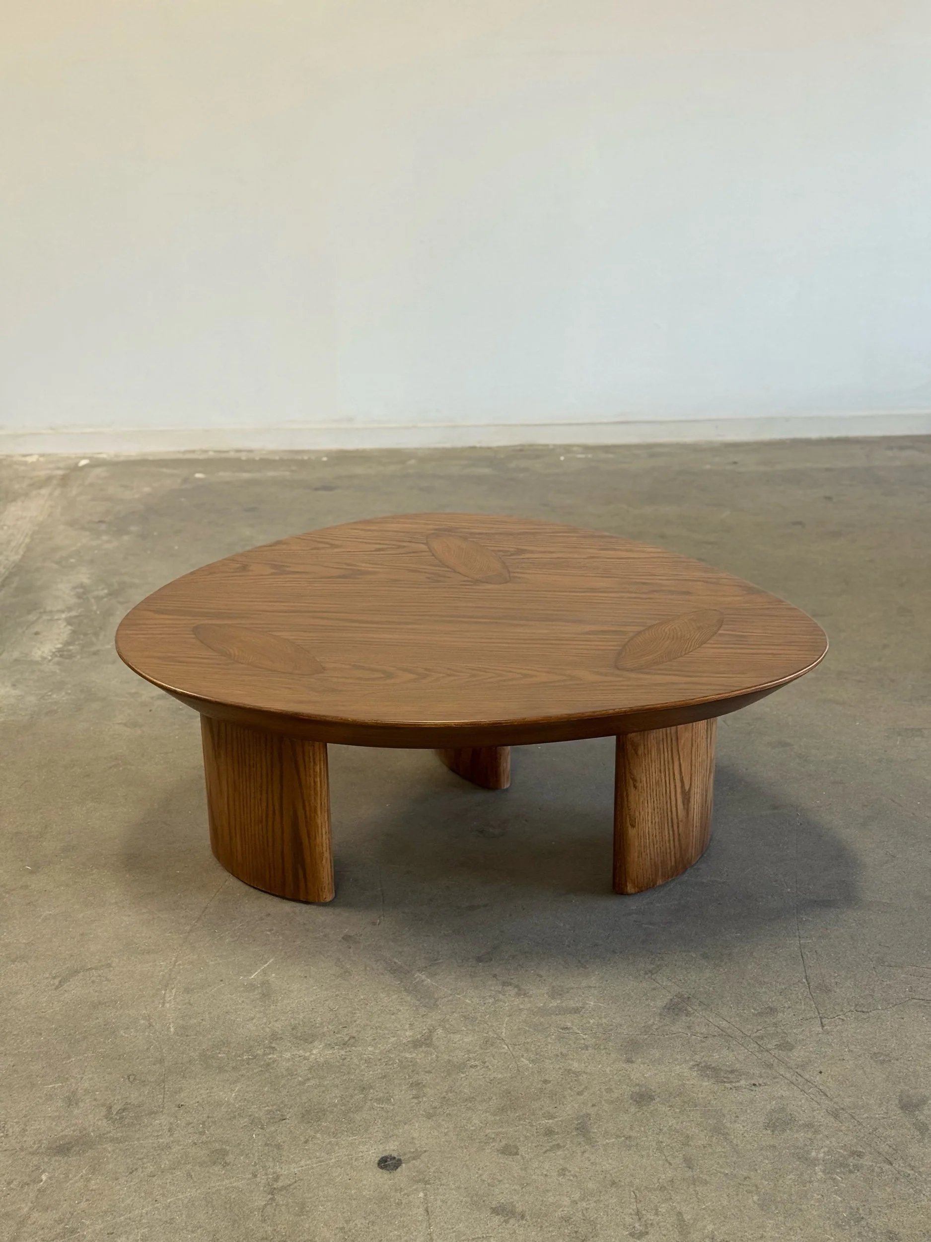 Fun compact bookcase newly fabricated in walnut wooden back veneer. Item features fun oversized ball legs and one adjustable shelf. Item shows well with no major areas of wear.