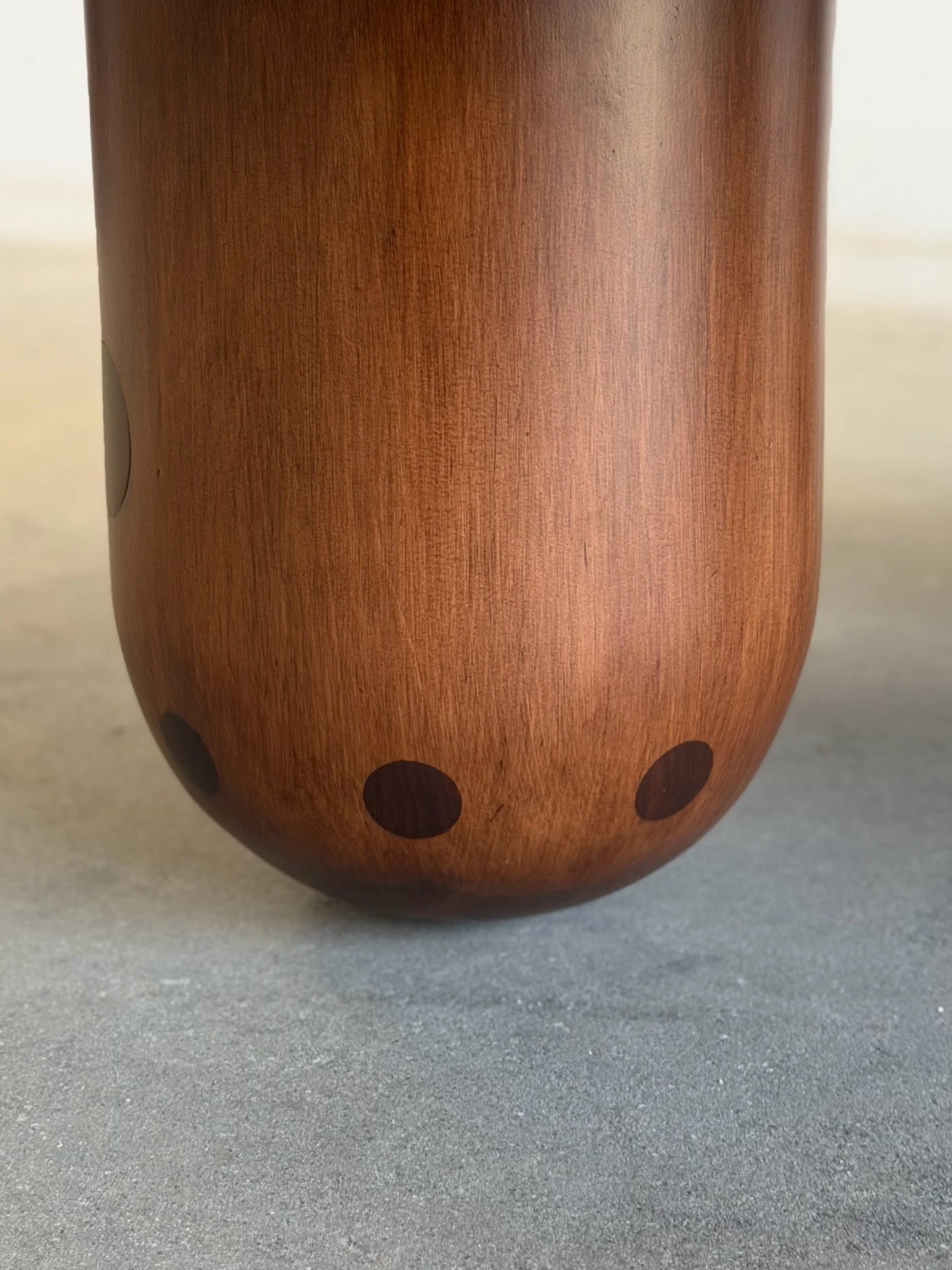 The Dug trio coffee table in Maple is a piece handcrafted in house in solid maple and walnut.Featuring three removable rounded cylindrical legs with walnut plug inserts, this piece blends soft form with functional design, bringing warmth and modern edge to any space. Item can be made to order in a variation of hardwoods, veneers or combinations. The price is for the floor model as shown.