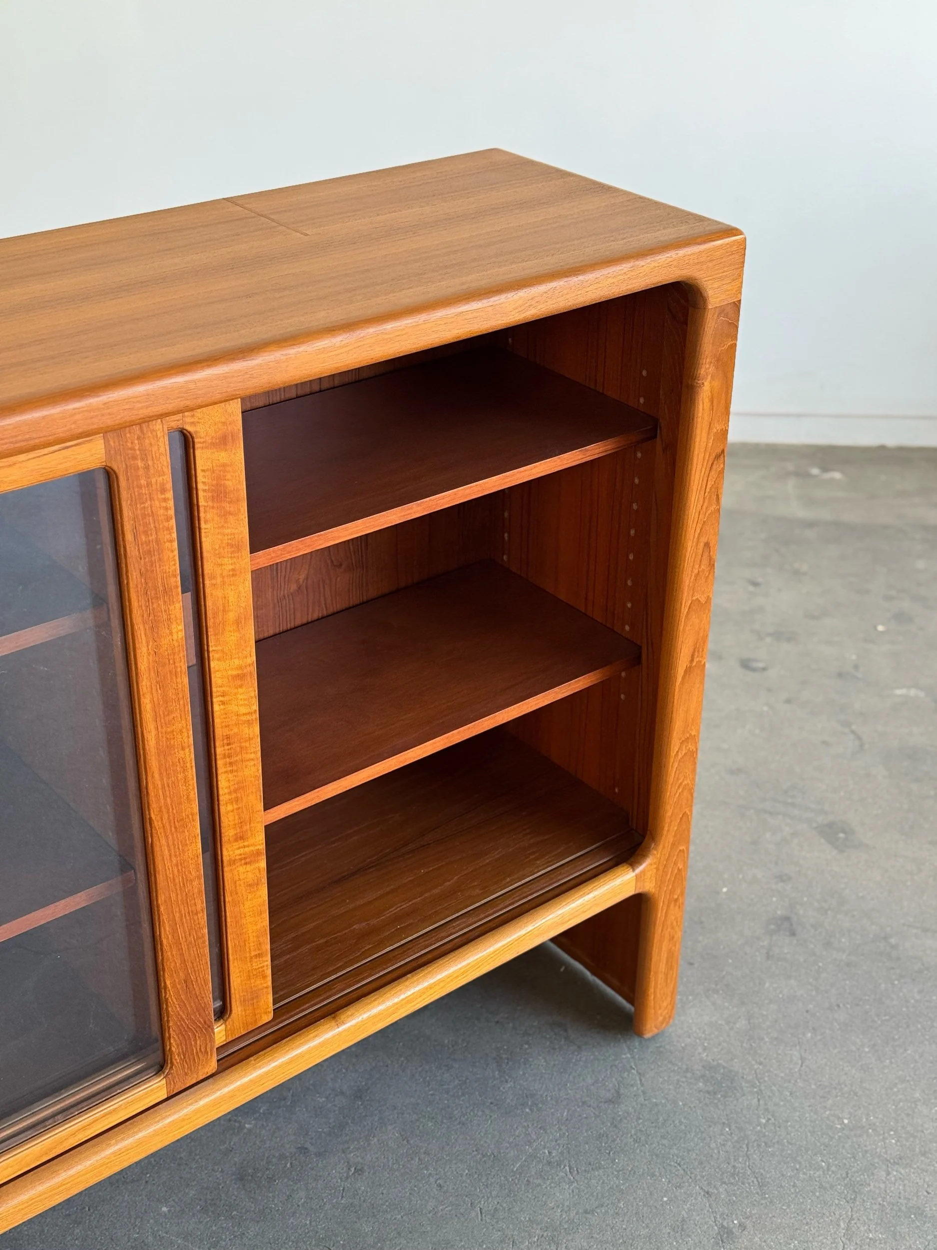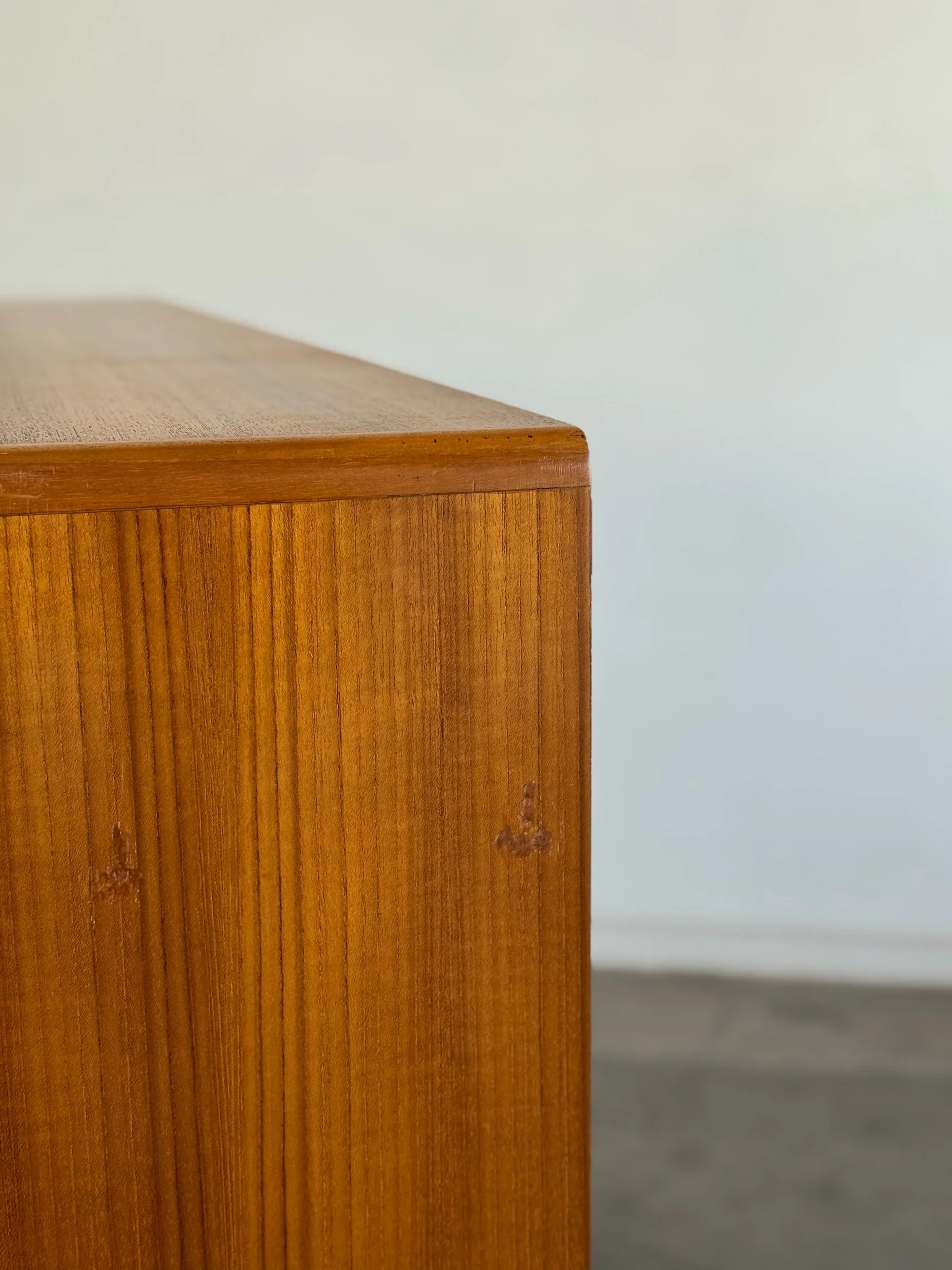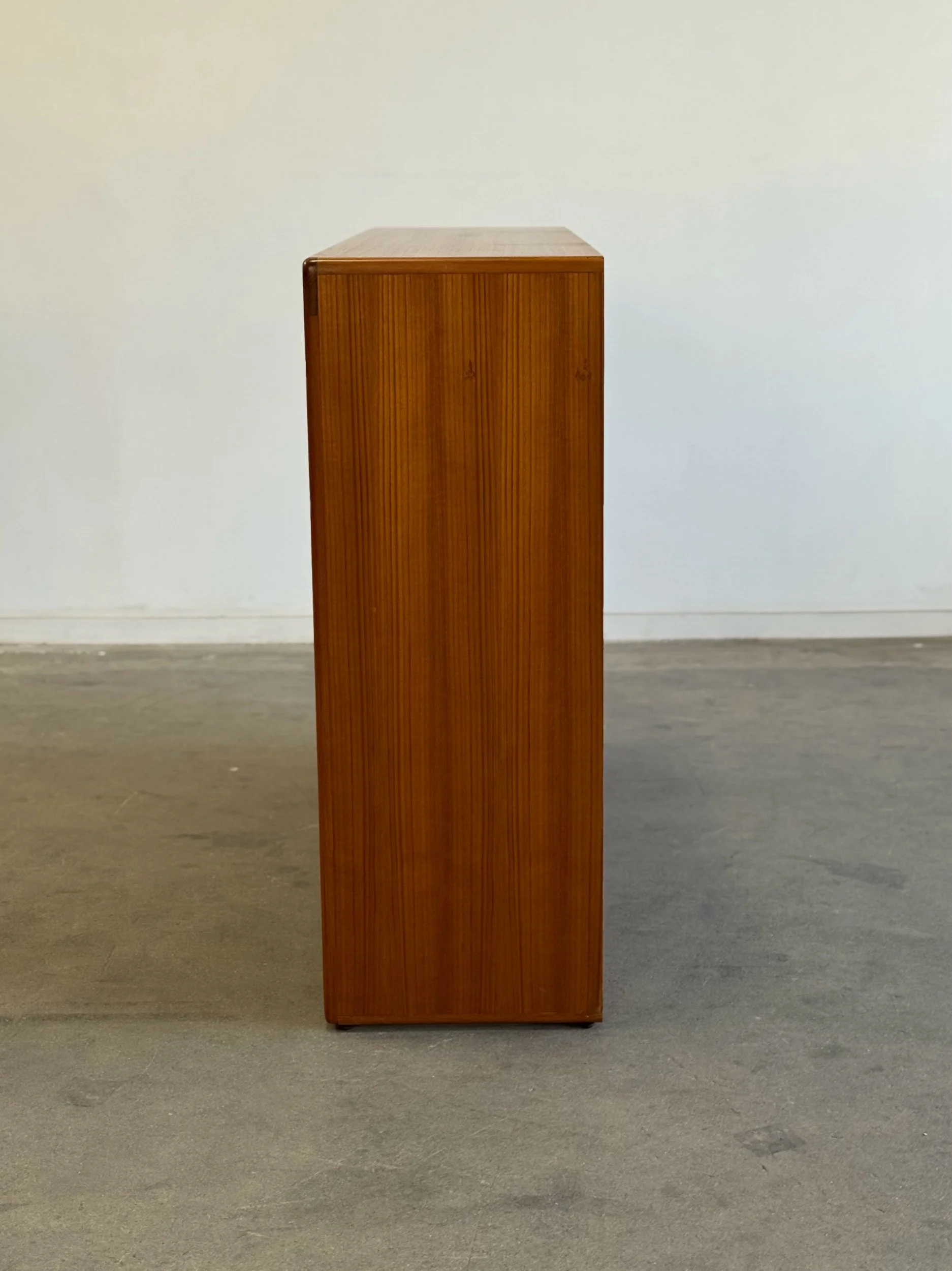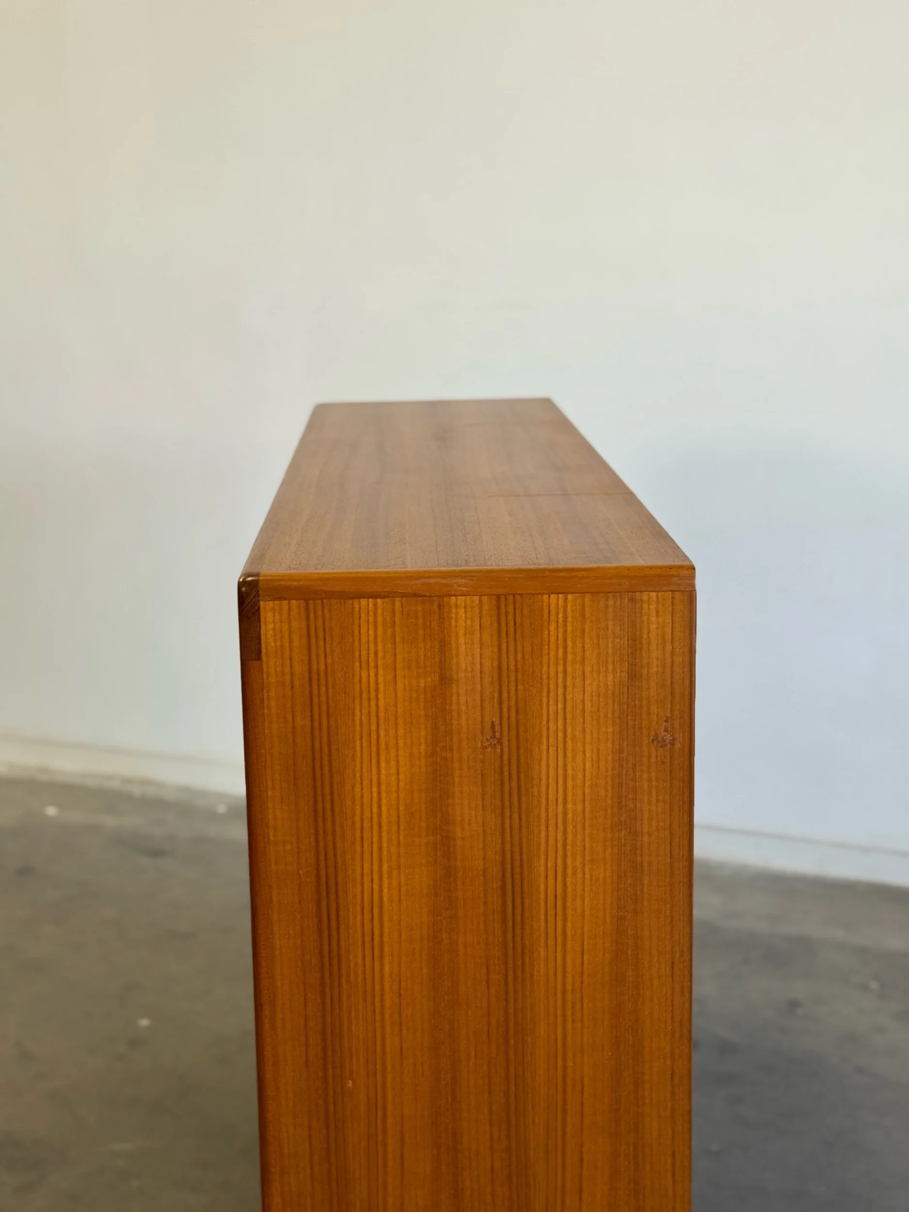 Fully restored bookshelf unit in great condition. Unit features a new medium dark honey finish, a new wooden backing , original hardware , and four removable shelves. Bookcase is in great structural standing and shows well with no major areas of wear.