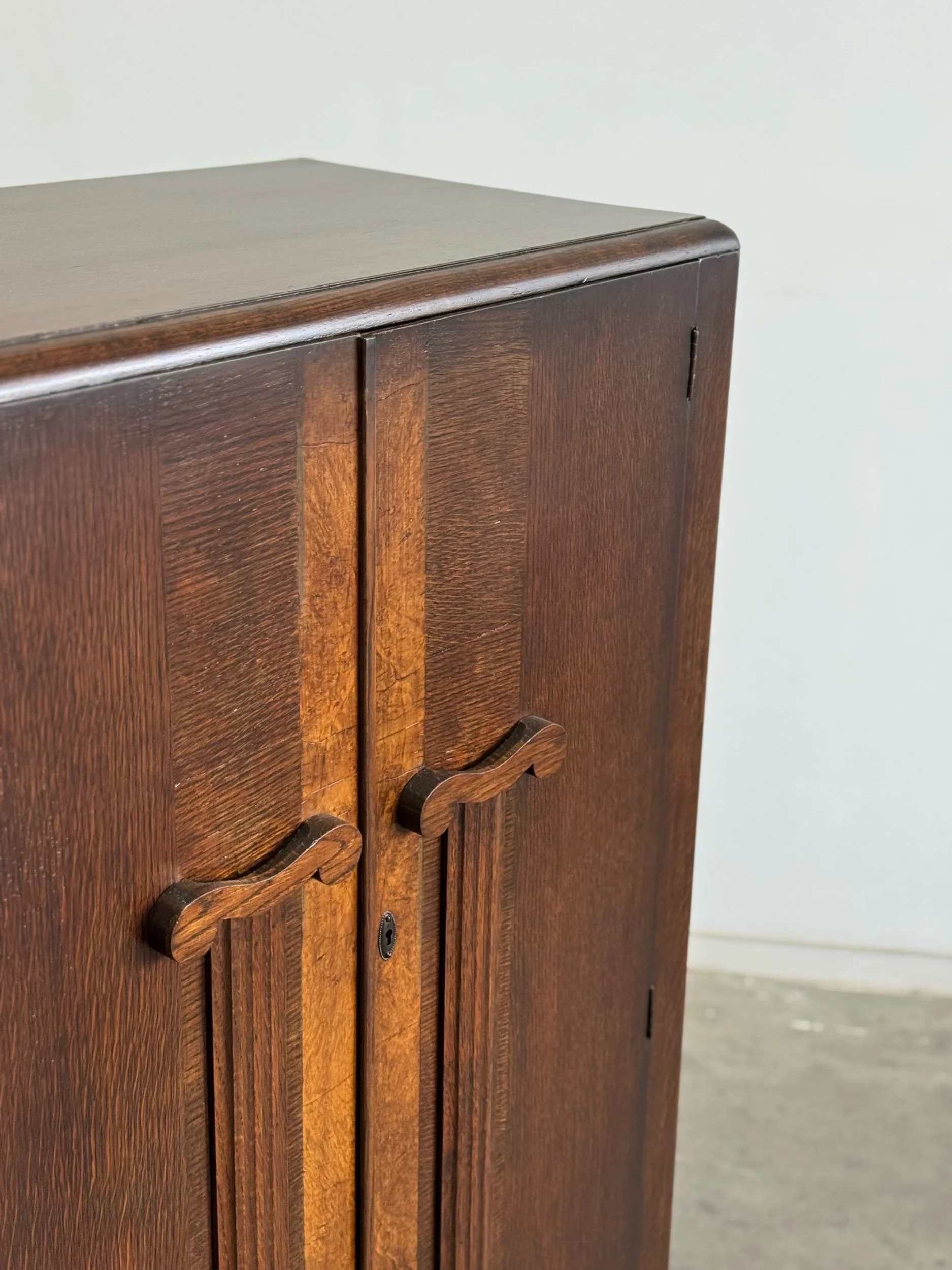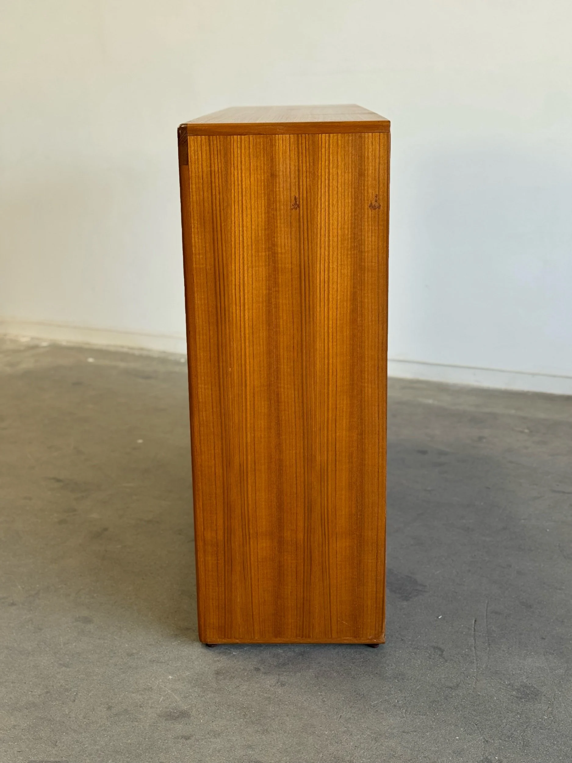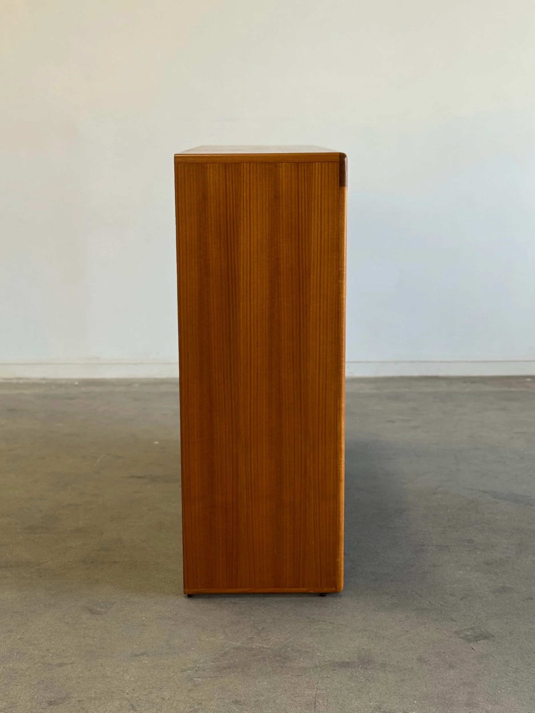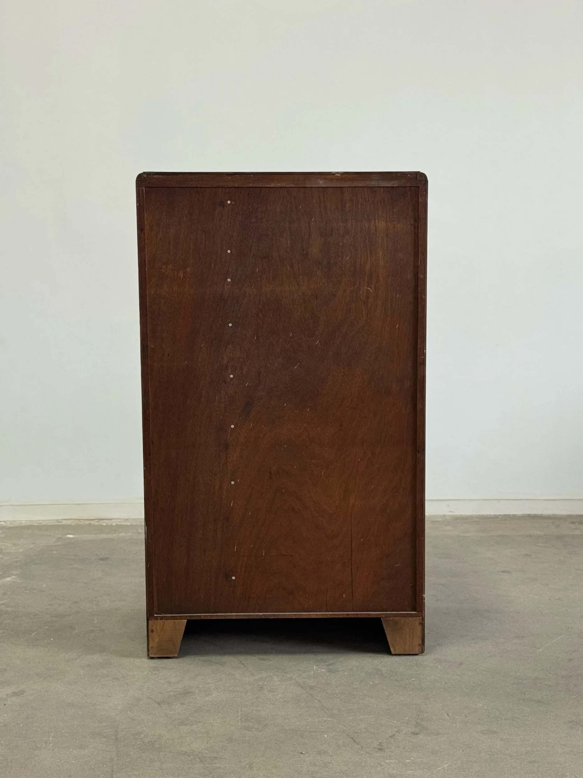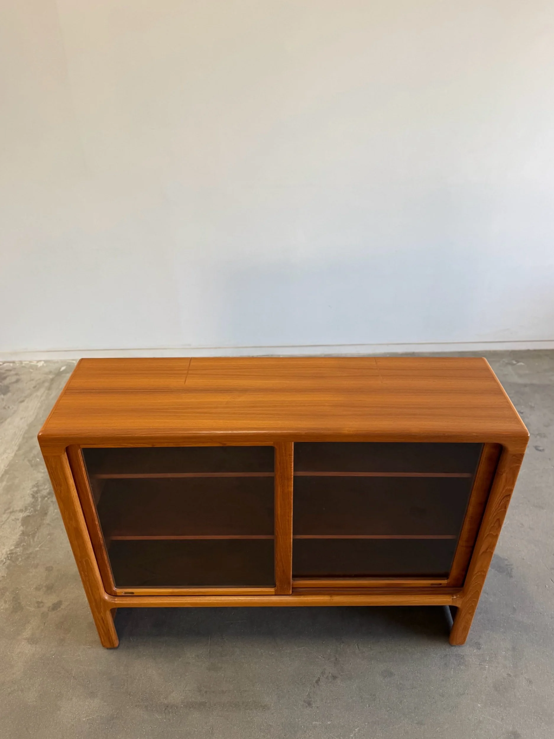 Fully restored bookshelf unit in great condition. Unit features a new medium dark honey finish, a new wooden backing , original hardware , and four removable shelves. Bookcase is in great structural standing and shows well with no major areas of wear.