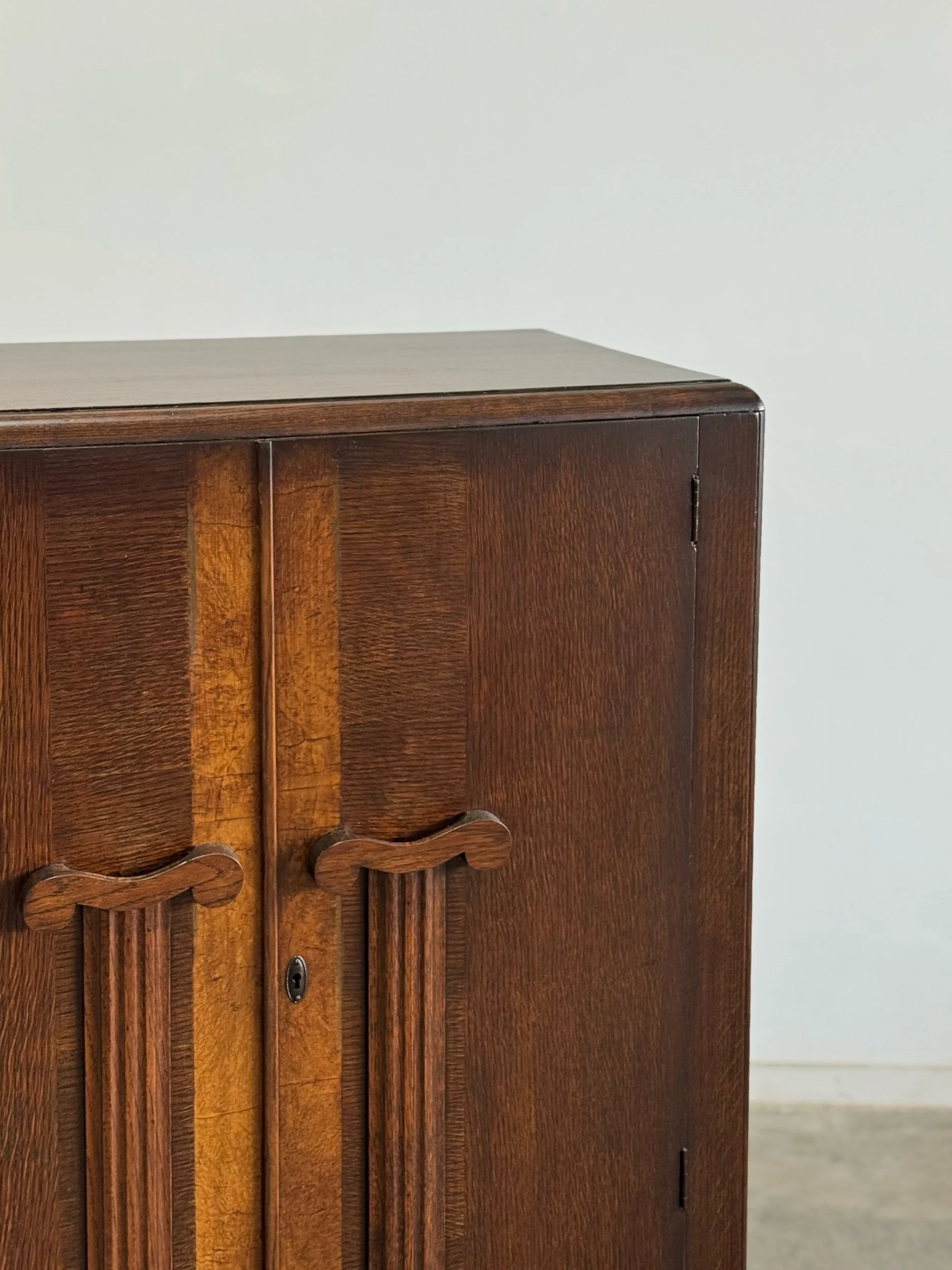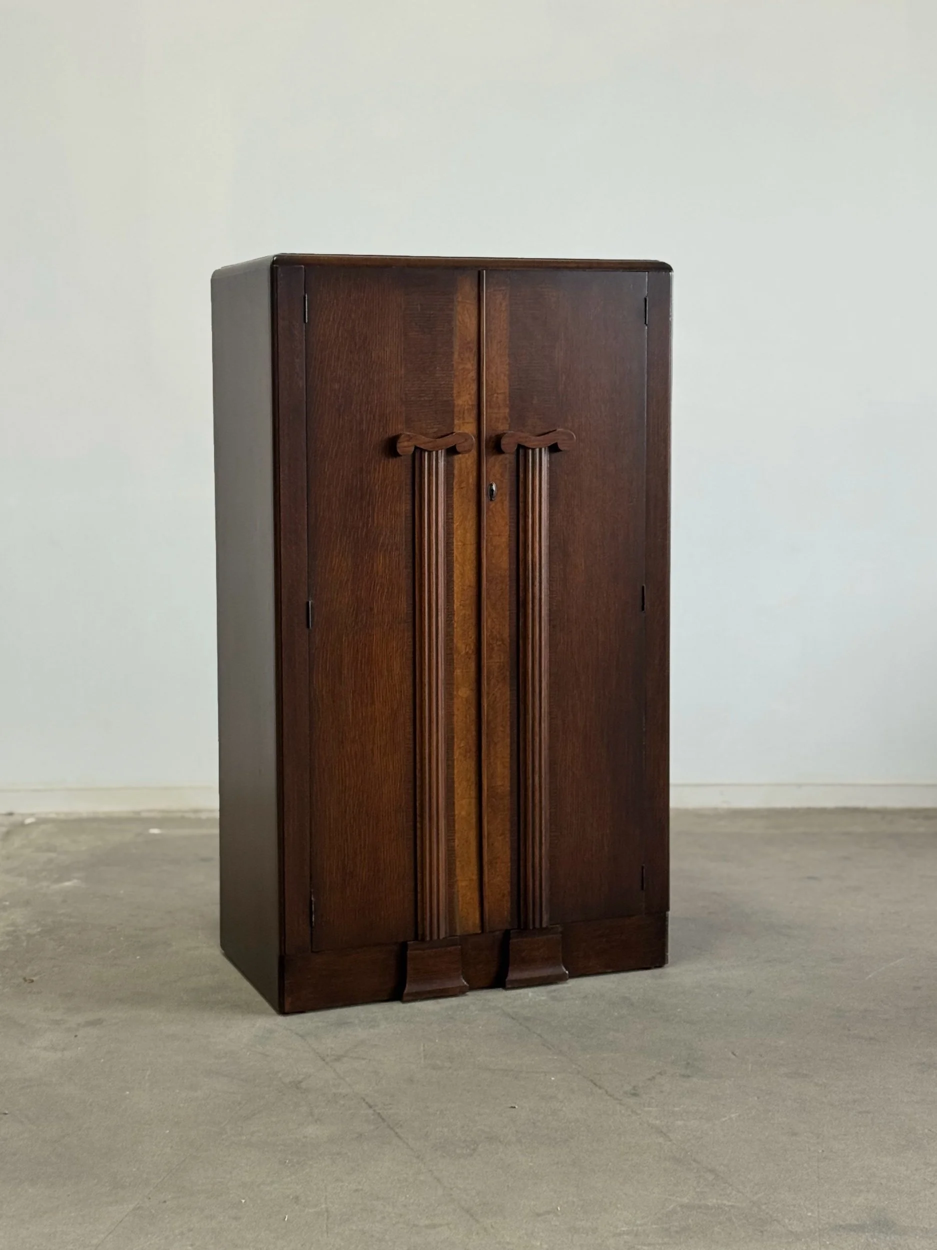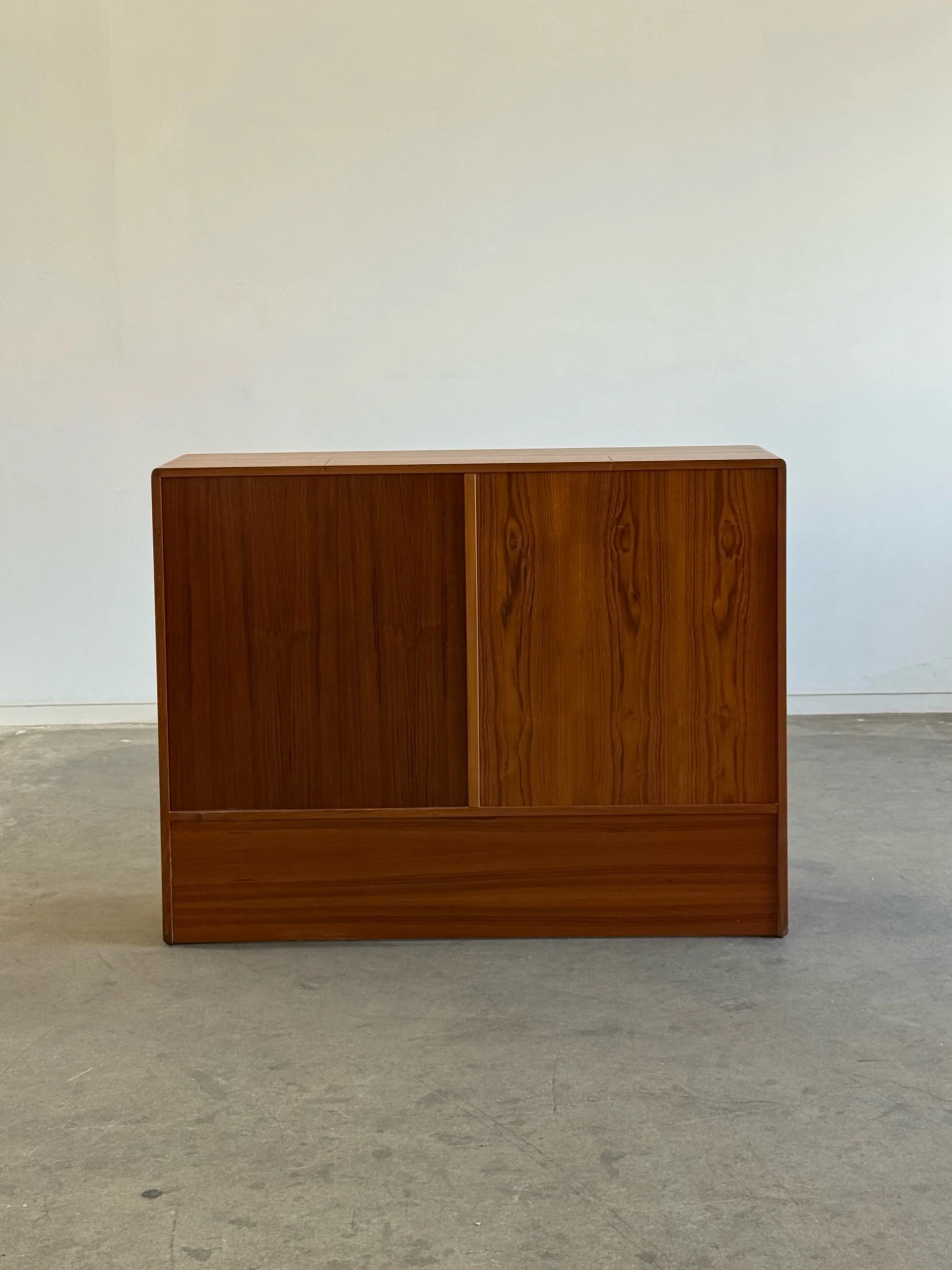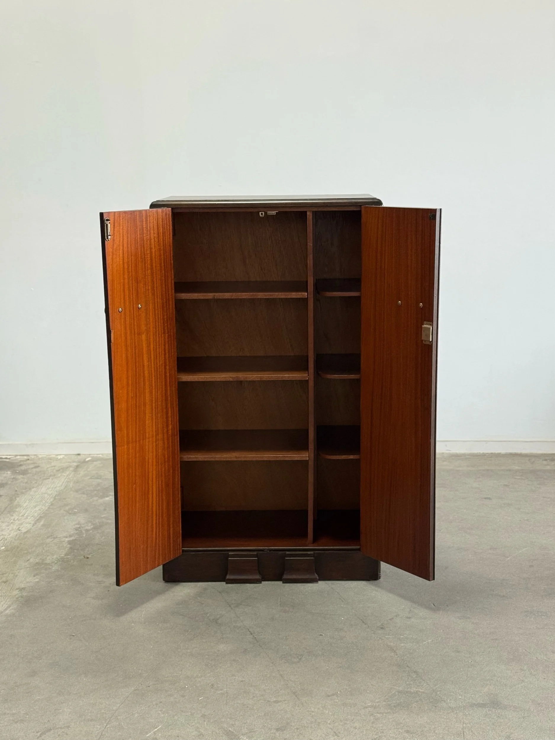 Fully restored bookshelf unit in great condition. Unit features a new medium dark honey finish, a new wooden backing , original hardware , and four removable shelves. Bookcase is in great structural standing and shows well with no major areas of wear.