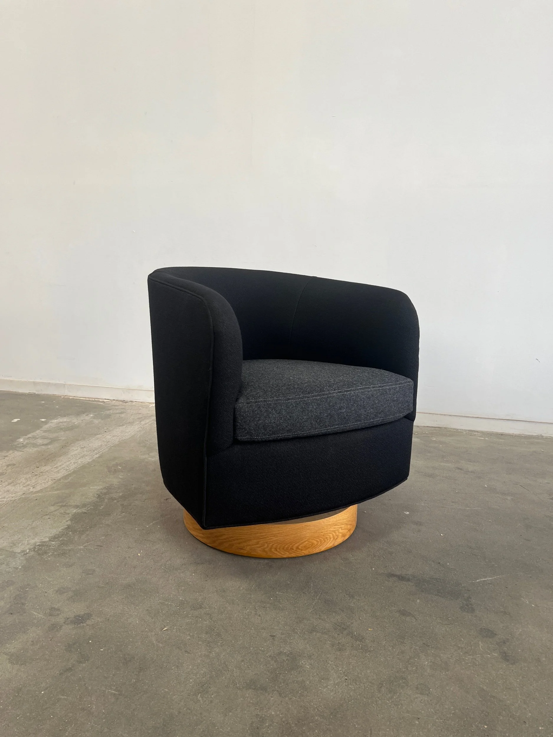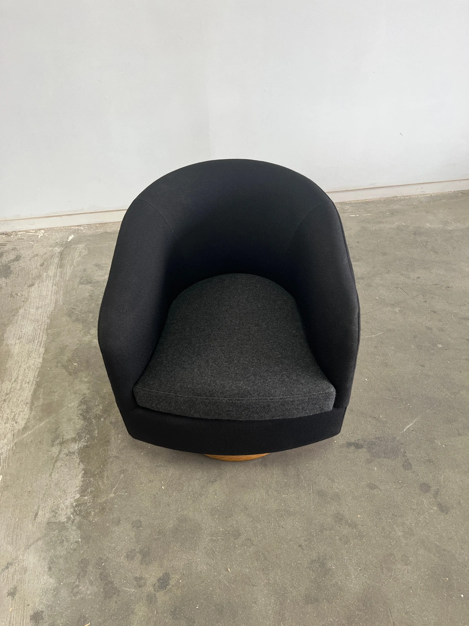 Contemporary Swivel lounge chair designed by Milo Baughman. Item is structurally sound and sturdy.