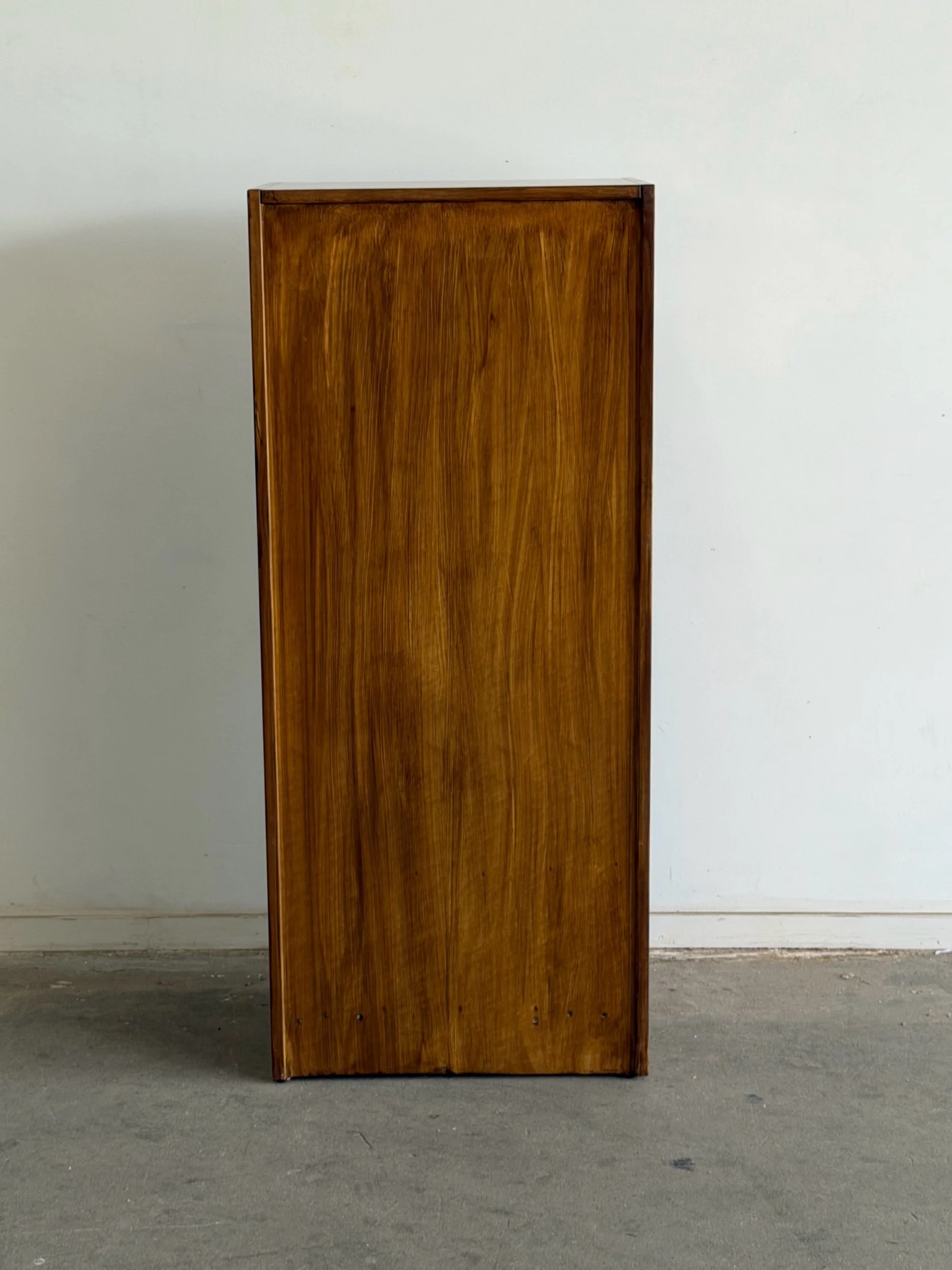 Fully restored simple minimal mid century bookcase. Item has three removable shelves and shows well with no major areas of wear.