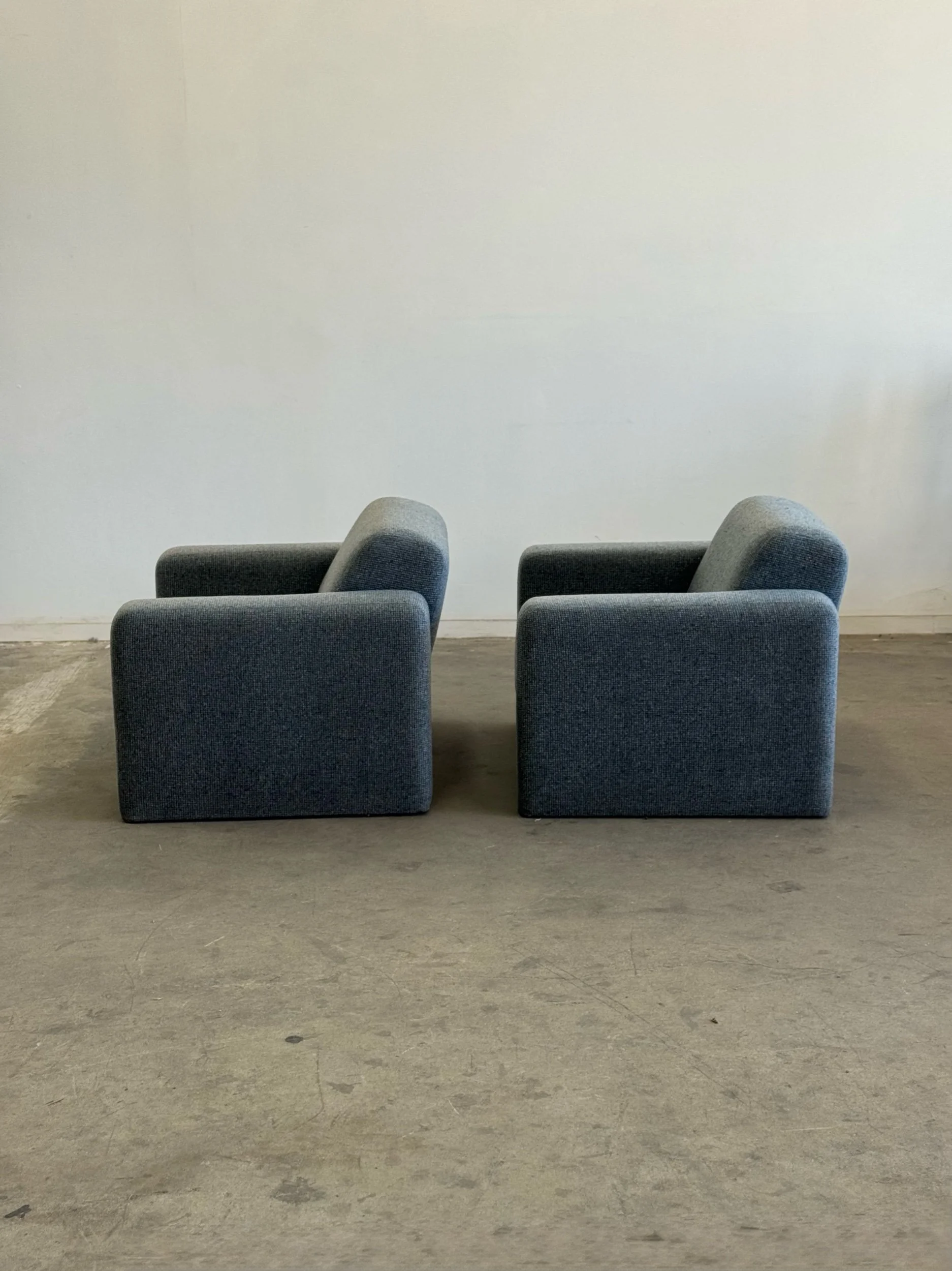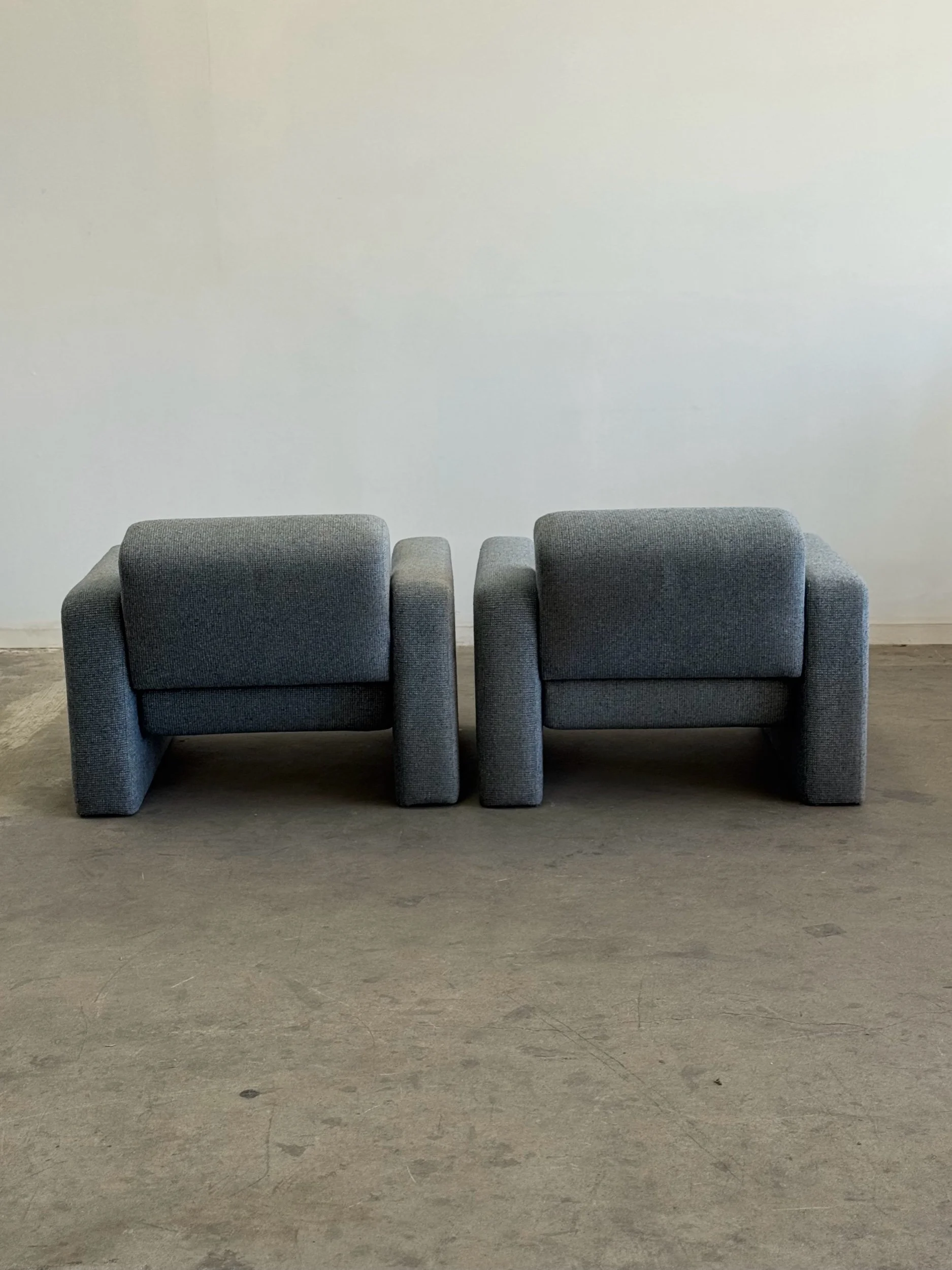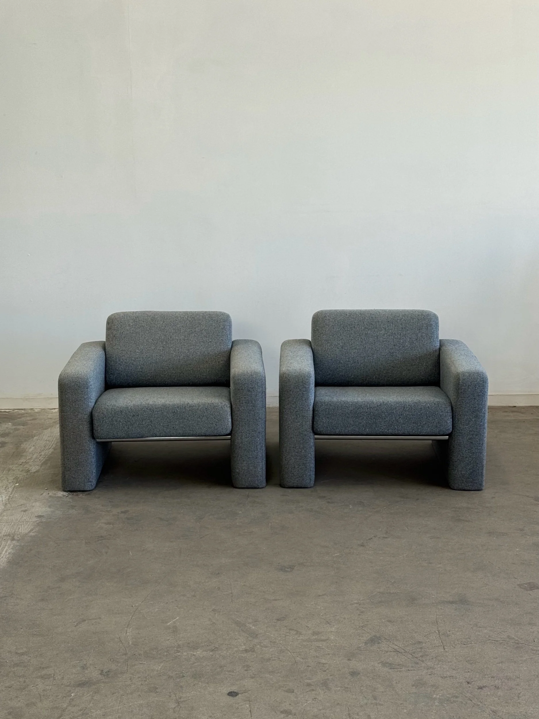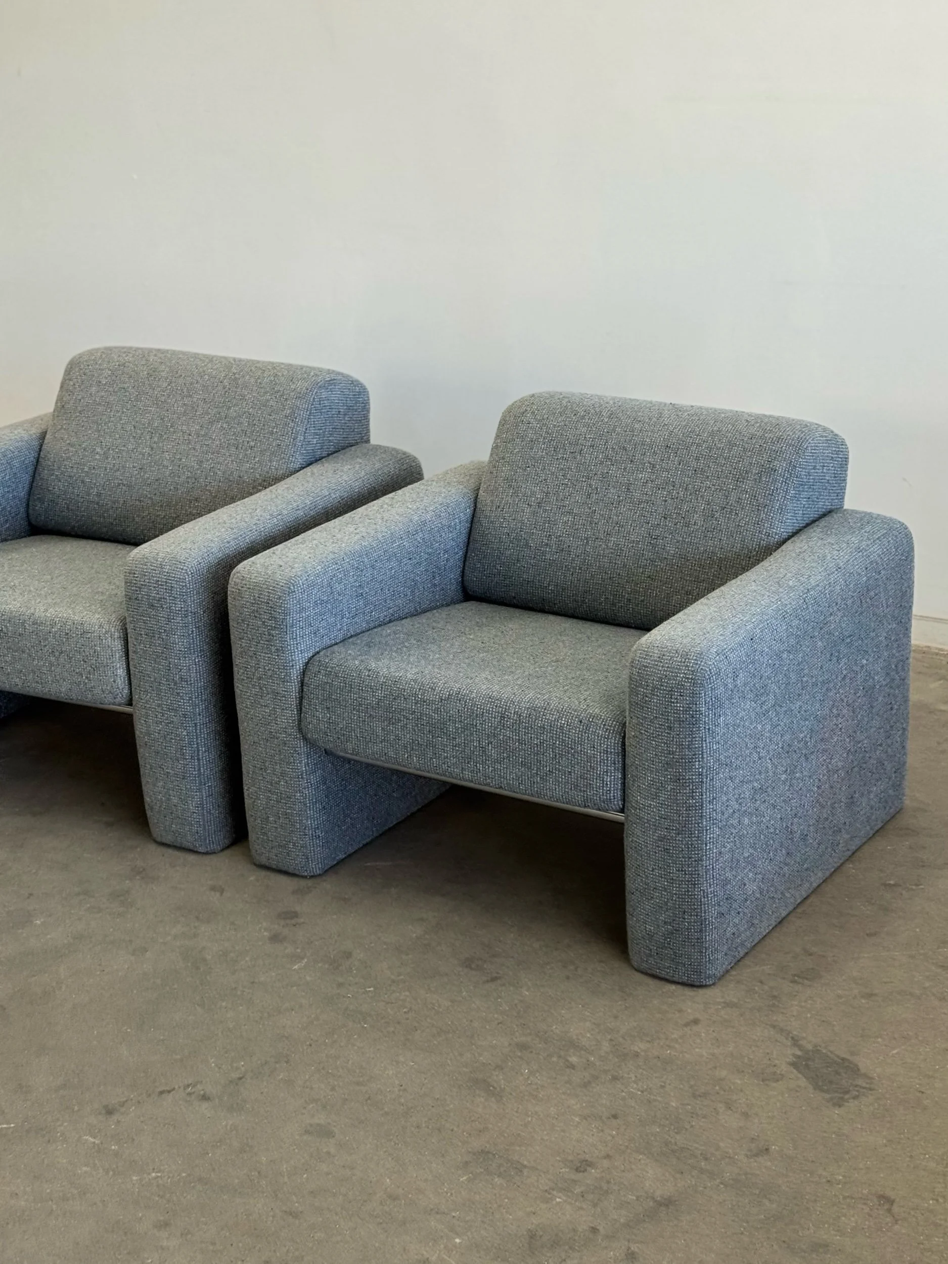 Custom made, entirely in house all in black Sherpa with solid birch legs. The seat is wide with a reclined position. This piece is based on a vintage design by Paul McCobb
