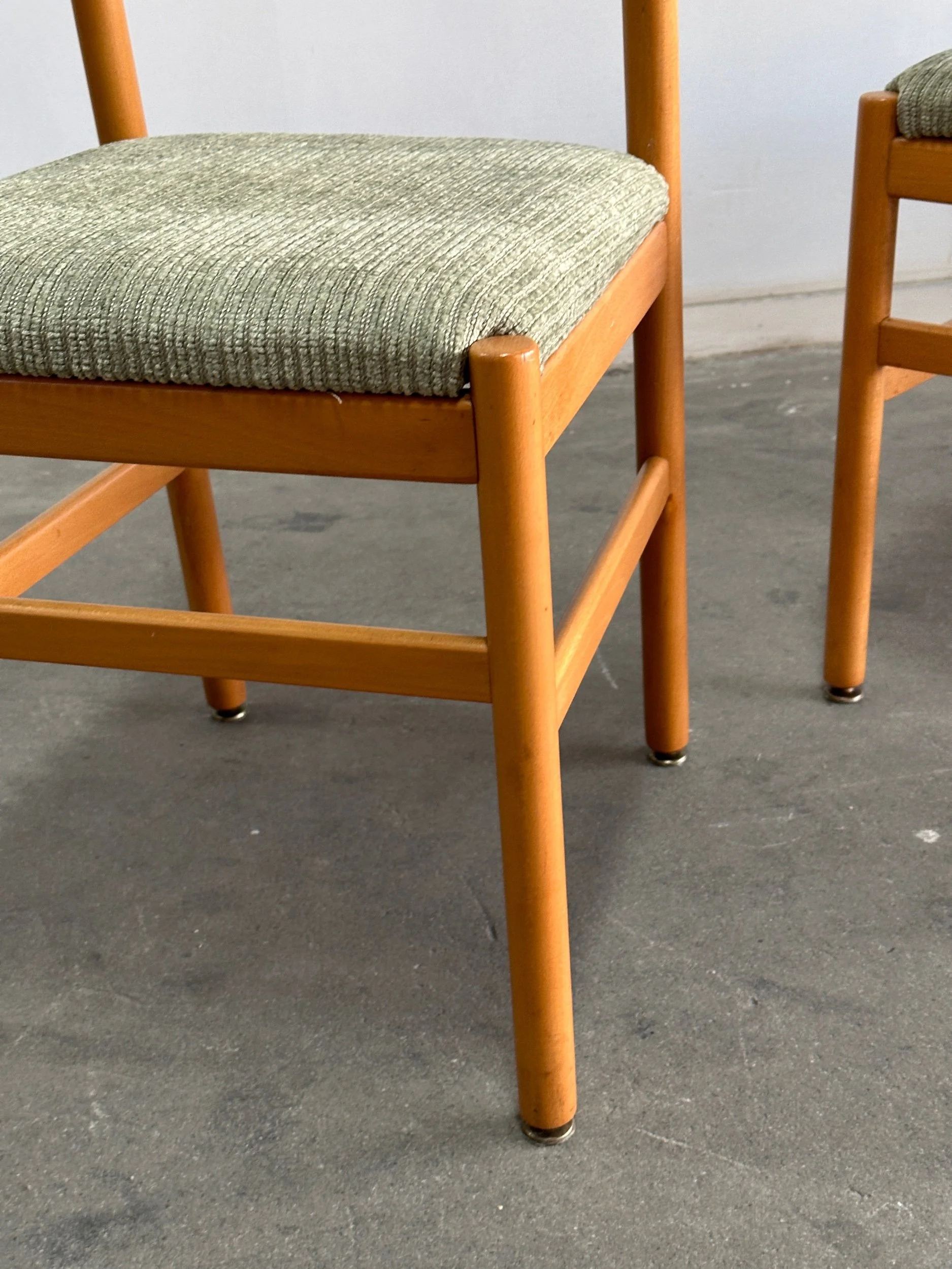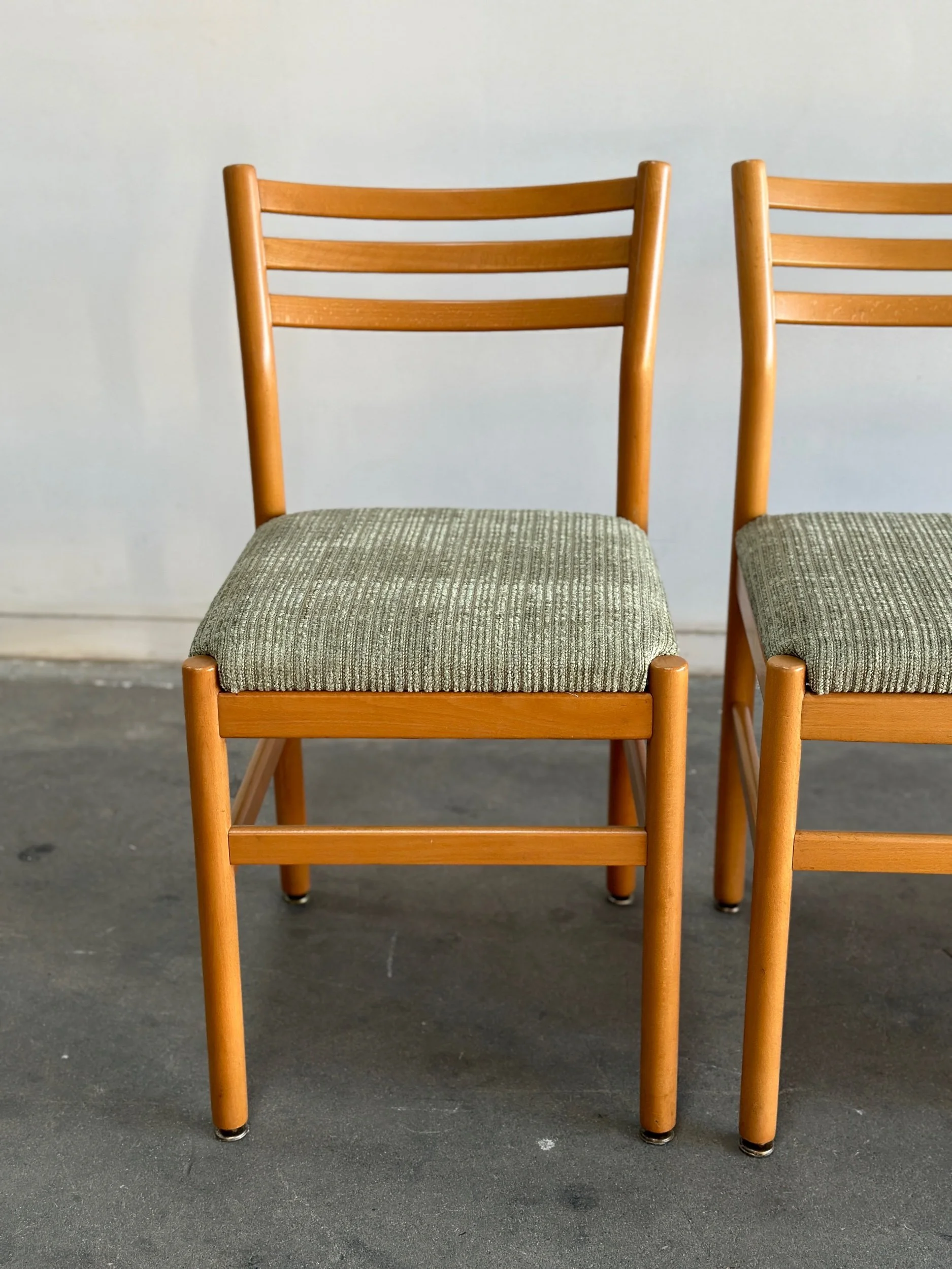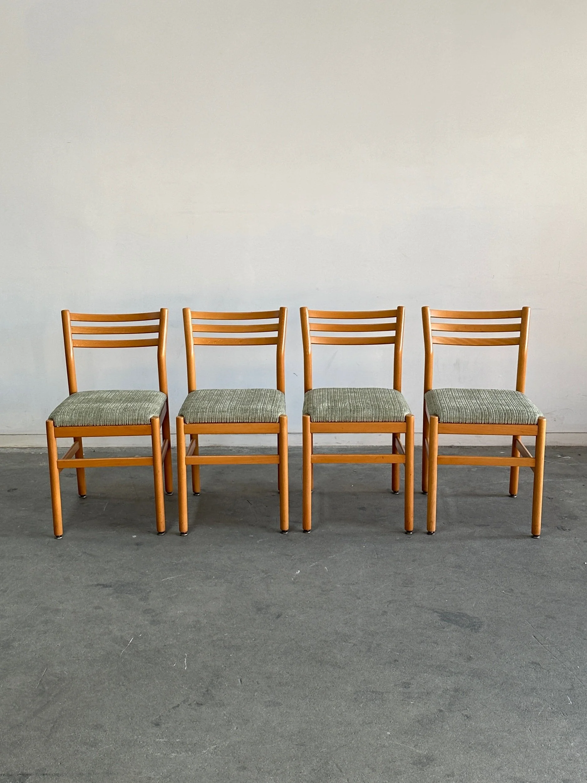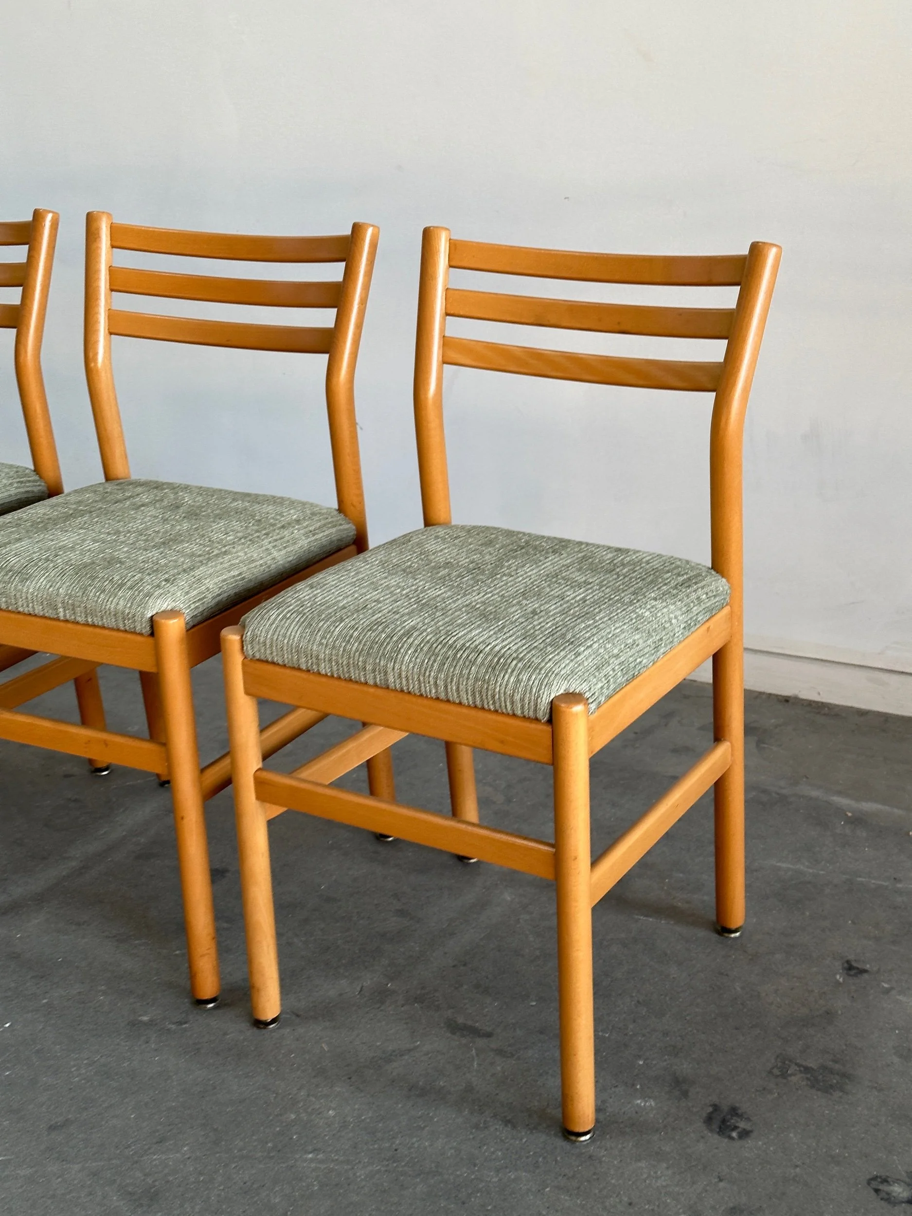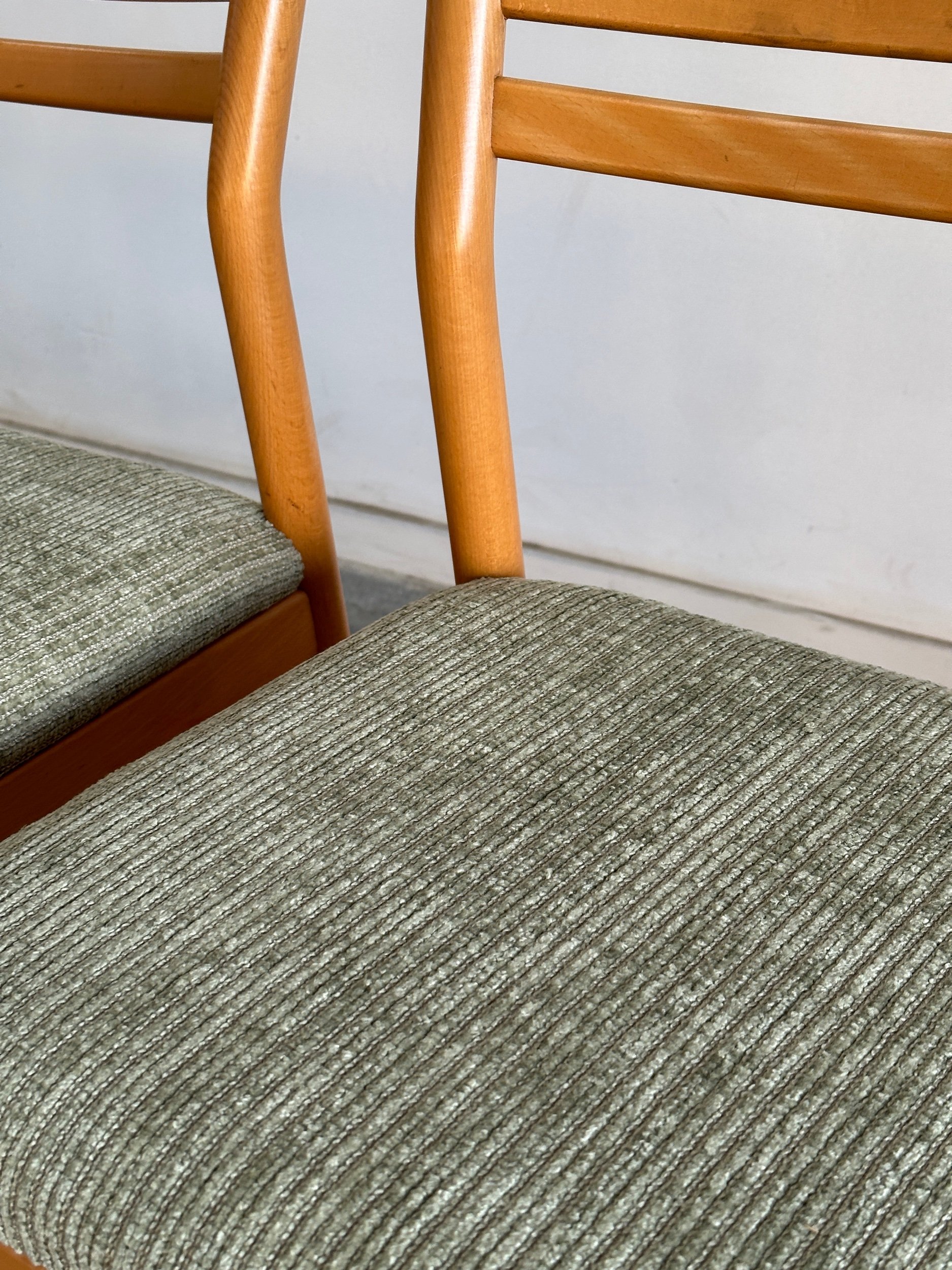 Swedish dining chairs circa 1980s. This set has been structurally restored and each unit features fresh straps, new foam and new textured fabric. Price is for the set of four.
