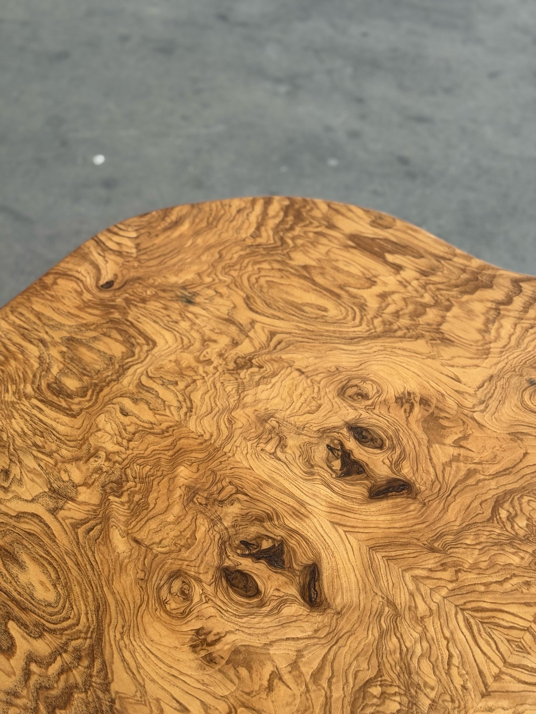 Sculptural Coffee table in olive Ash Burl