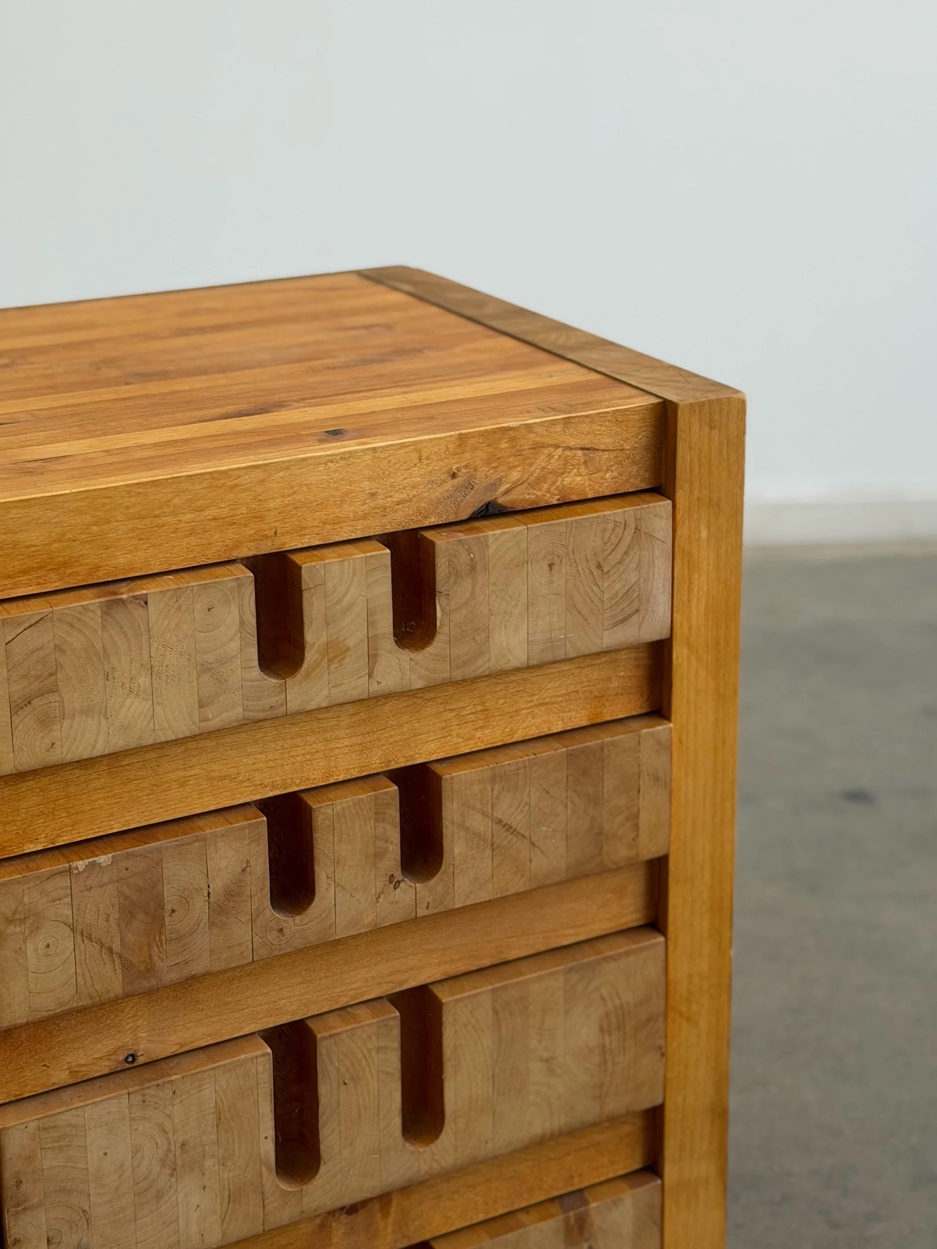 Elevate your space with a touch of organic minimalism. This artisanal multi-drawer chest is a masterclass in functional sculpture, handcrafted from premium reclaimed wood that showcases a rich, honey-toned grain and natural character marks.