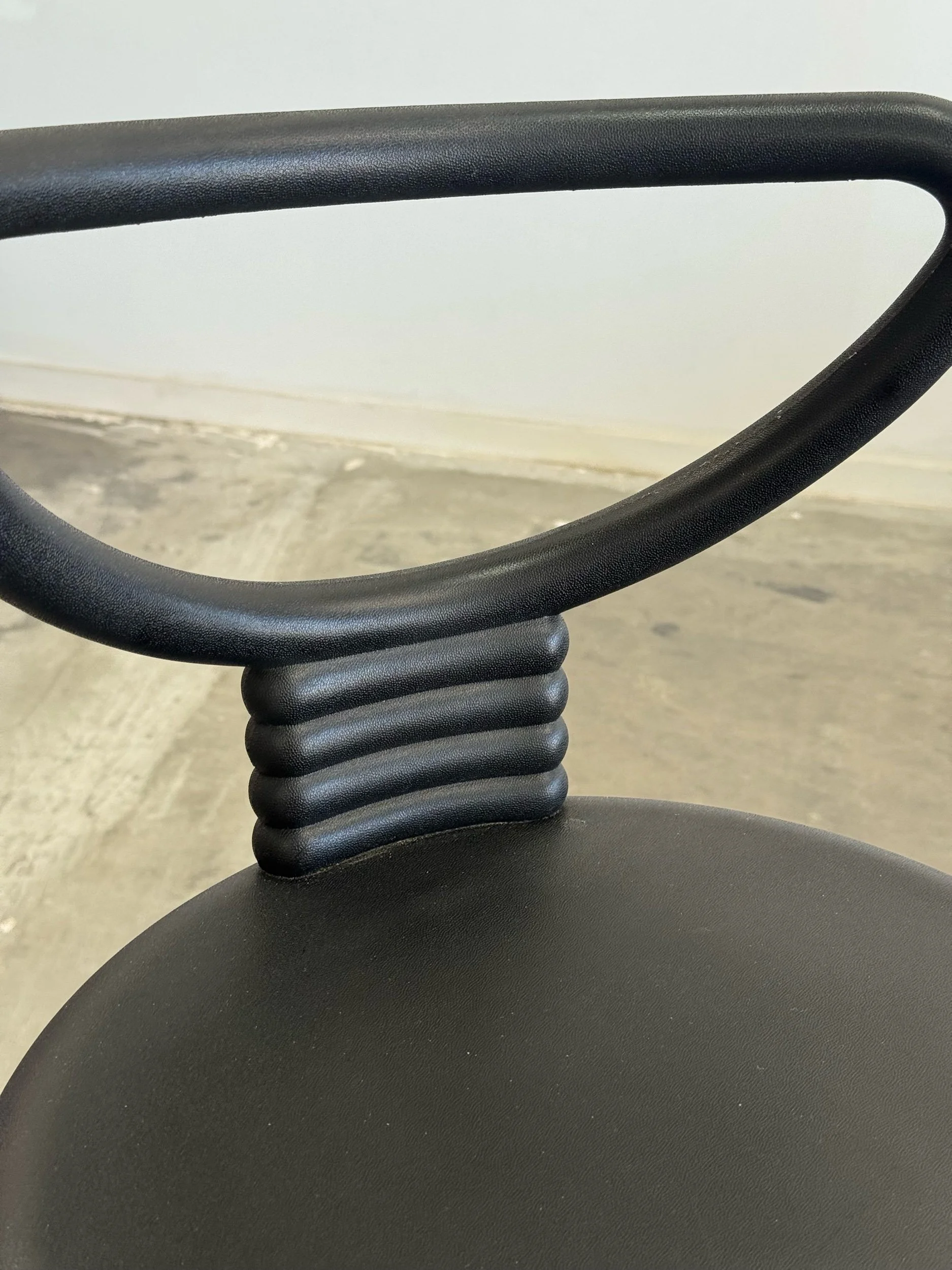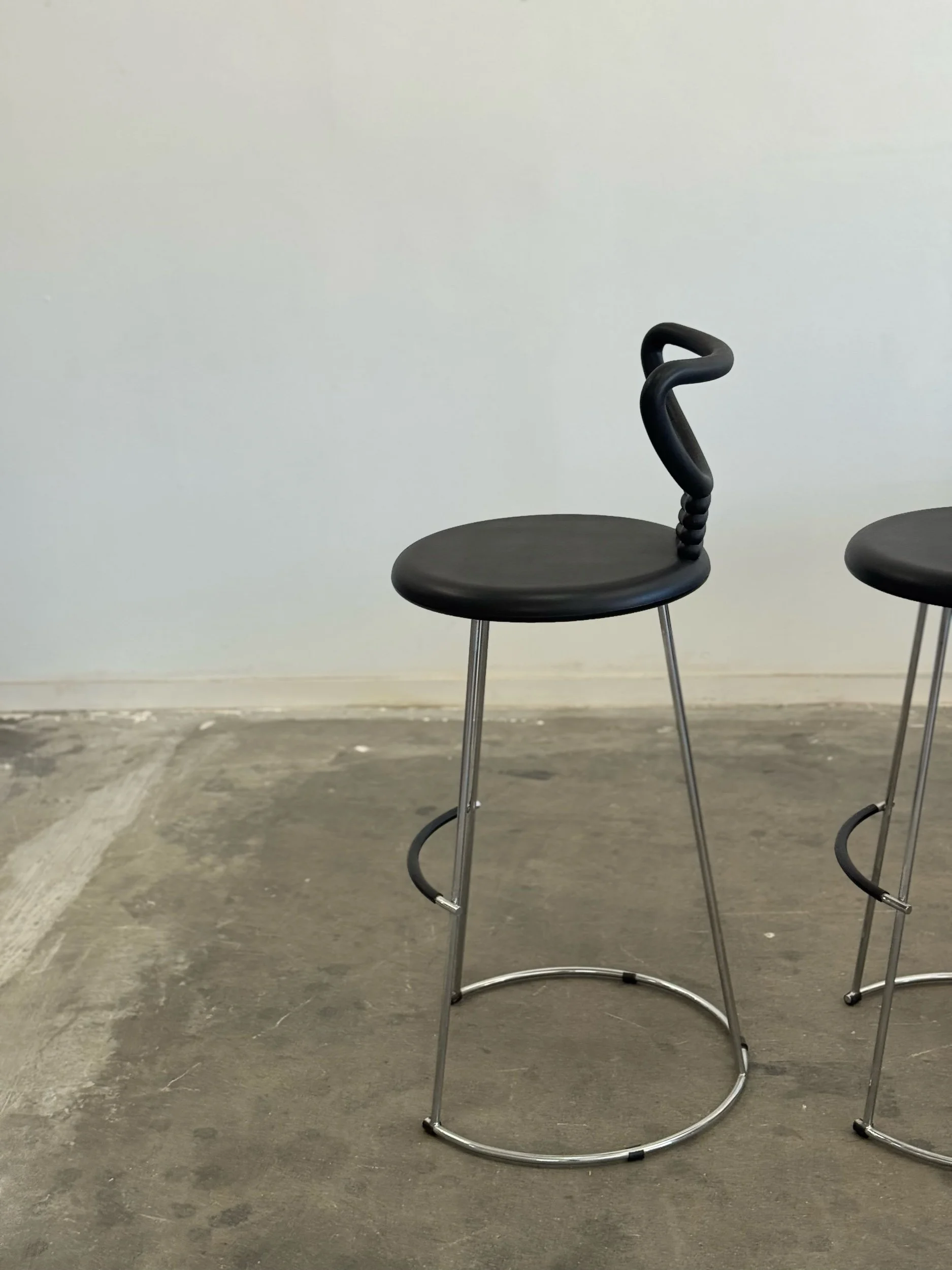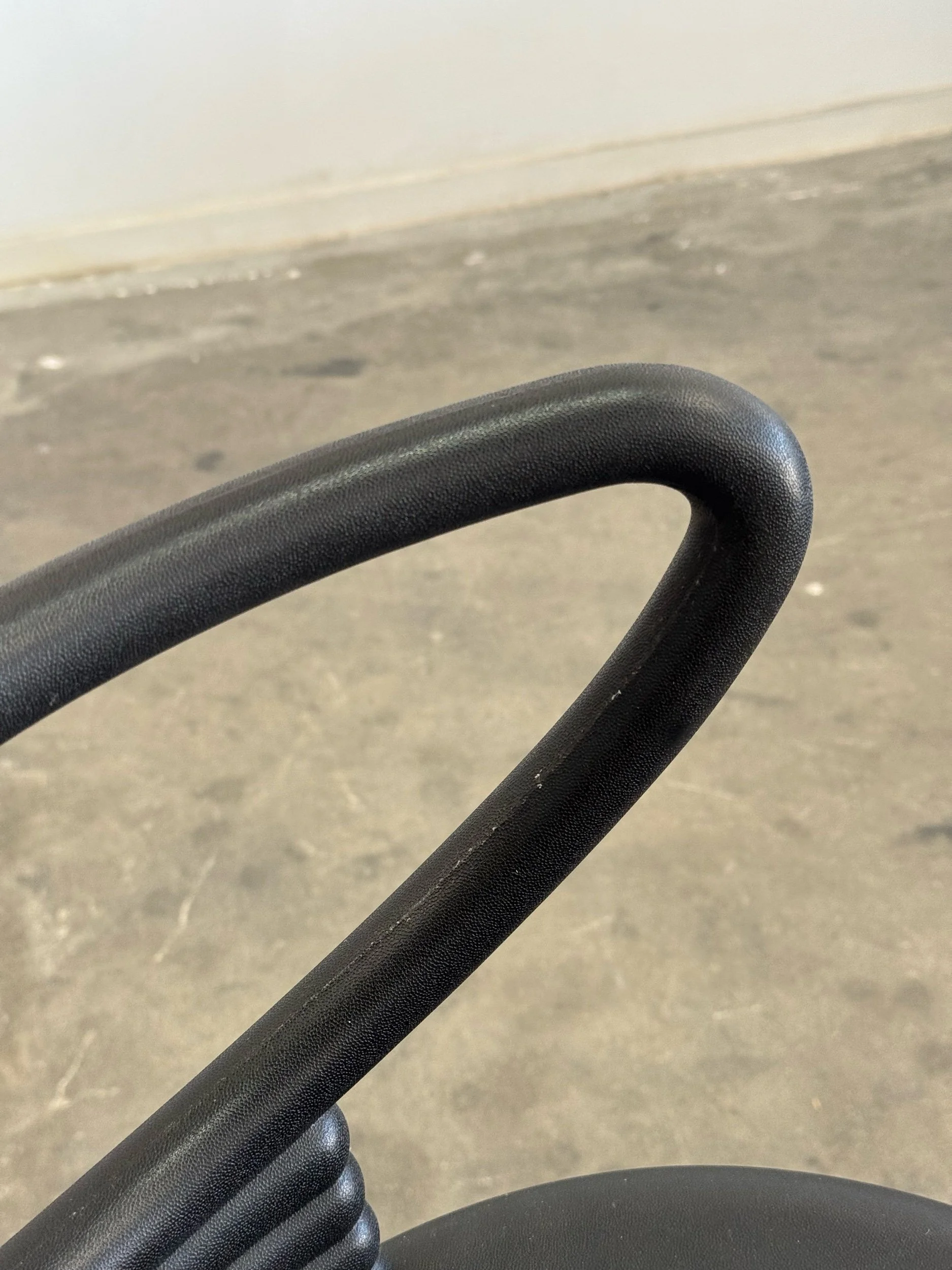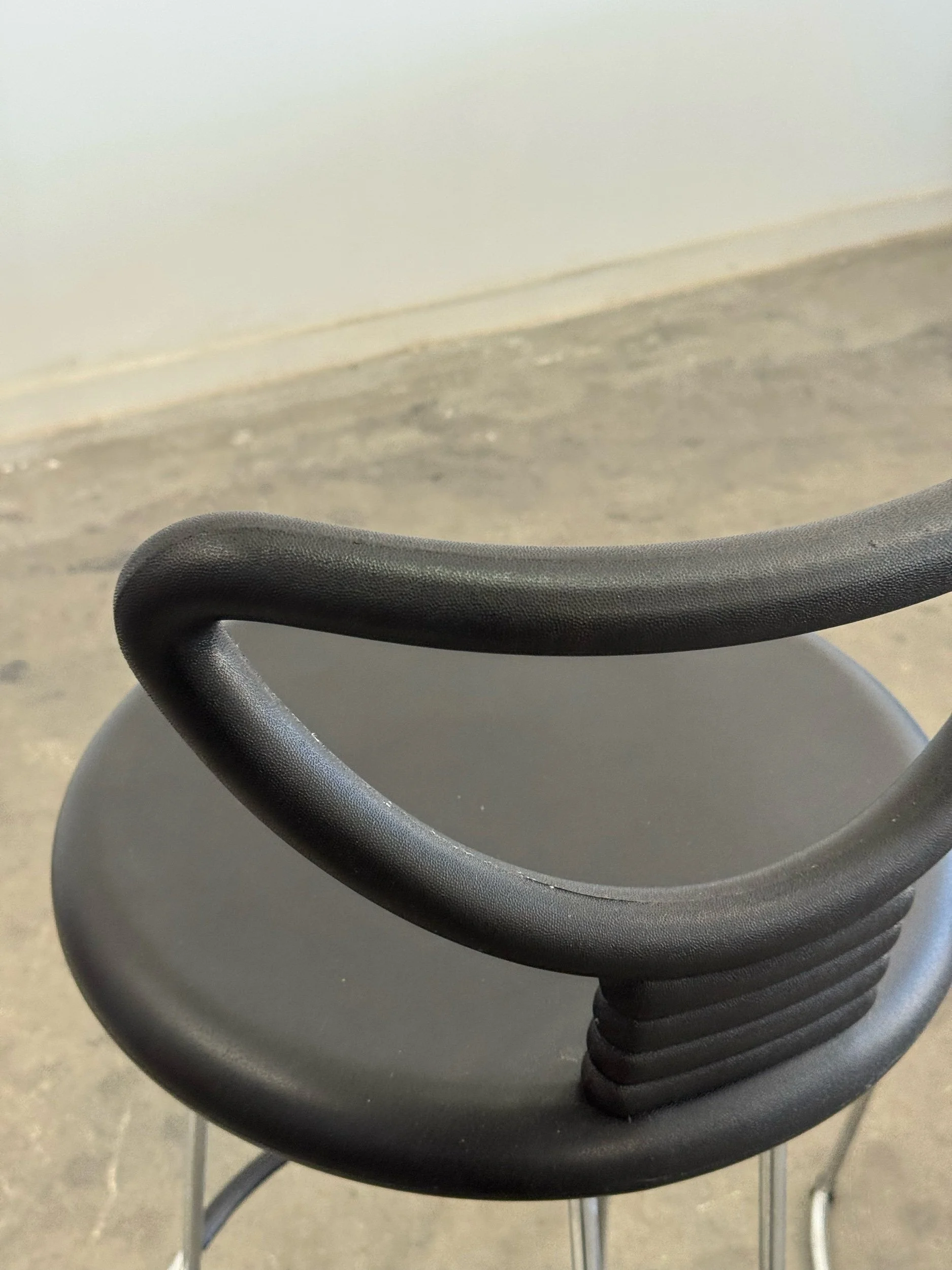 Single Barstool by Alvar Aalto for Artek in good gently used condition. Barstool has an upholstered black vinyl seat. Price is for this single unit as shown. Barstool has some areas of wear but sturcturally item is sound and strong.