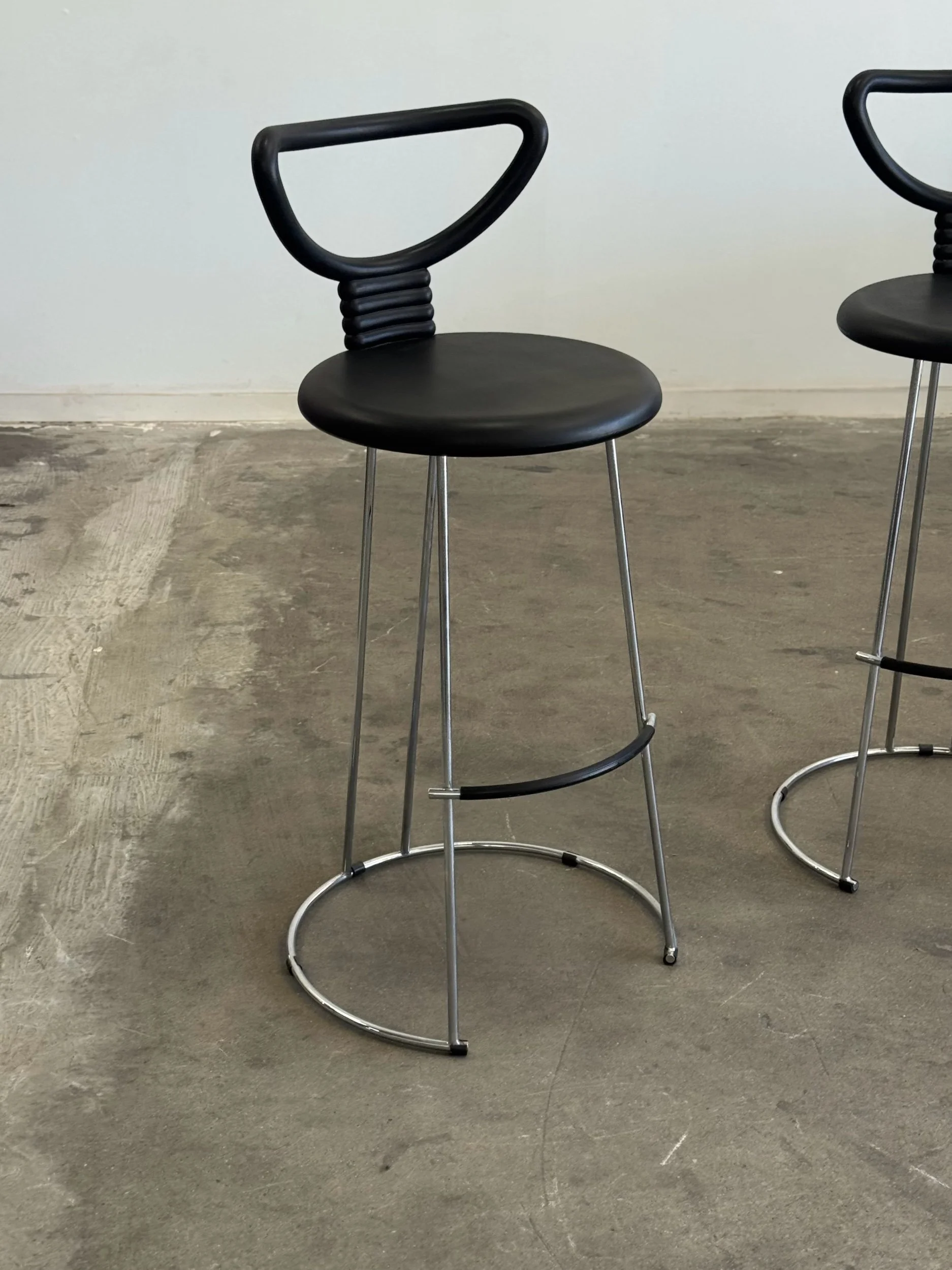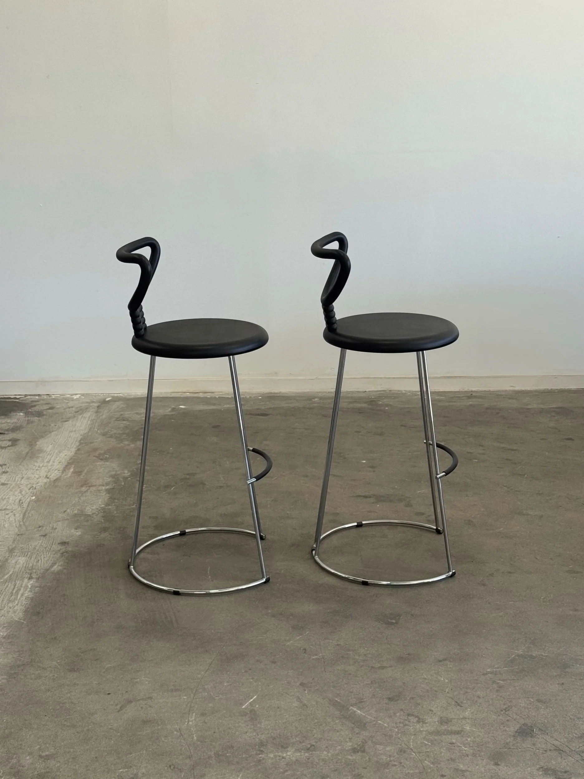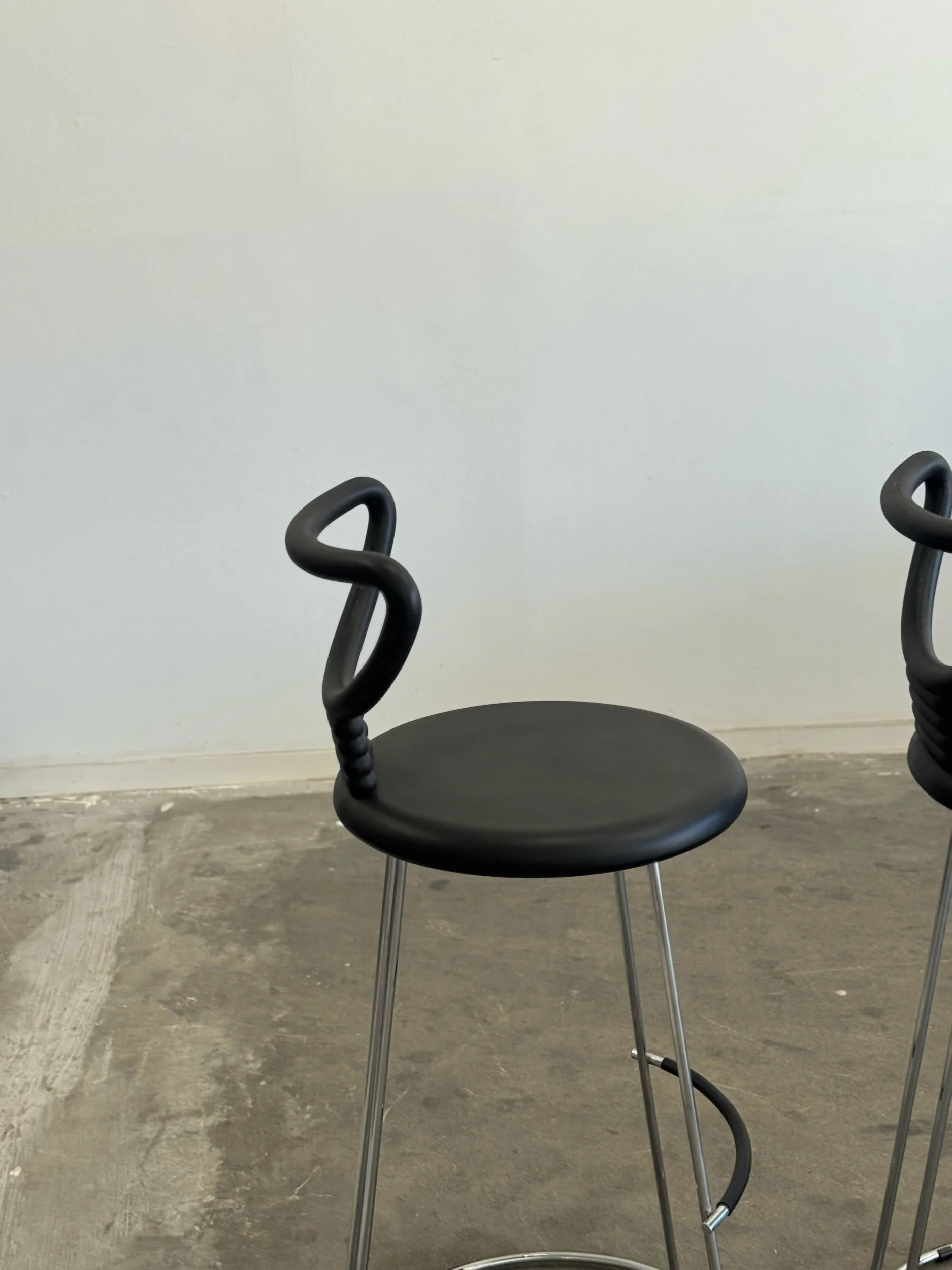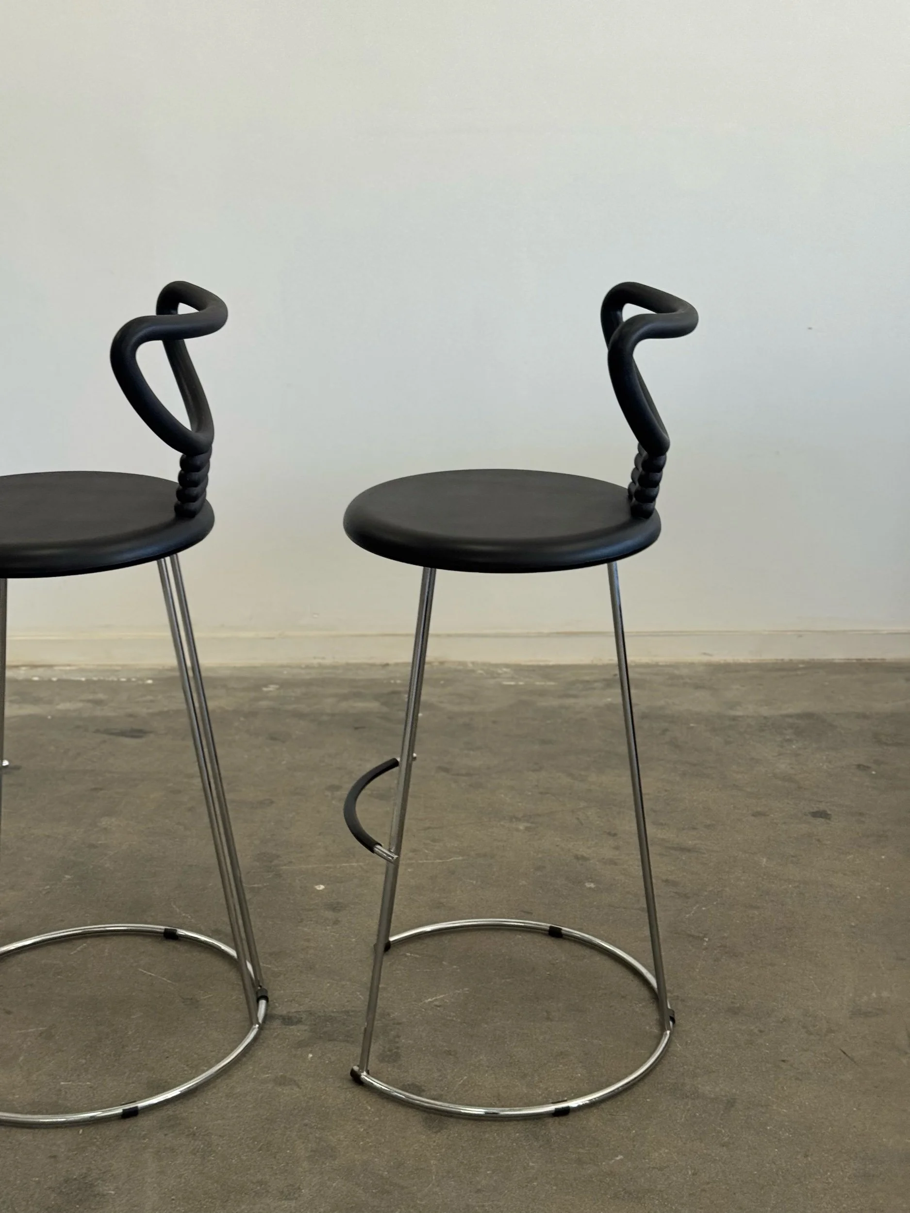 Single Barstool by Alvar Aalto for Artek in good gently used condition. Barstool has an upholstered black vinyl seat. Price is for this single unit as shown. Barstool has some areas of wear but sturcturally item is sound and strong.