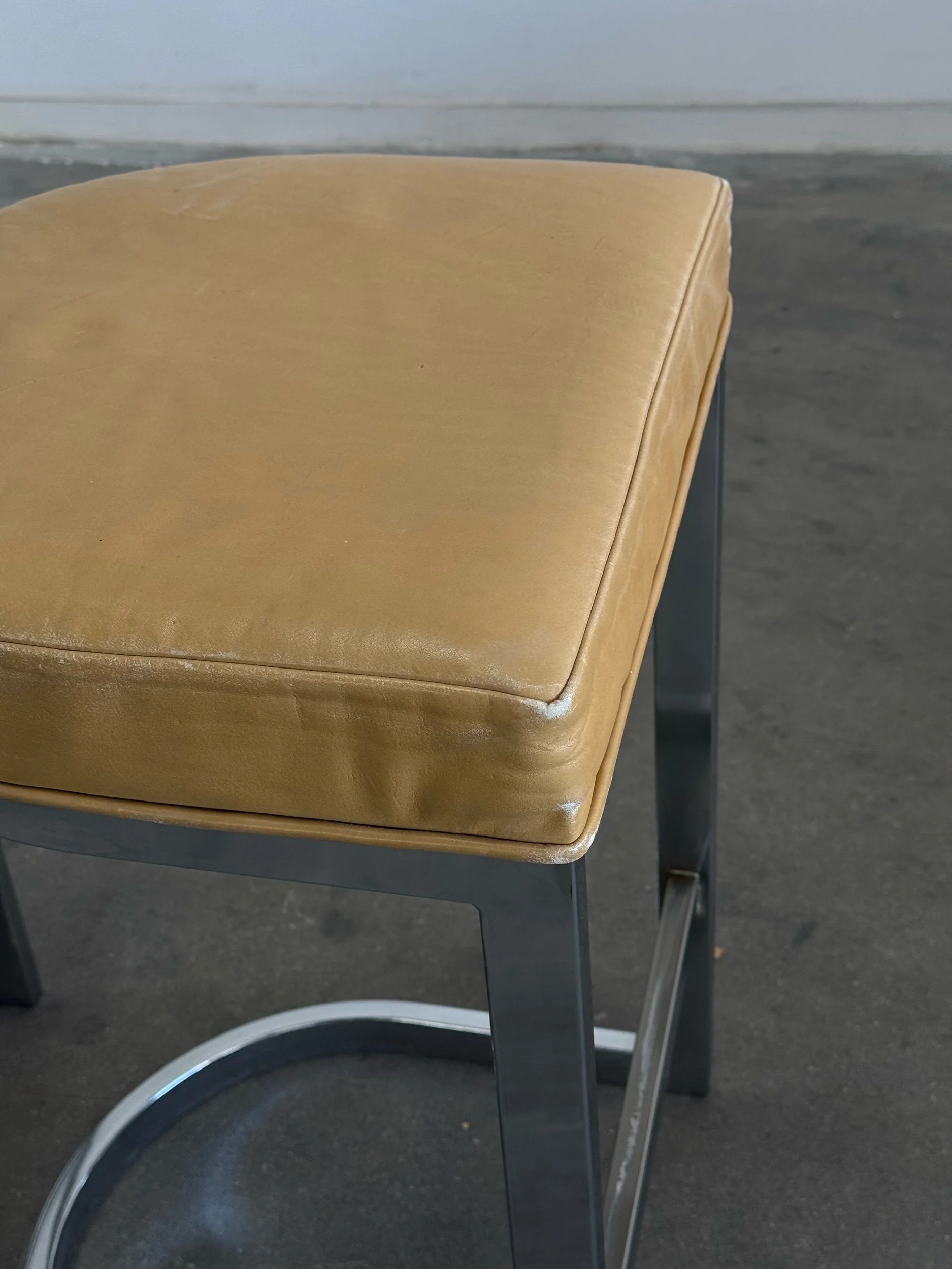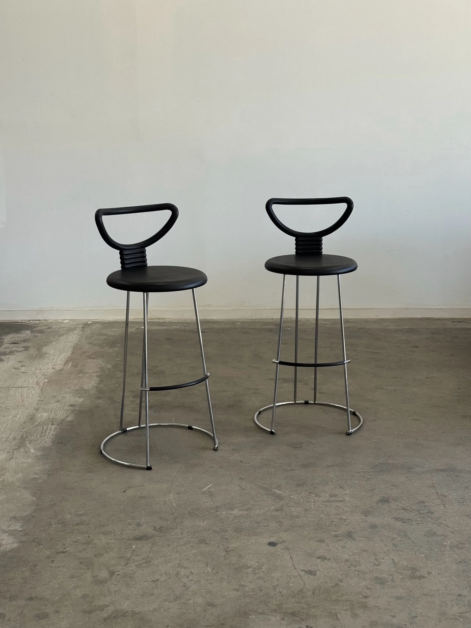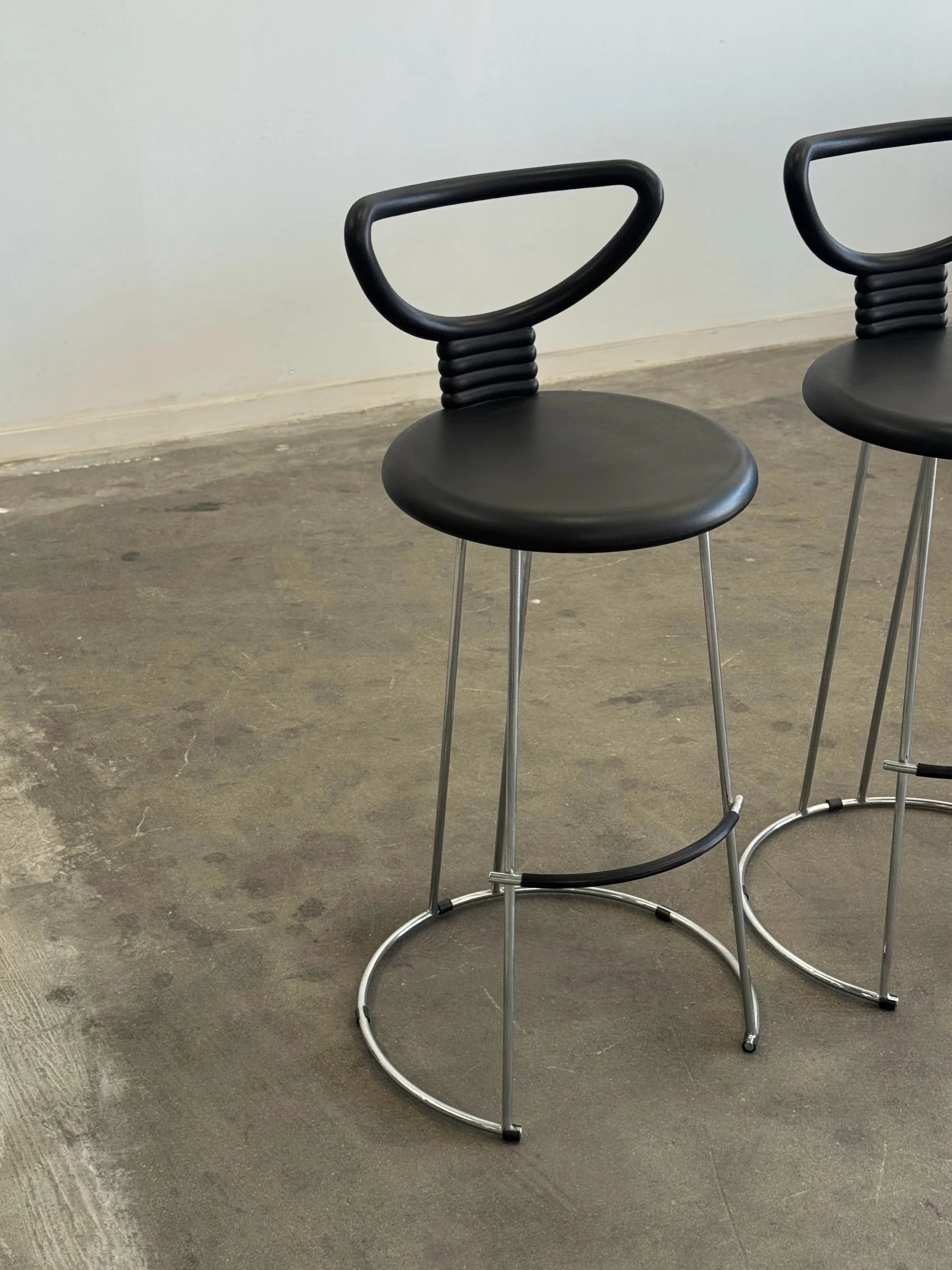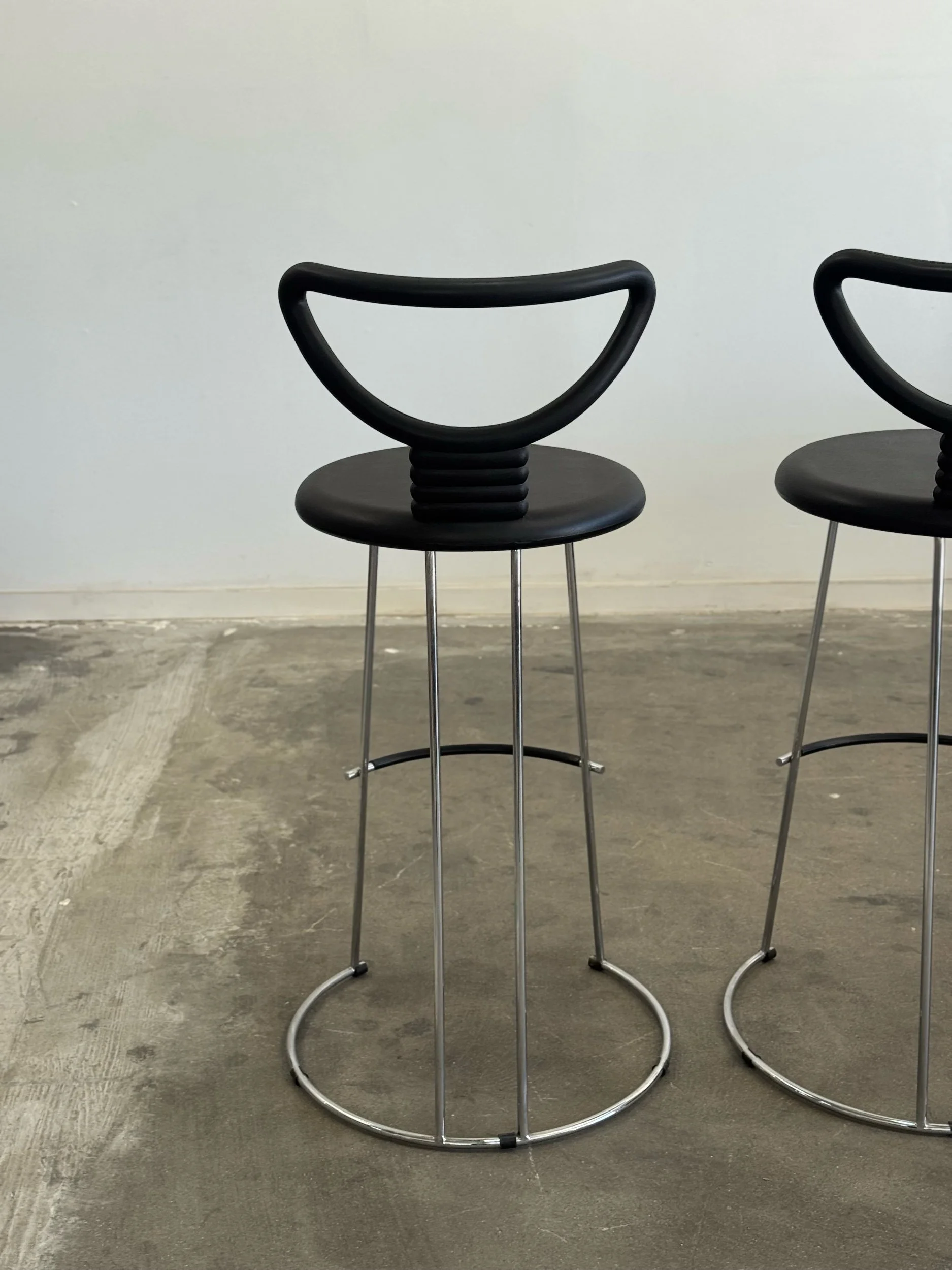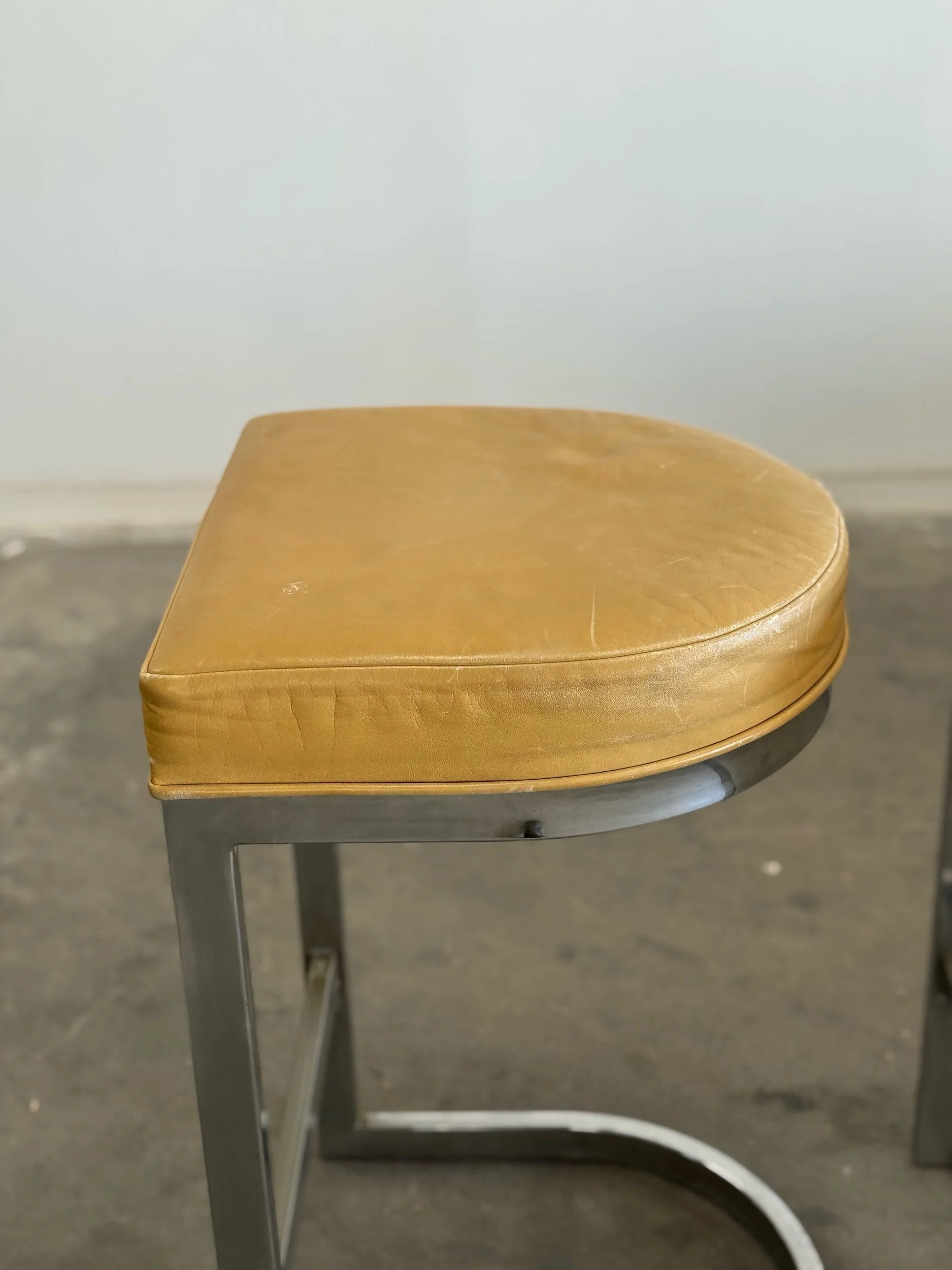 Single Barstool by Alvar Aalto for Artek in good gently used condition. Barstool has an upholstered black vinyl seat. Price is for this single unit as shown. Barstool has some areas of wear but sturcturally item is sound and strong.