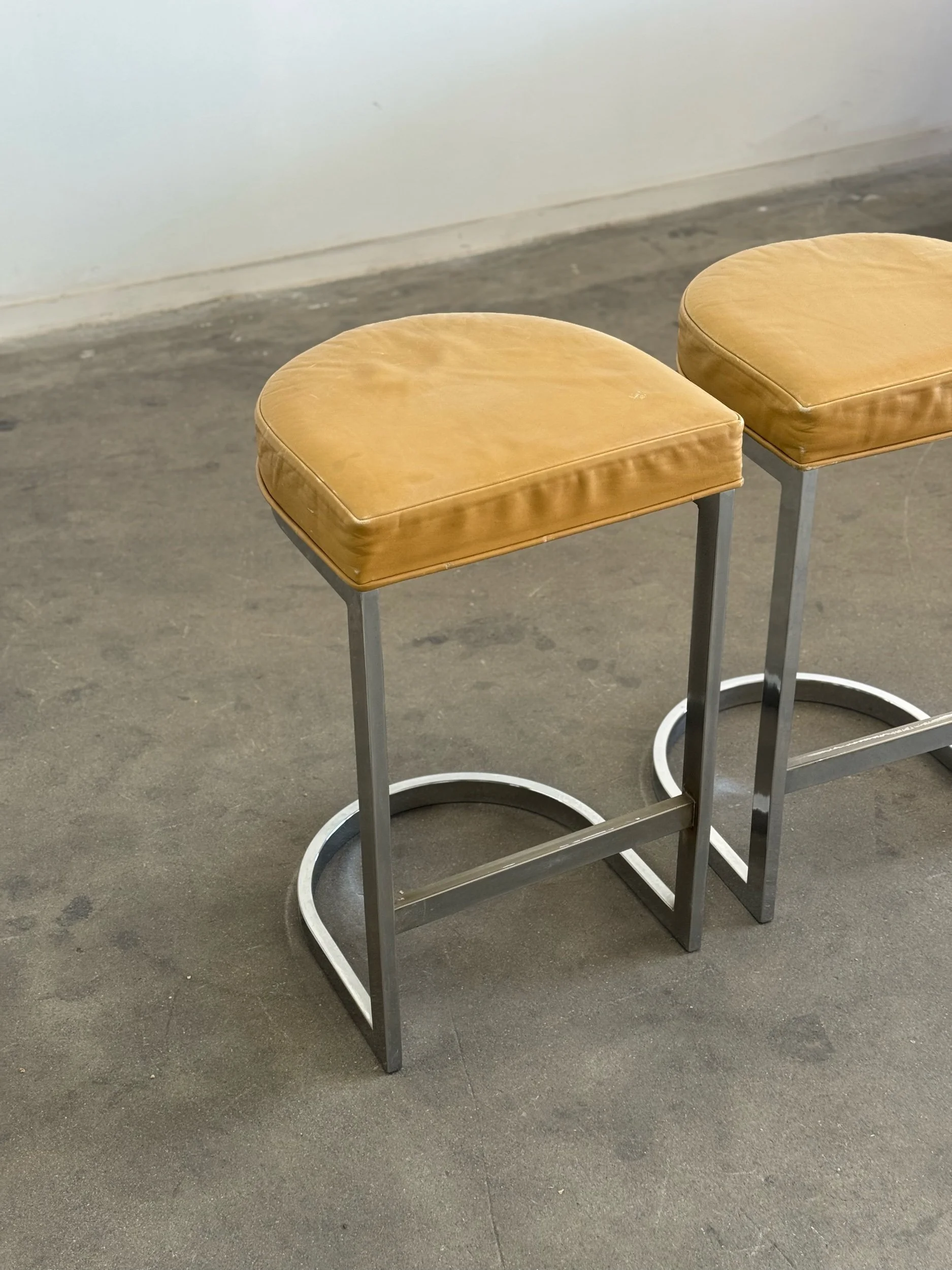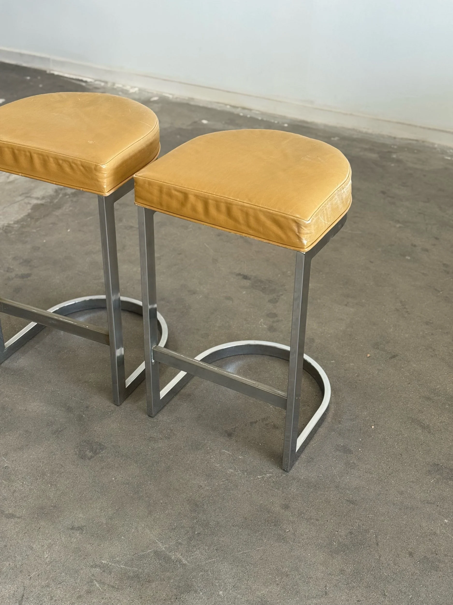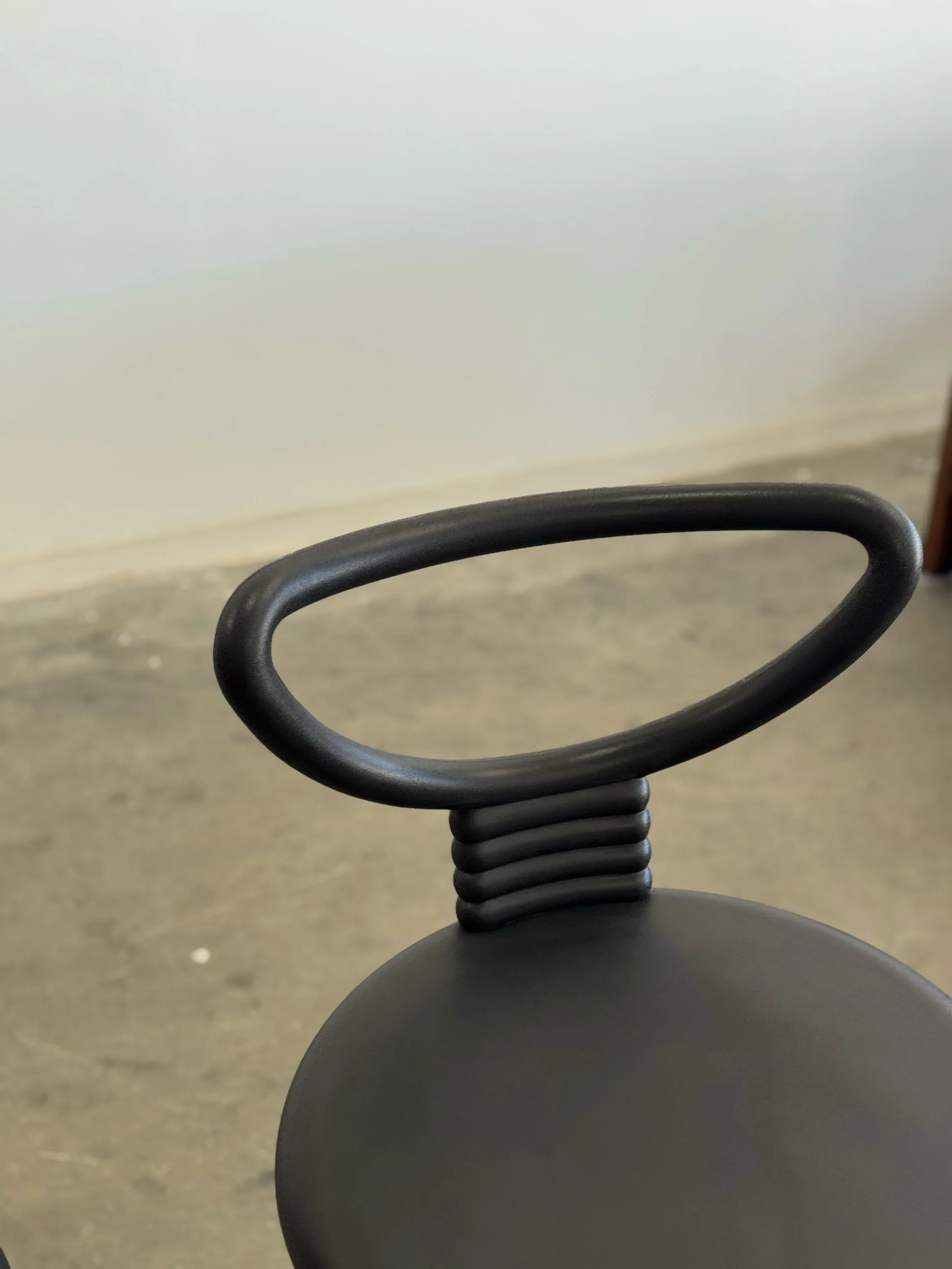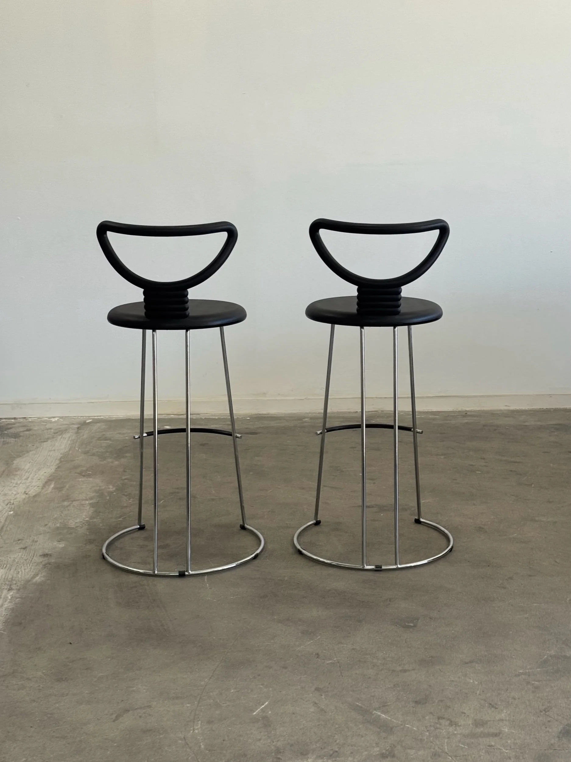 Single Barstool by Alvar Aalto for Artek in good gently used condition. Barstool has an upholstered black vinyl seat. Price is for this single unit as shown. Barstool has some areas of wear but sturcturally item is sound and strong.