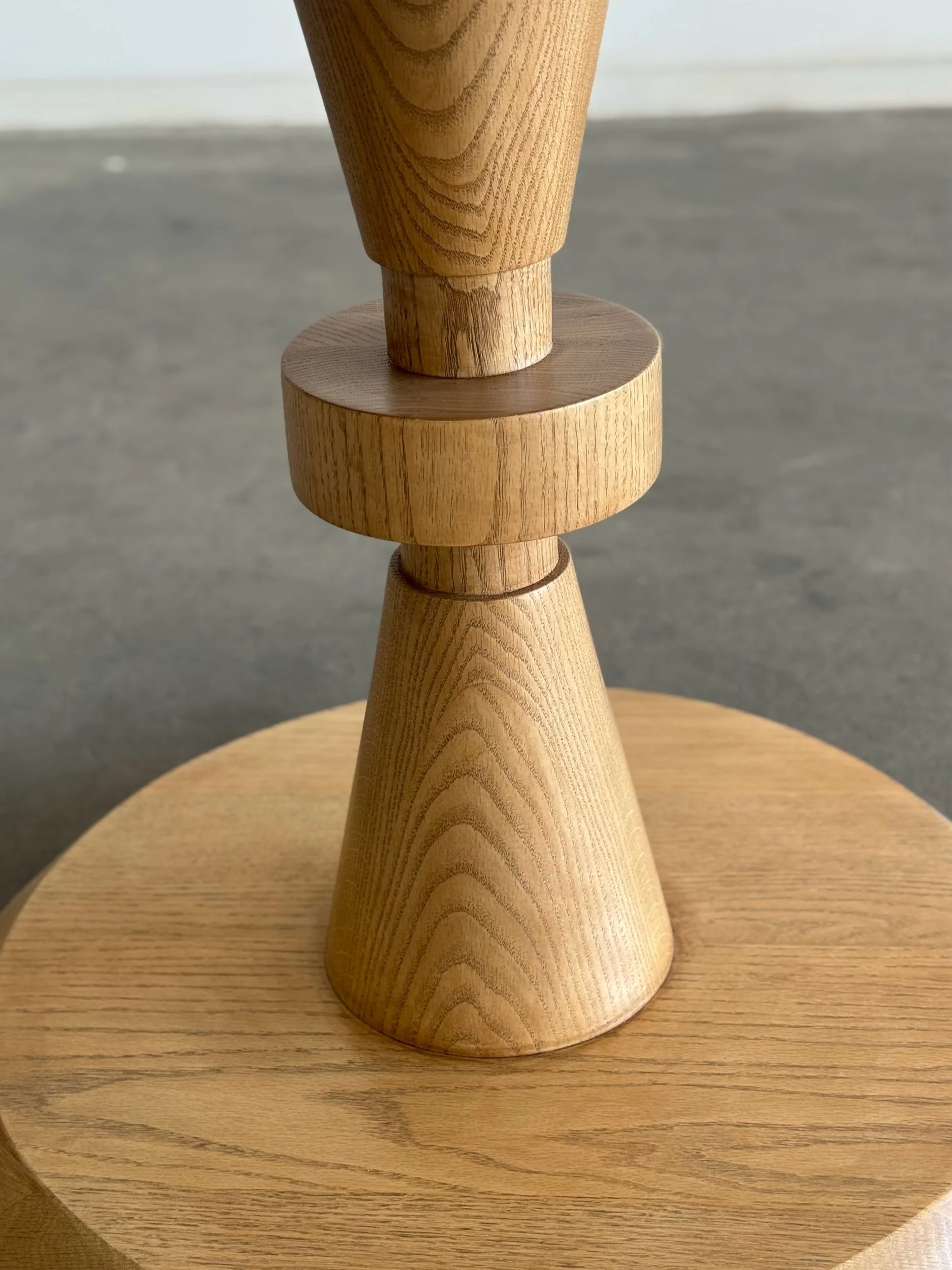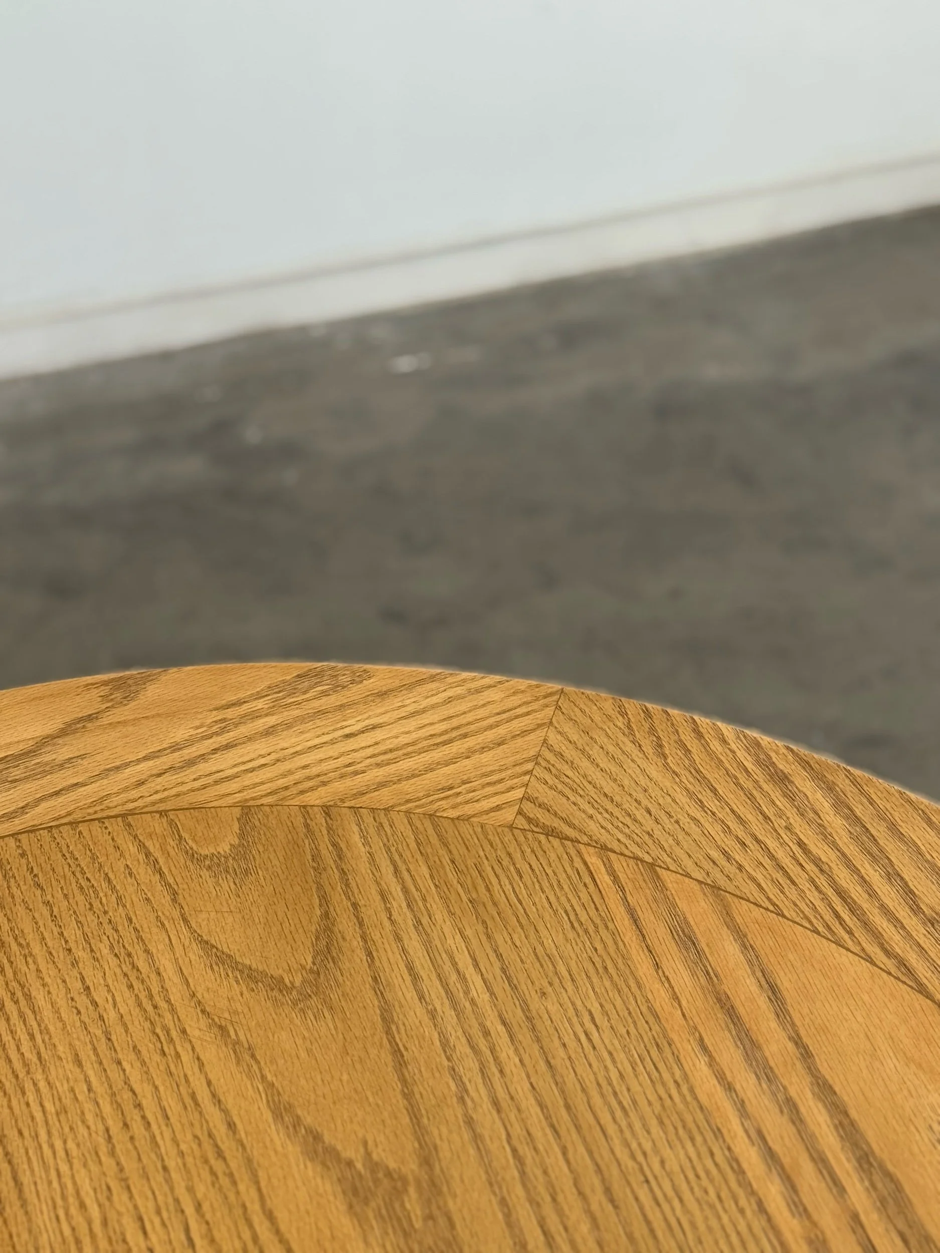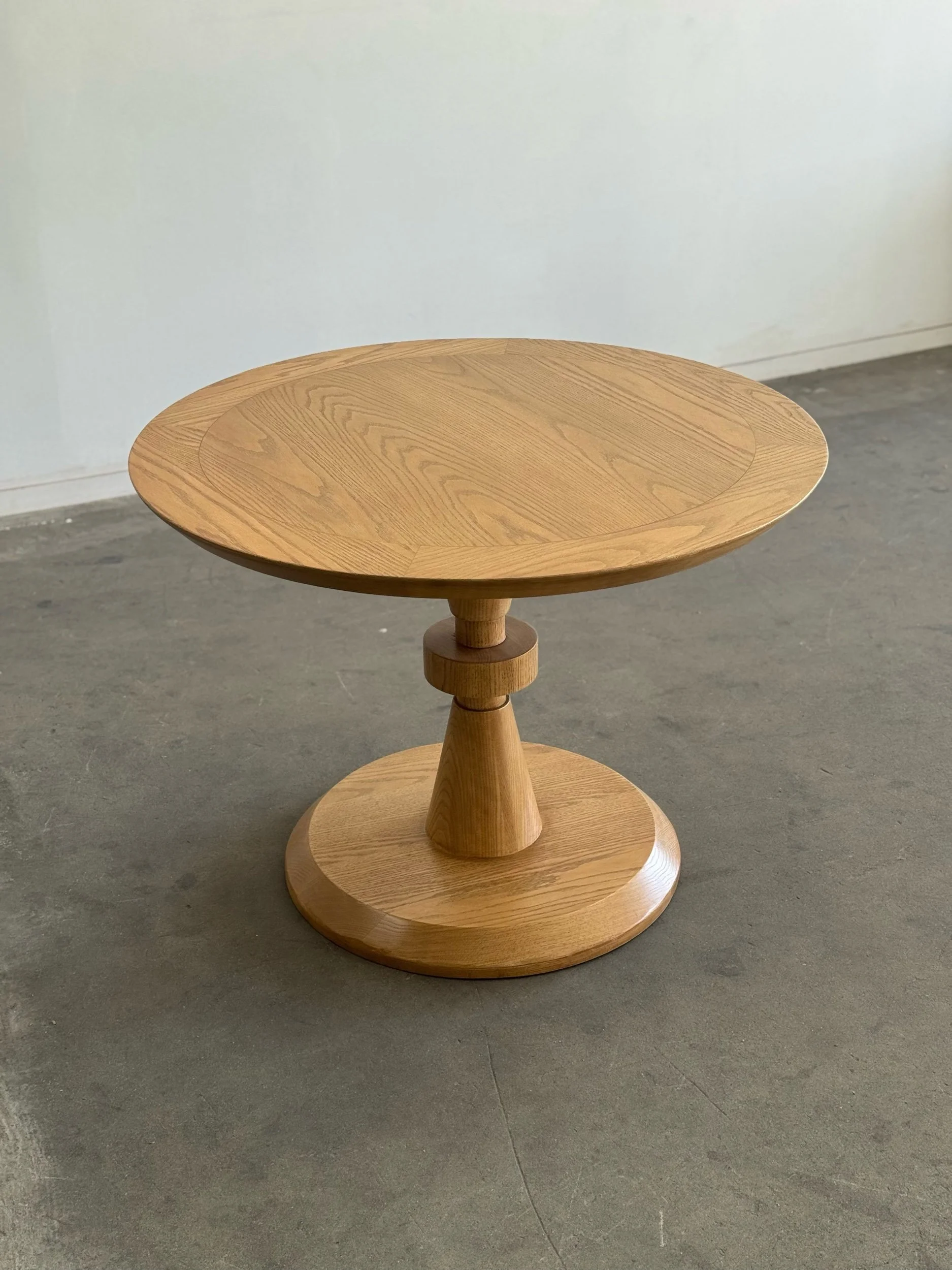 Forma dining table custom made here in Los Angeles. This table includes a clear natural finish, allowing for its organic form to be displayed as is, please note a clear coat does show natural imperfections in the wood. Finish can be adjusted to clients preference for a surcharge. Made in solid white oak but can be custom ordered using wood of choice. Features denting along bottom to create balance. Fully customizable to fit your aesthetic.