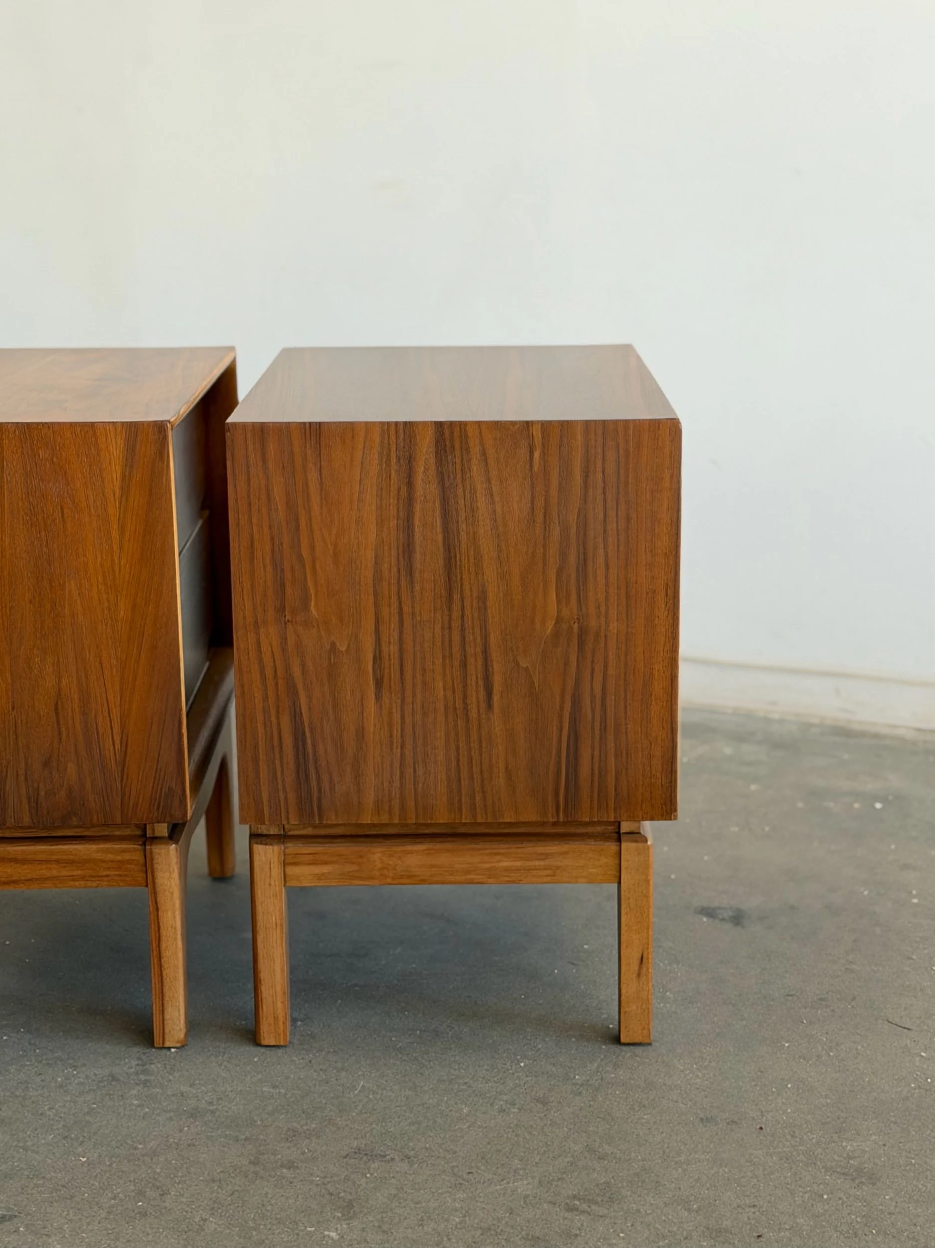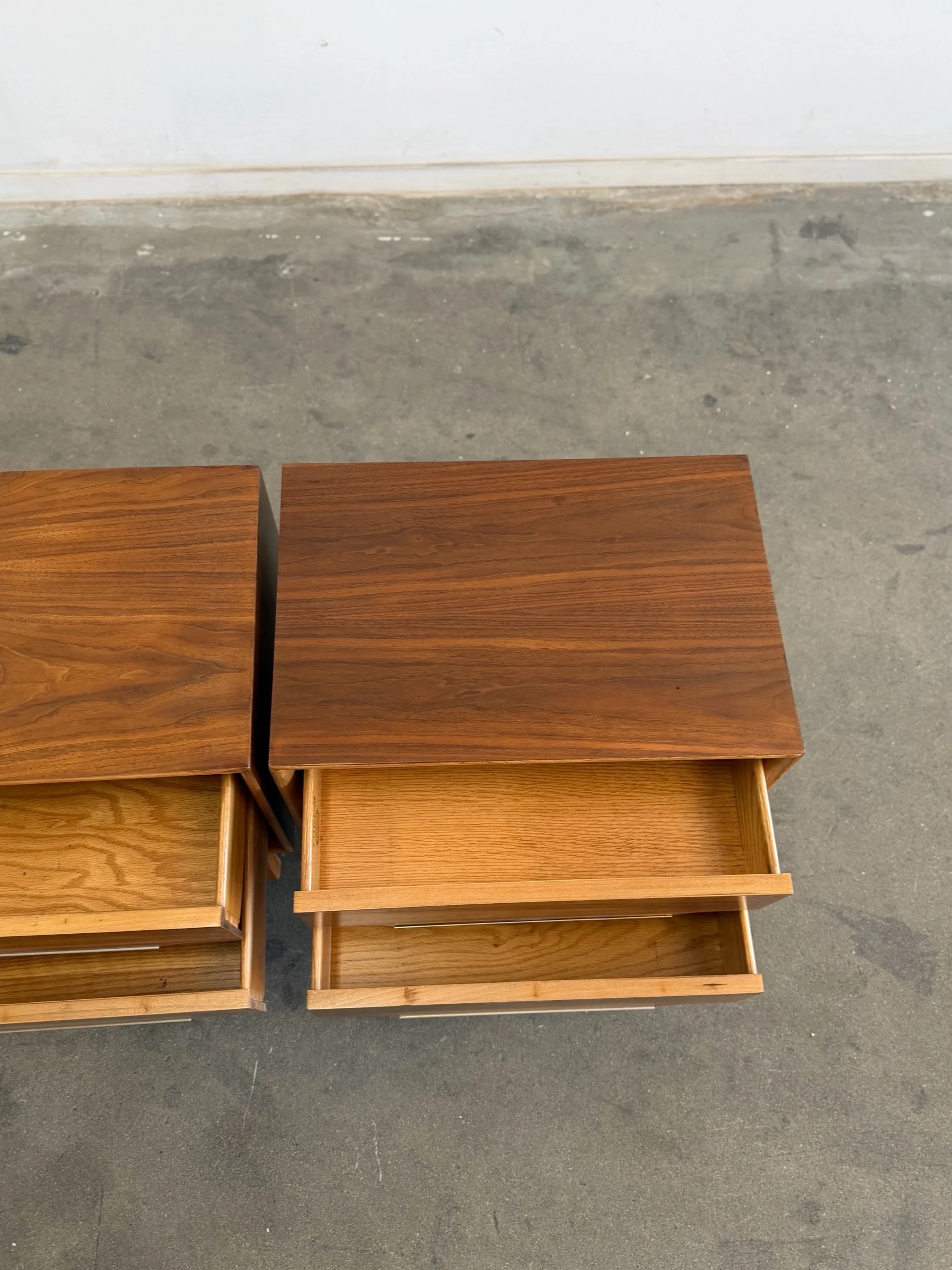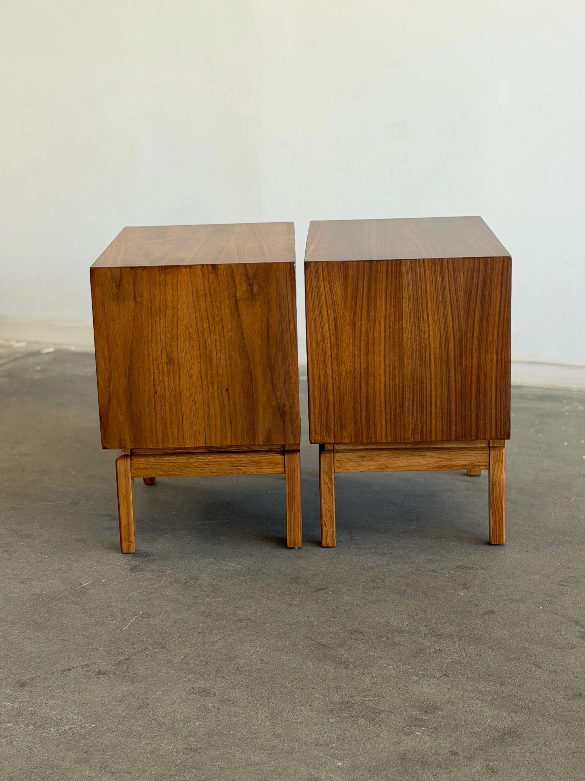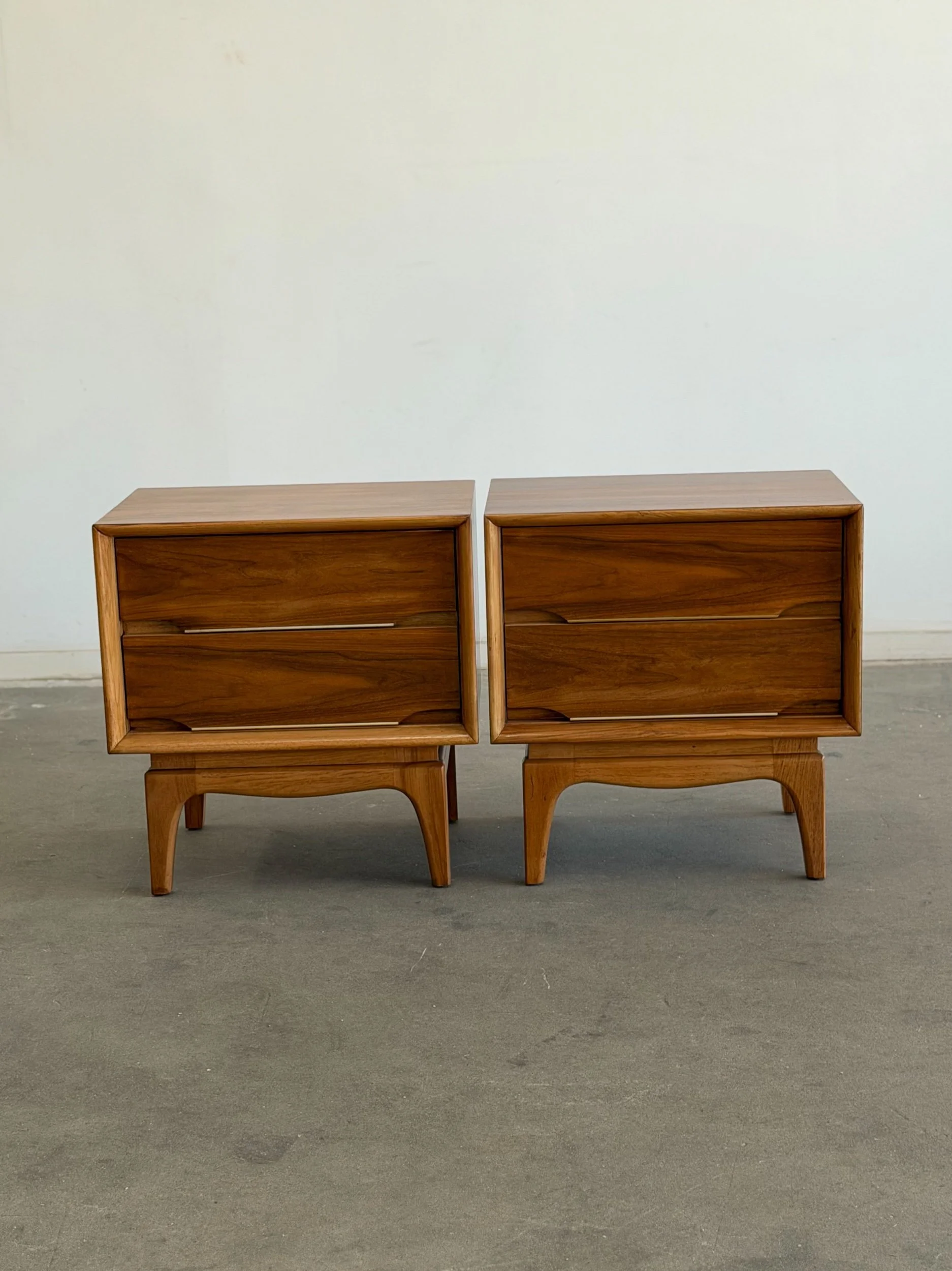 Vintage nightstands restored structurally and aesthetically. Each unit shows well with no major areas of wear. Units have been clear coated to show natural hue. Price is for the pair.