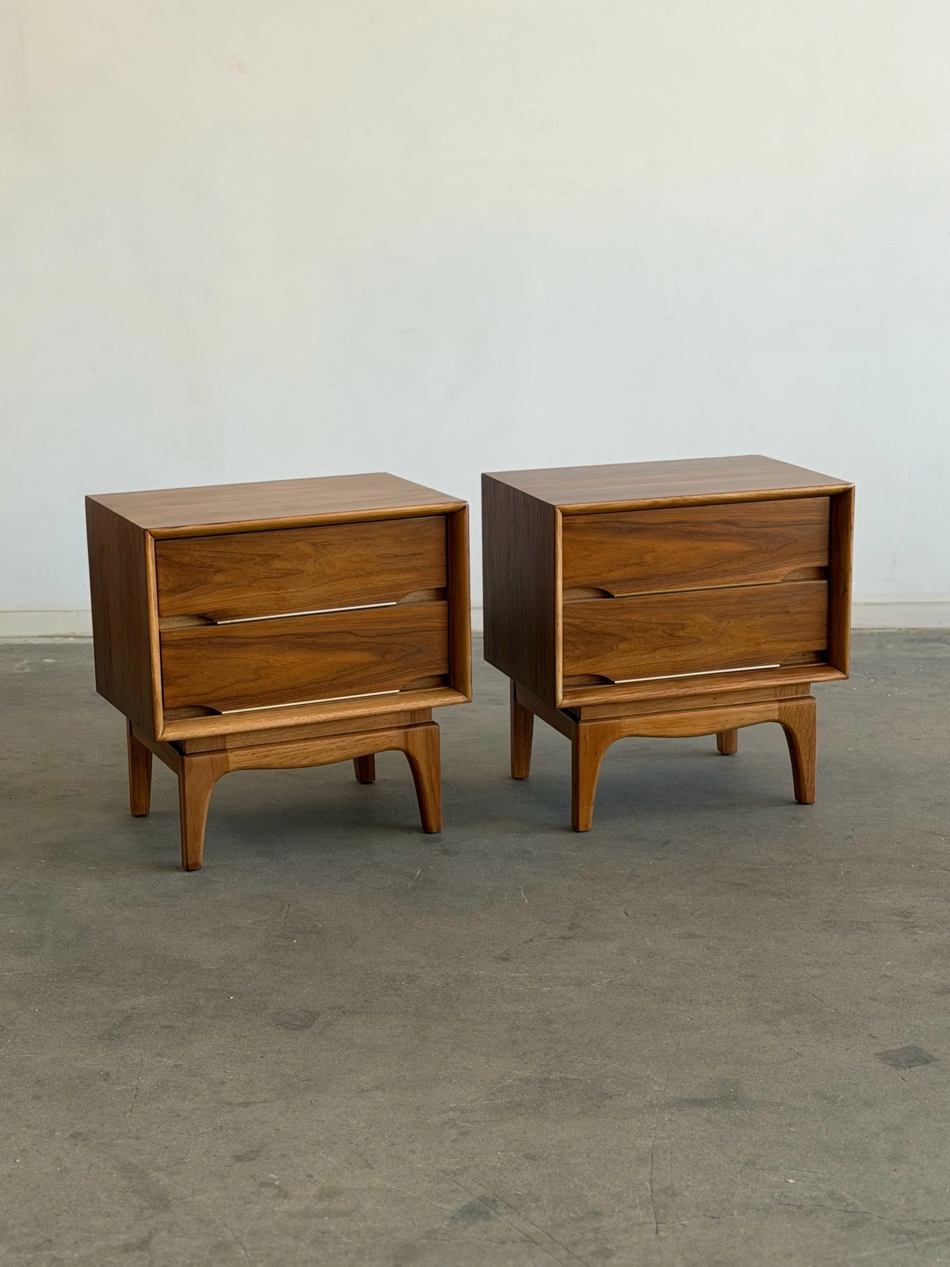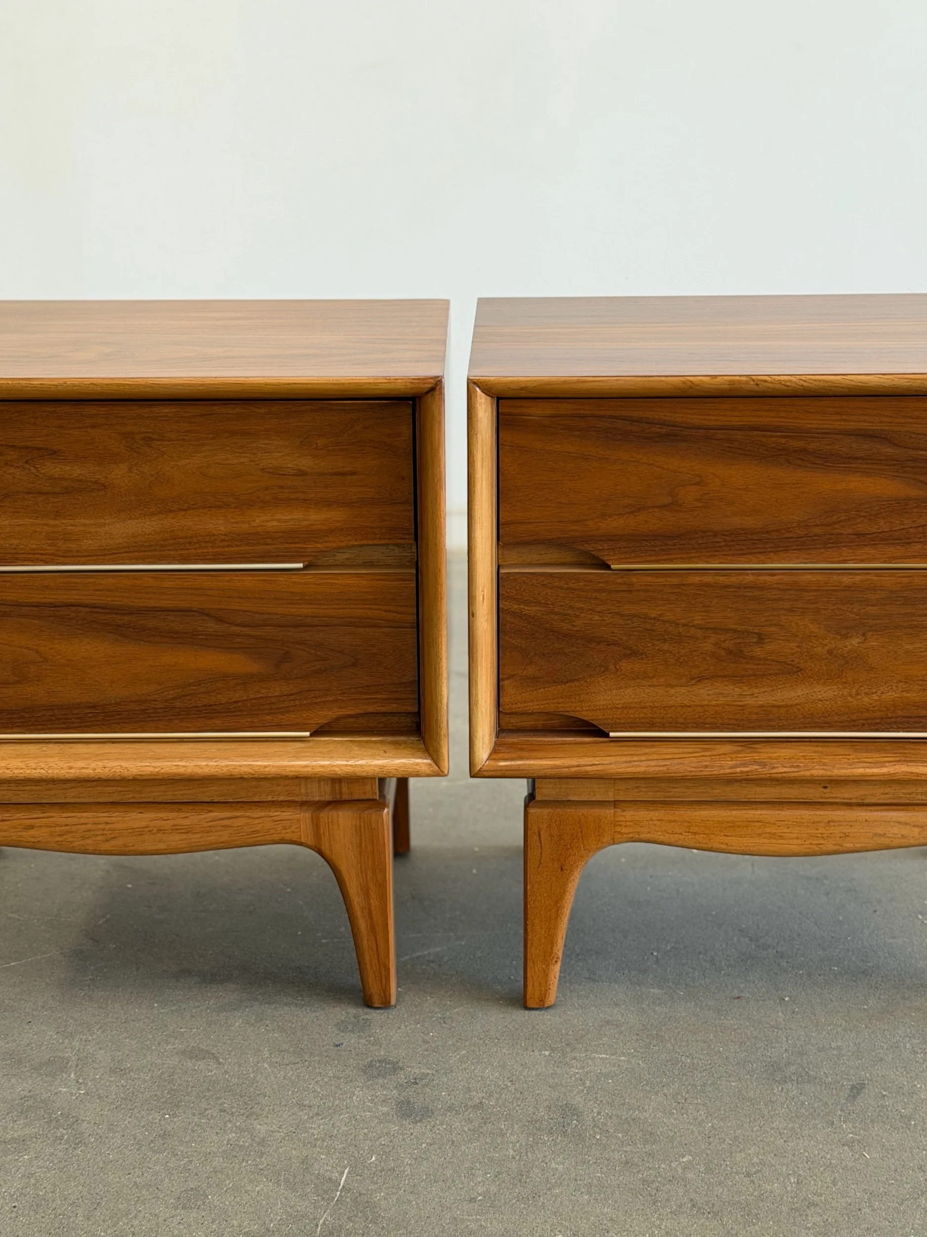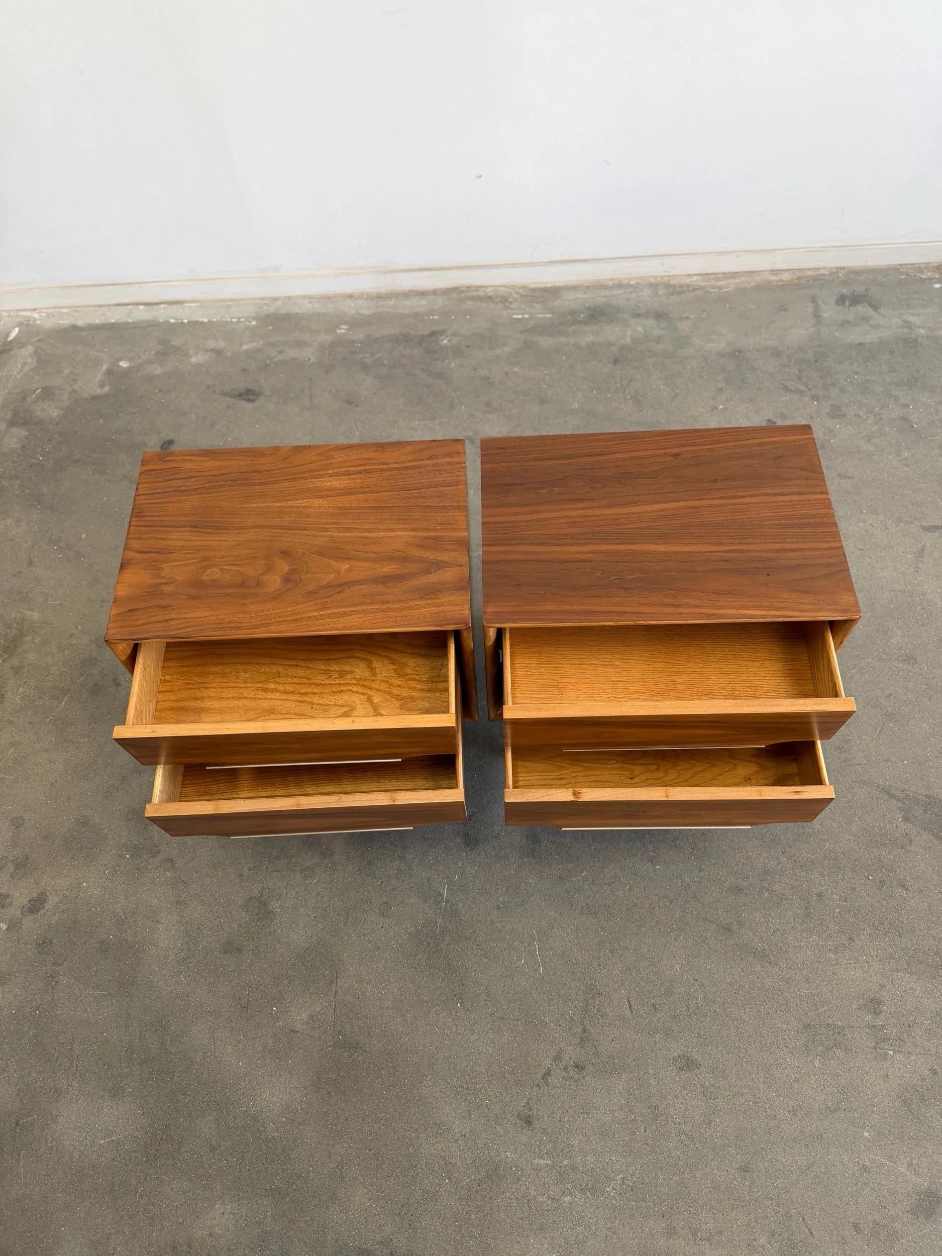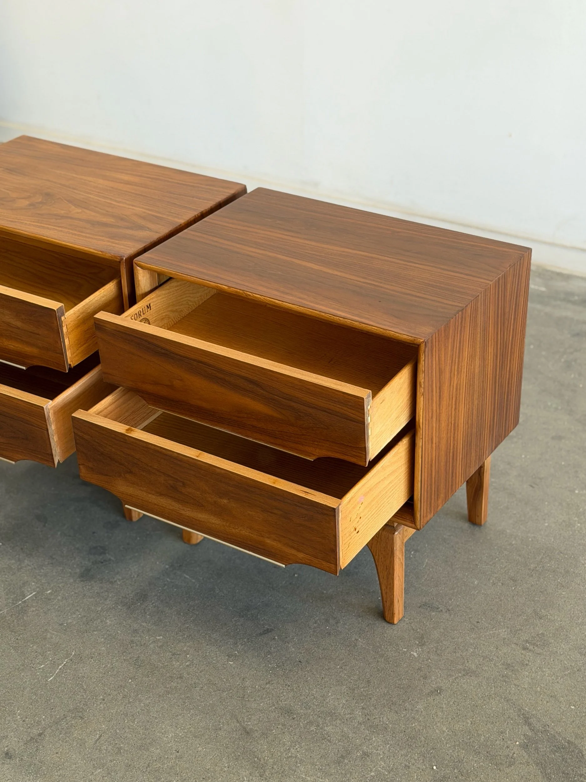 Vintage nightstands restored structurally and aesthetically. Each unit shows well with no major areas of wear. Units have been clear coated to show natural hue. Price is for the pair.