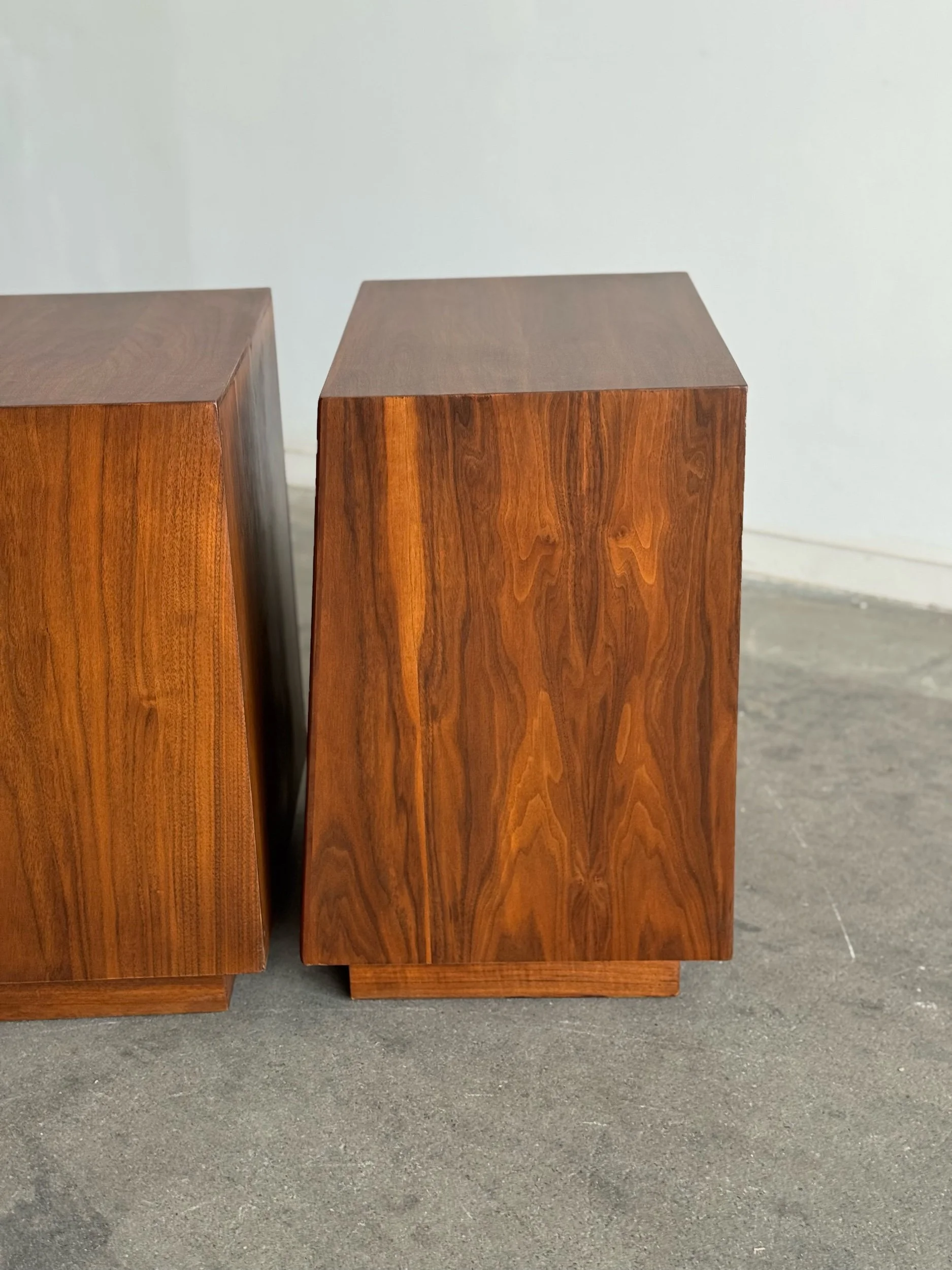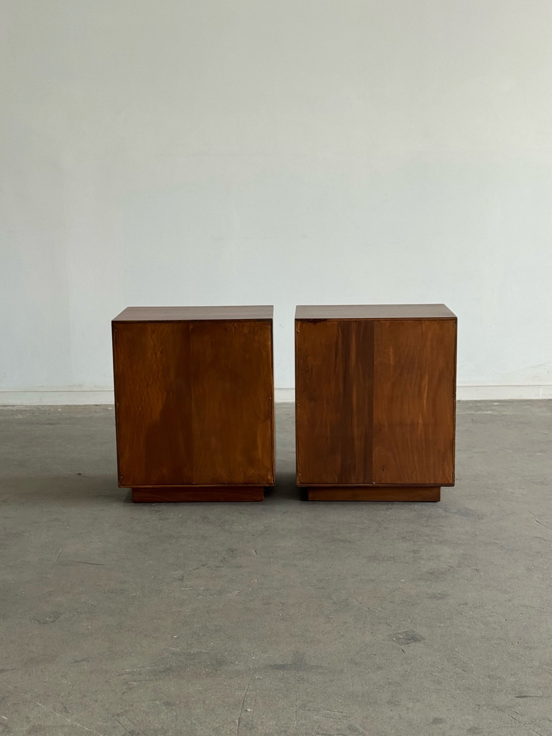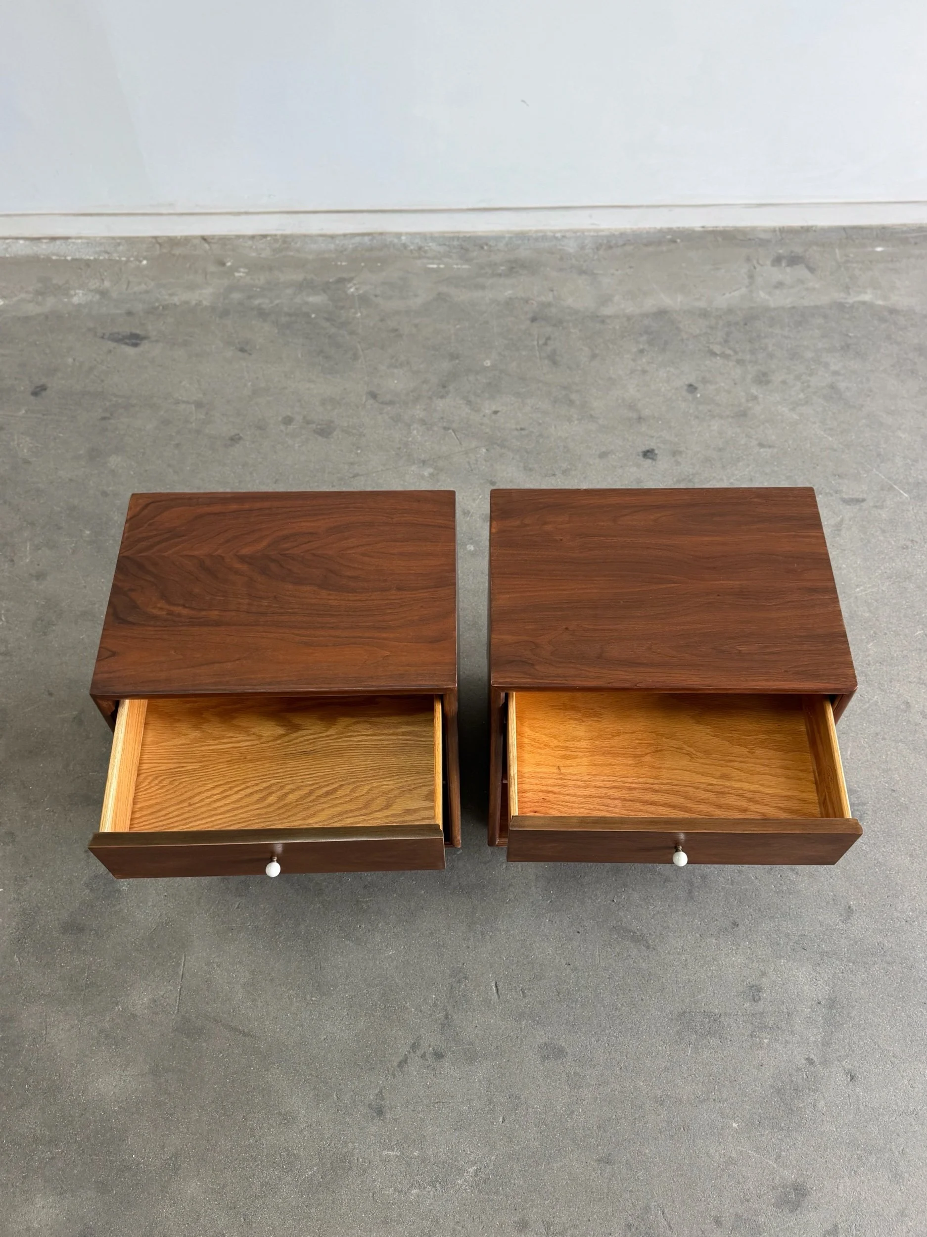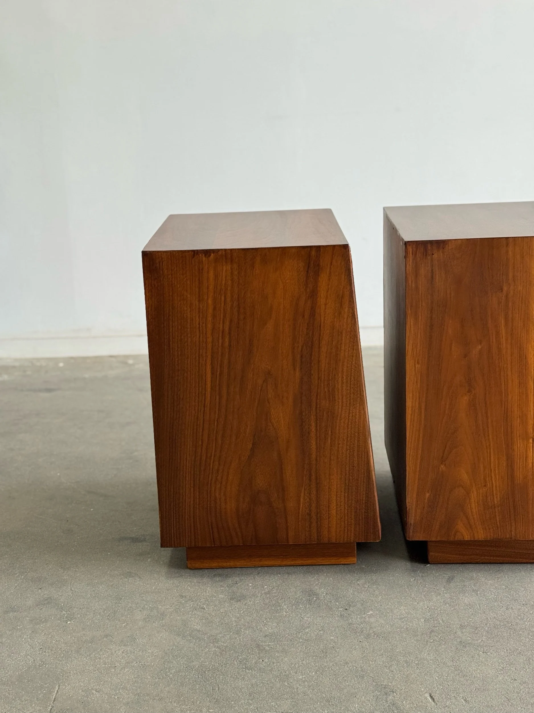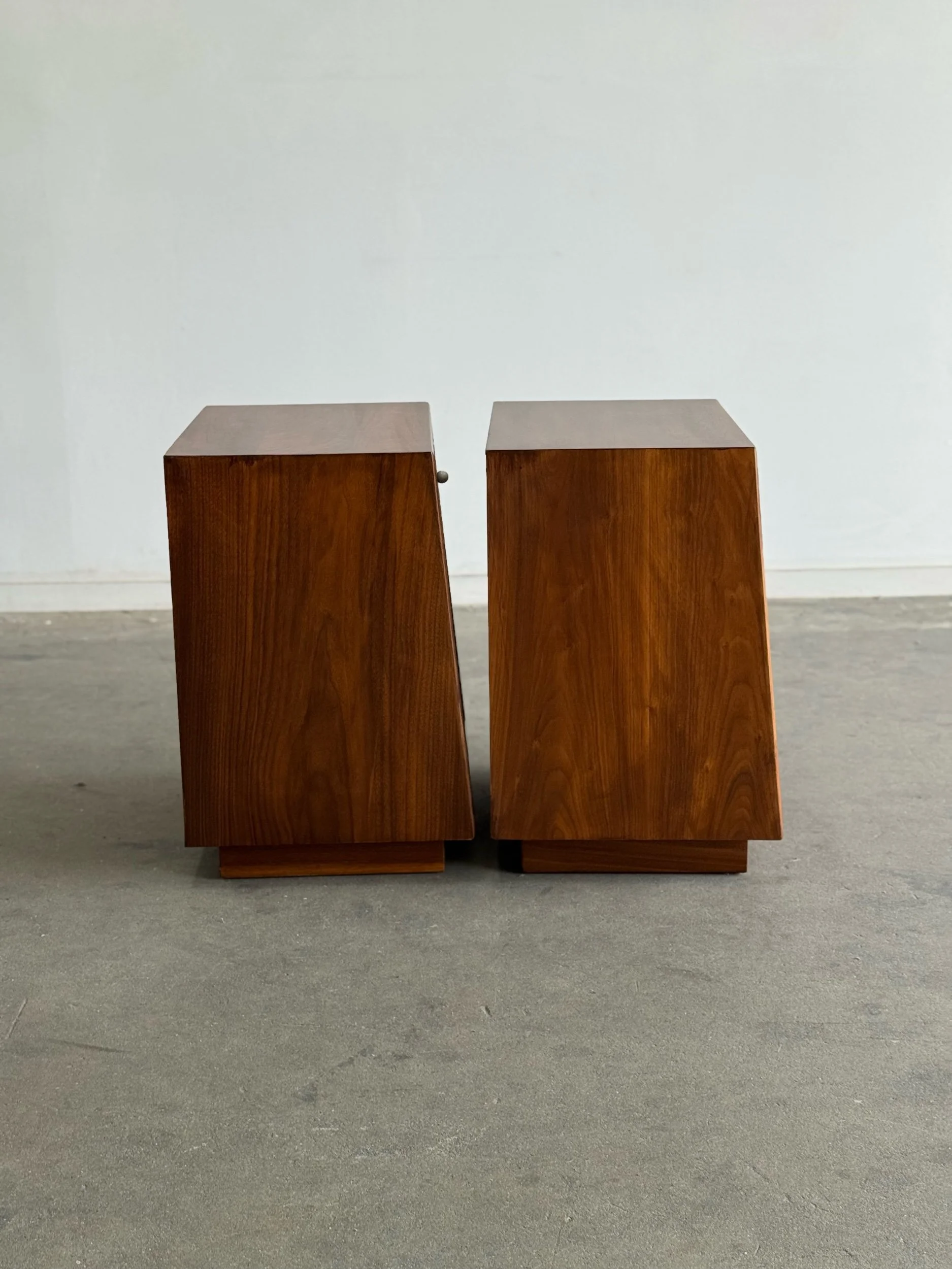 Fully restored nightstands with one removable shelf , and well preserved original porcelain hardware. Each unit shows well with no major areas of wear. Nightstands are structurally sound and sturdy. Price is for the pair.