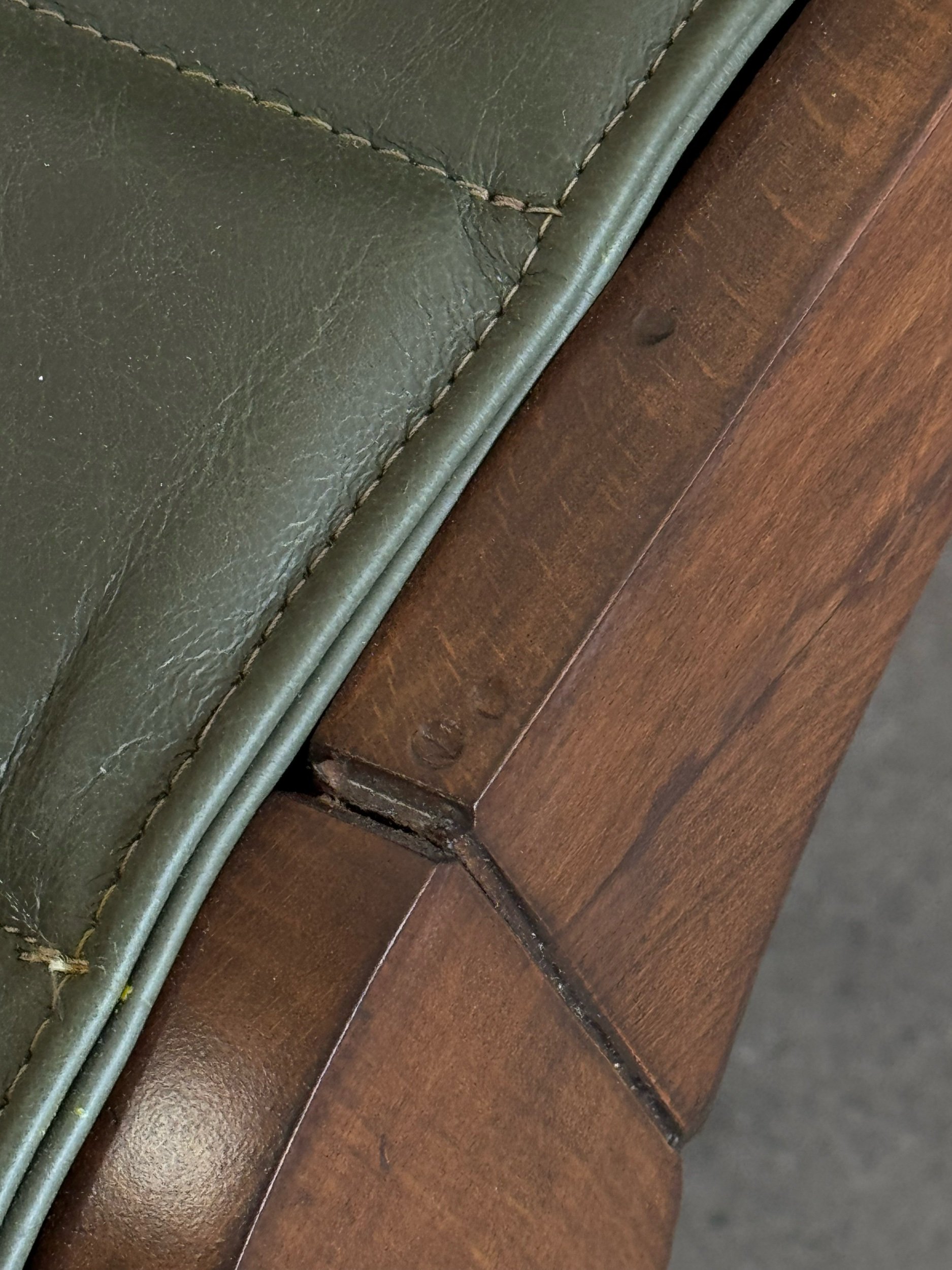 Vintage Sculptural Dining Chairs in Olive Leather - Set of Four