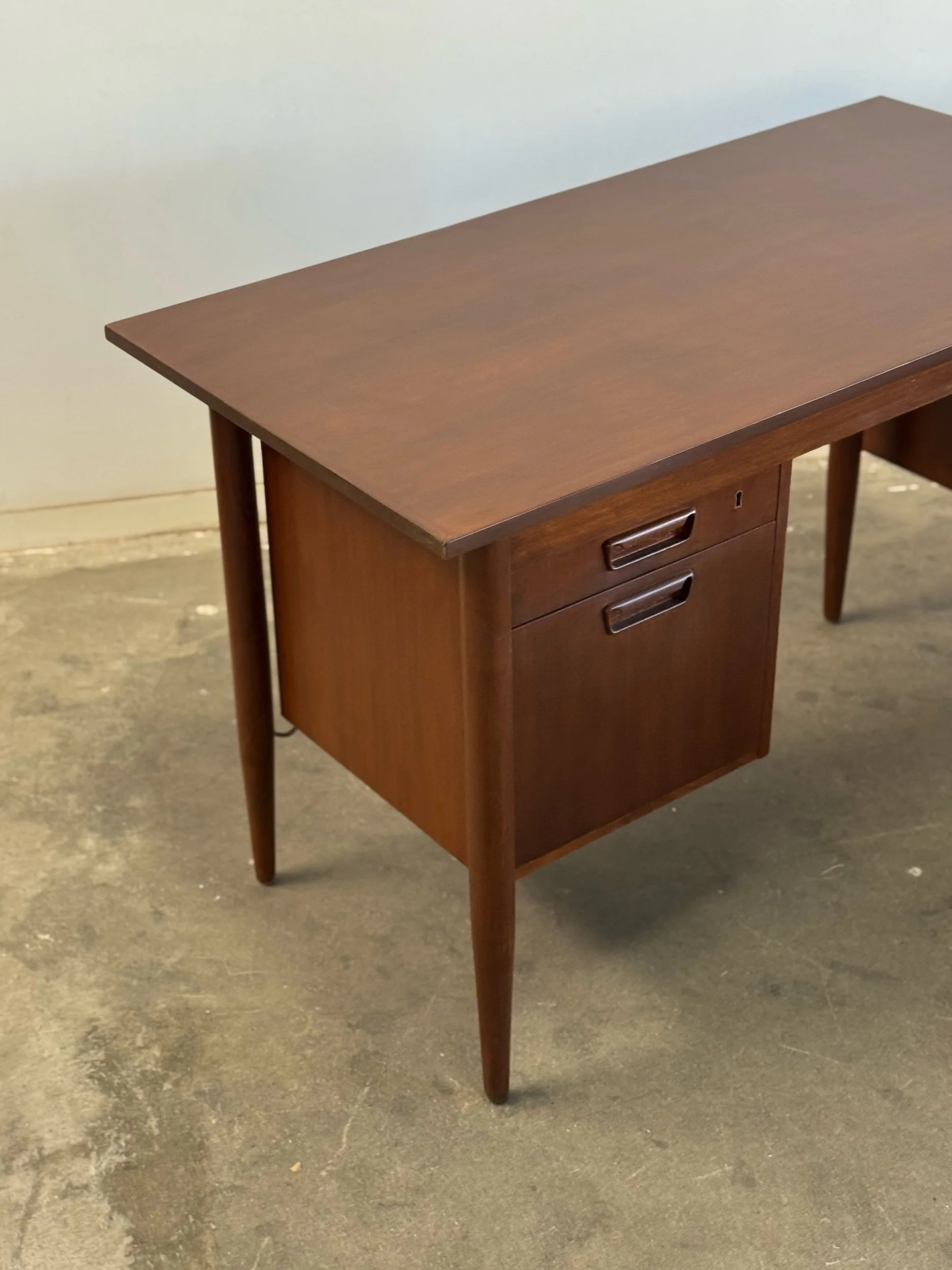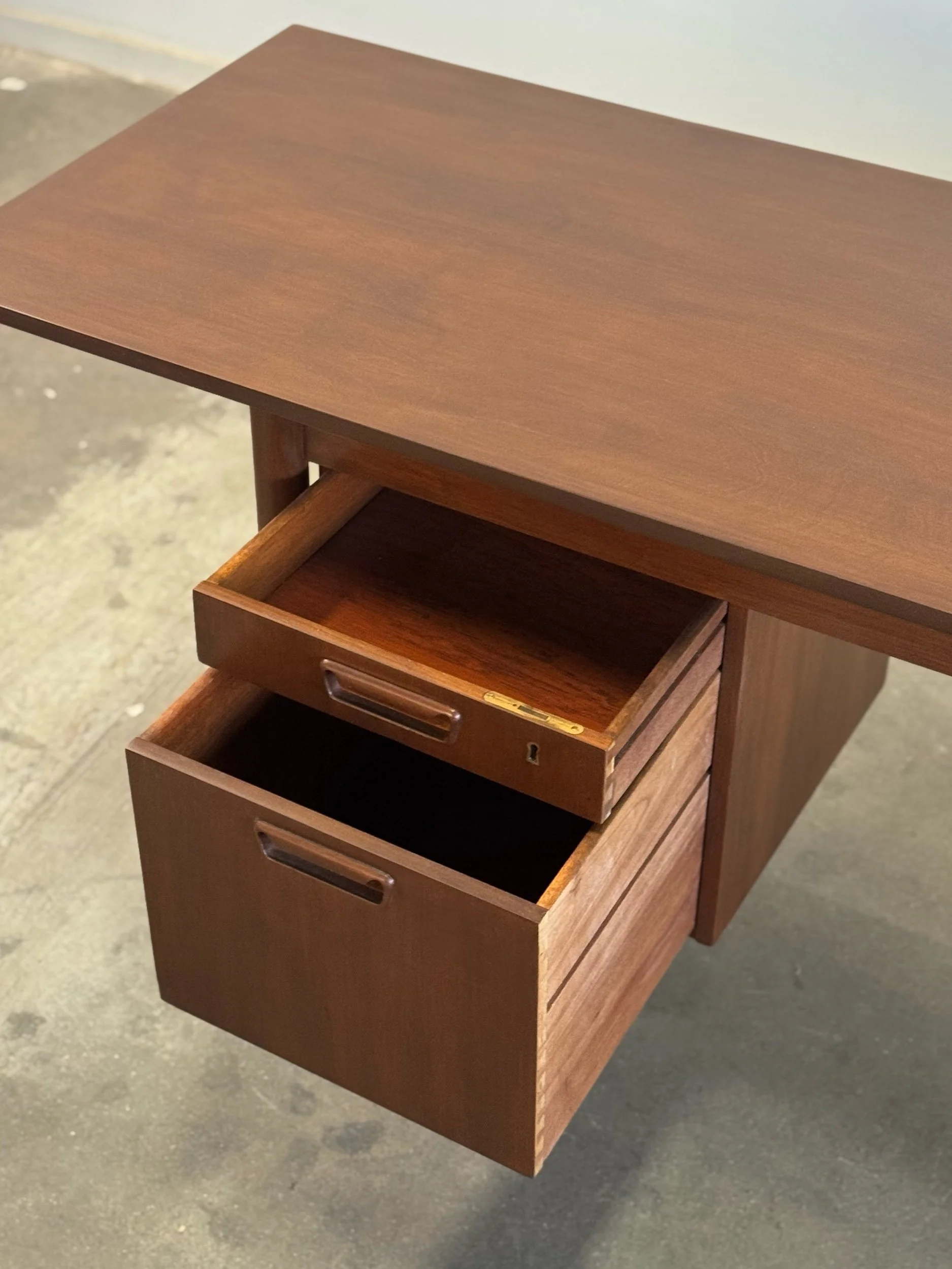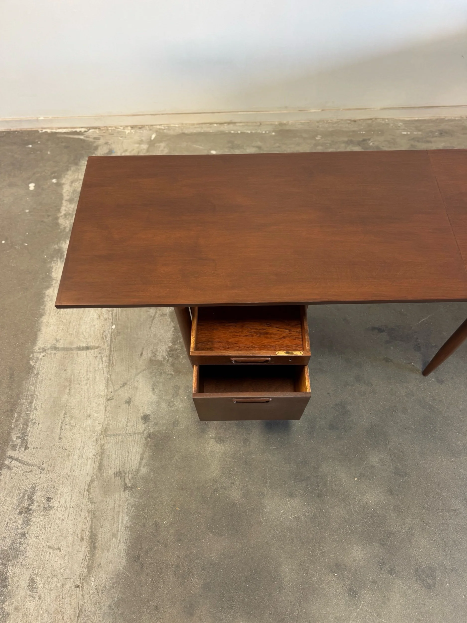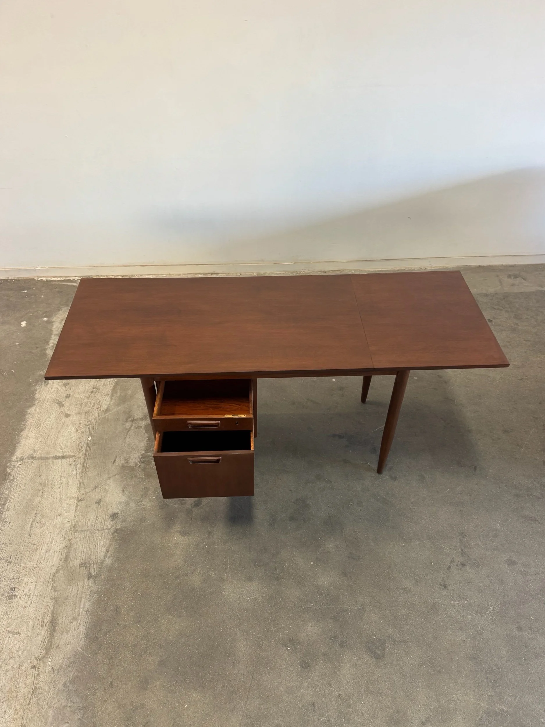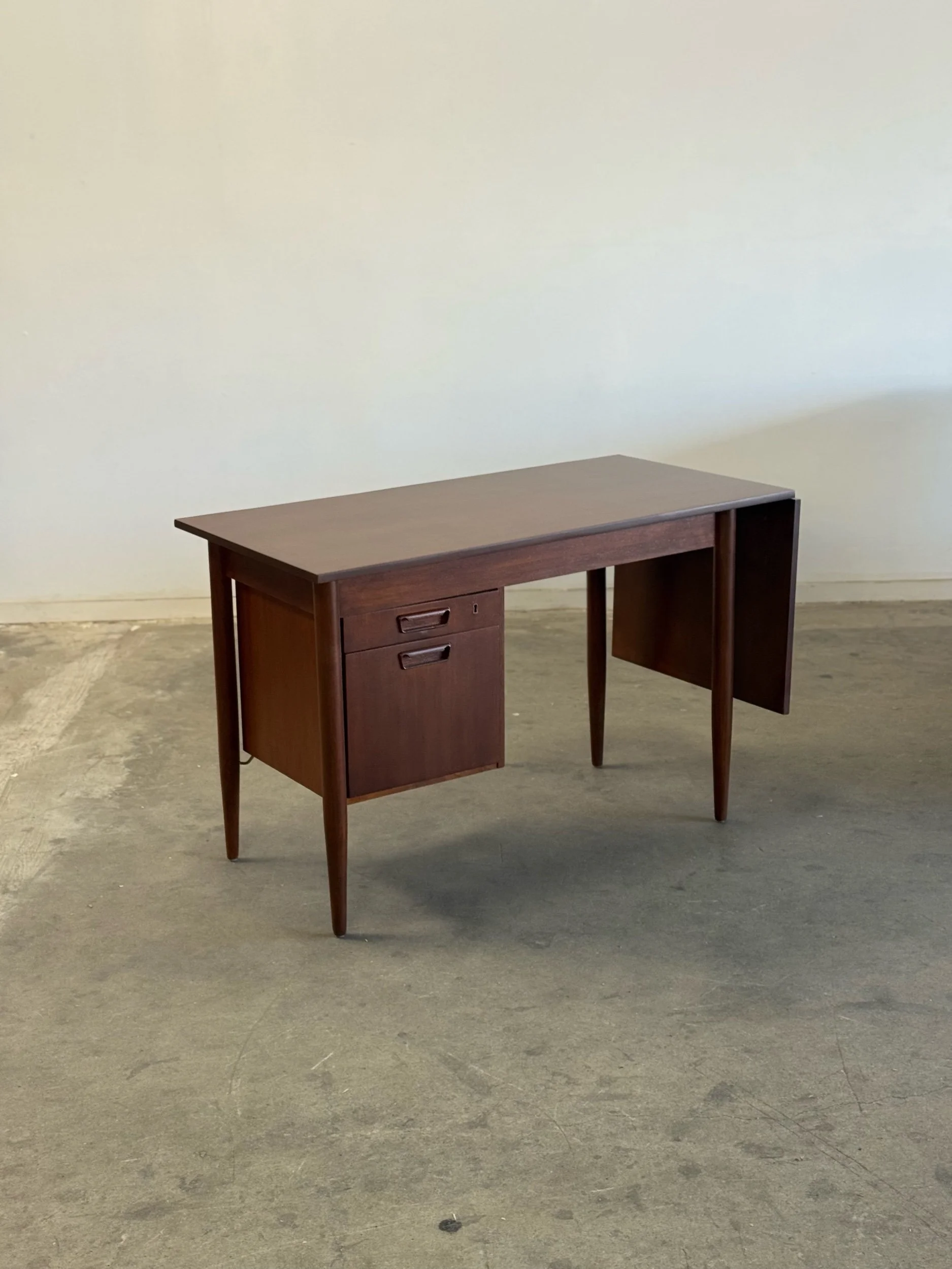 1960s desk with a drop leaf top. Item is structurally sound and fully functional with no major areas of wear.