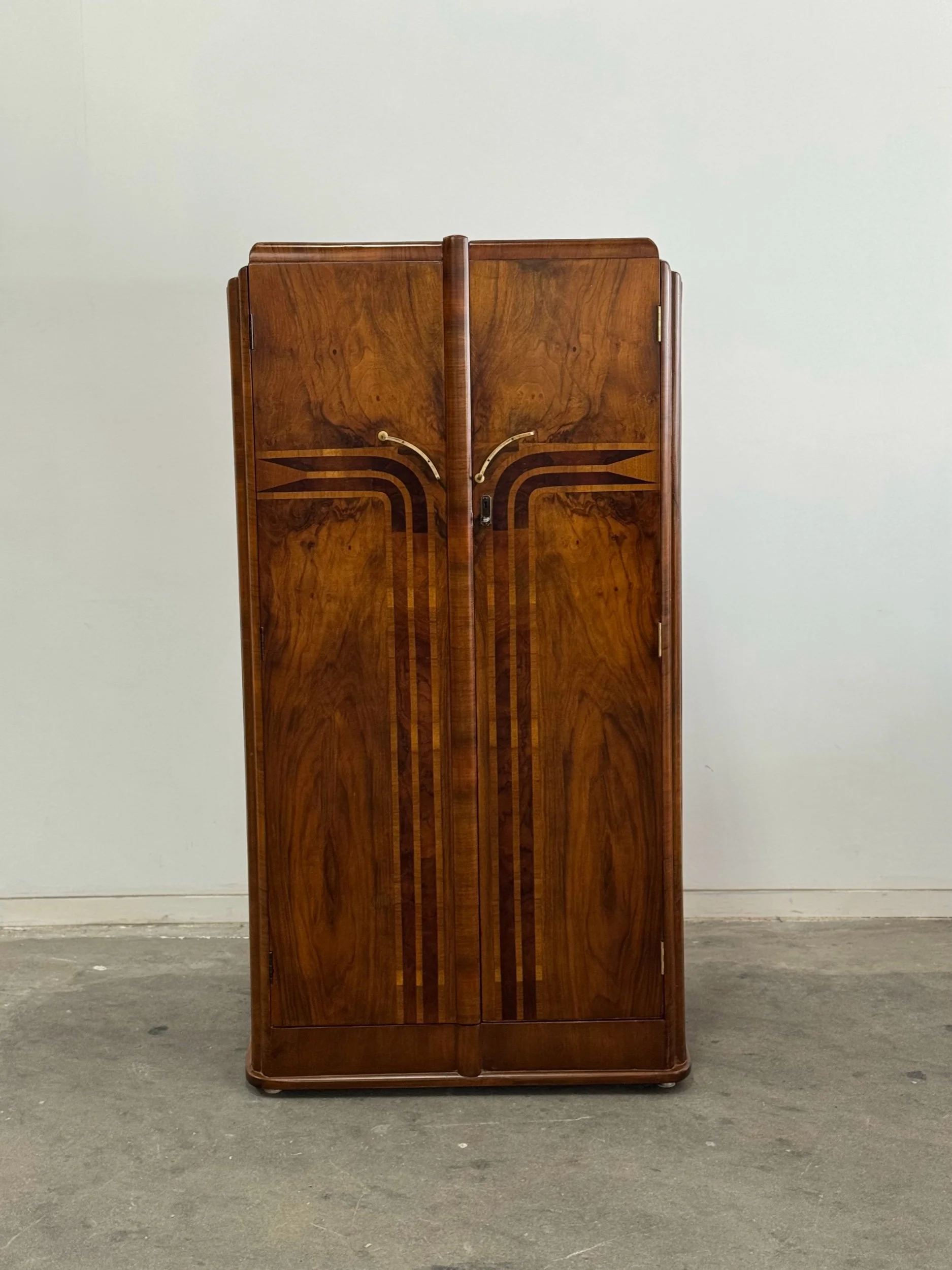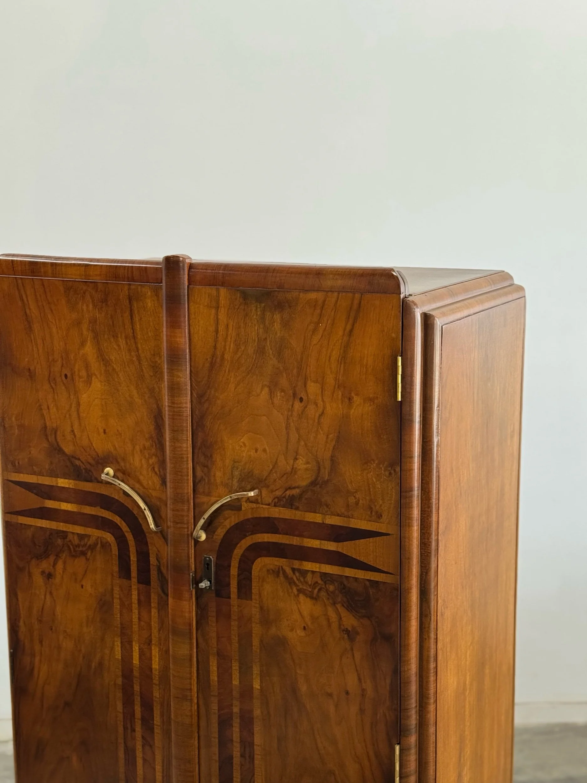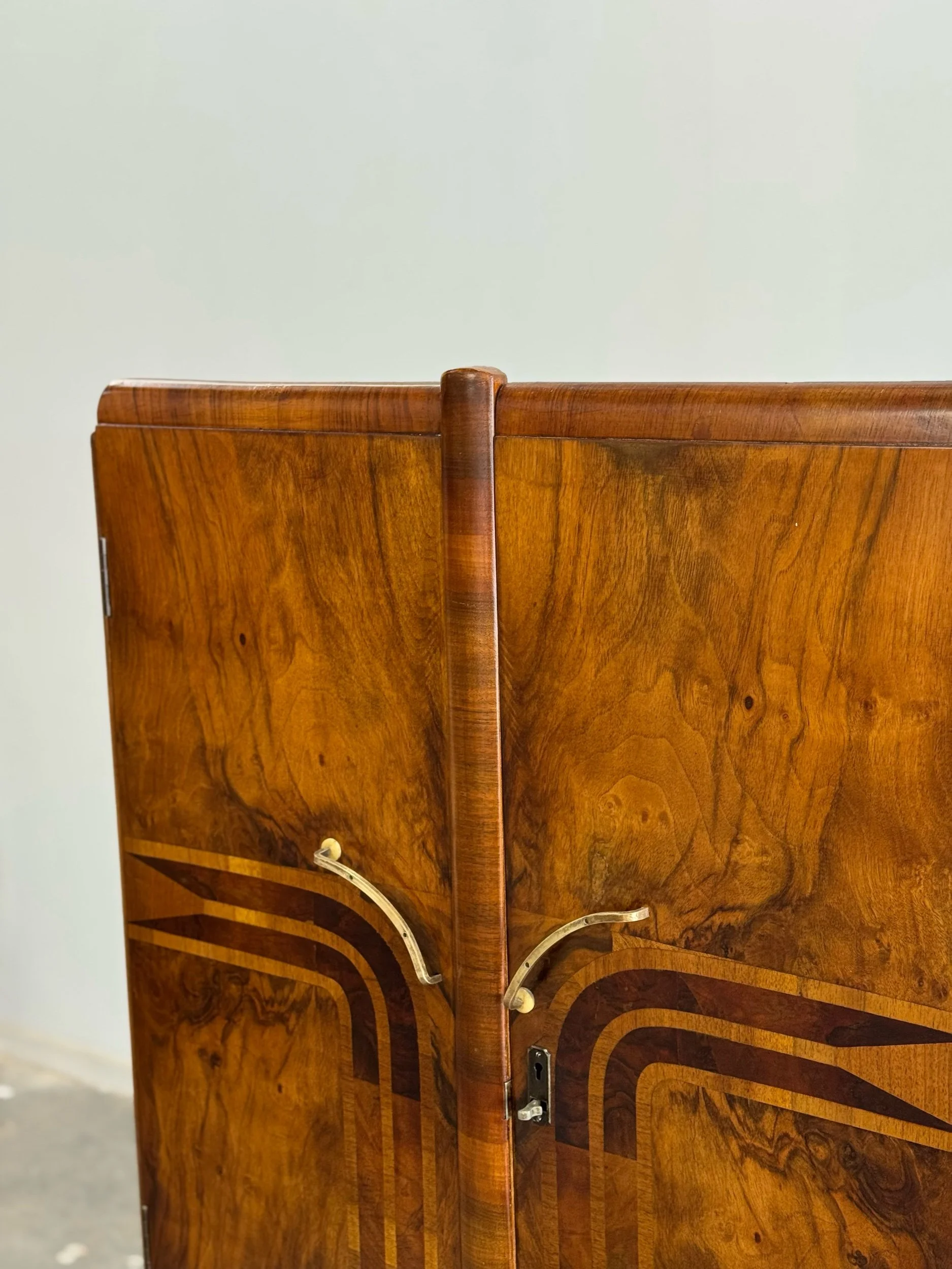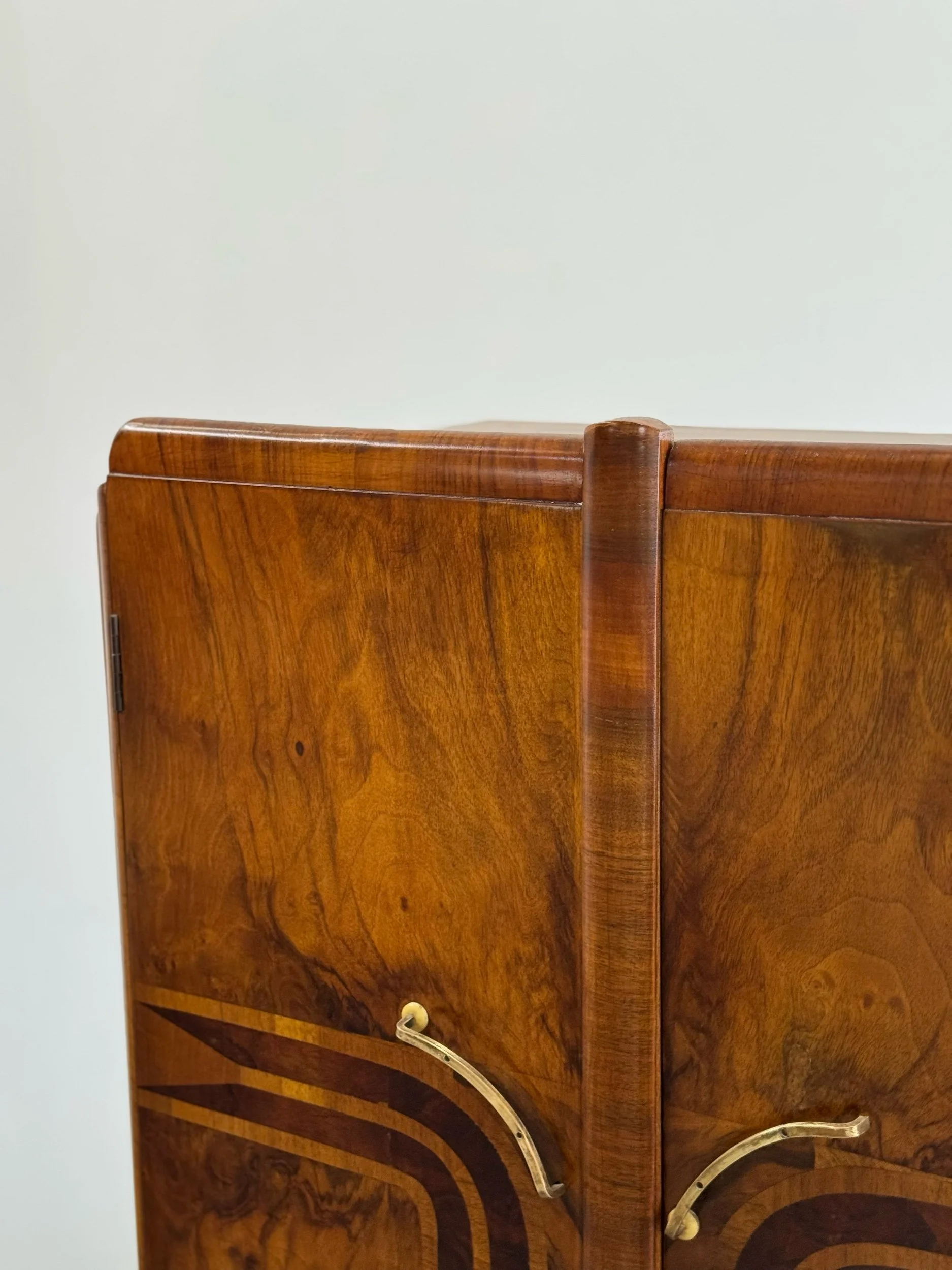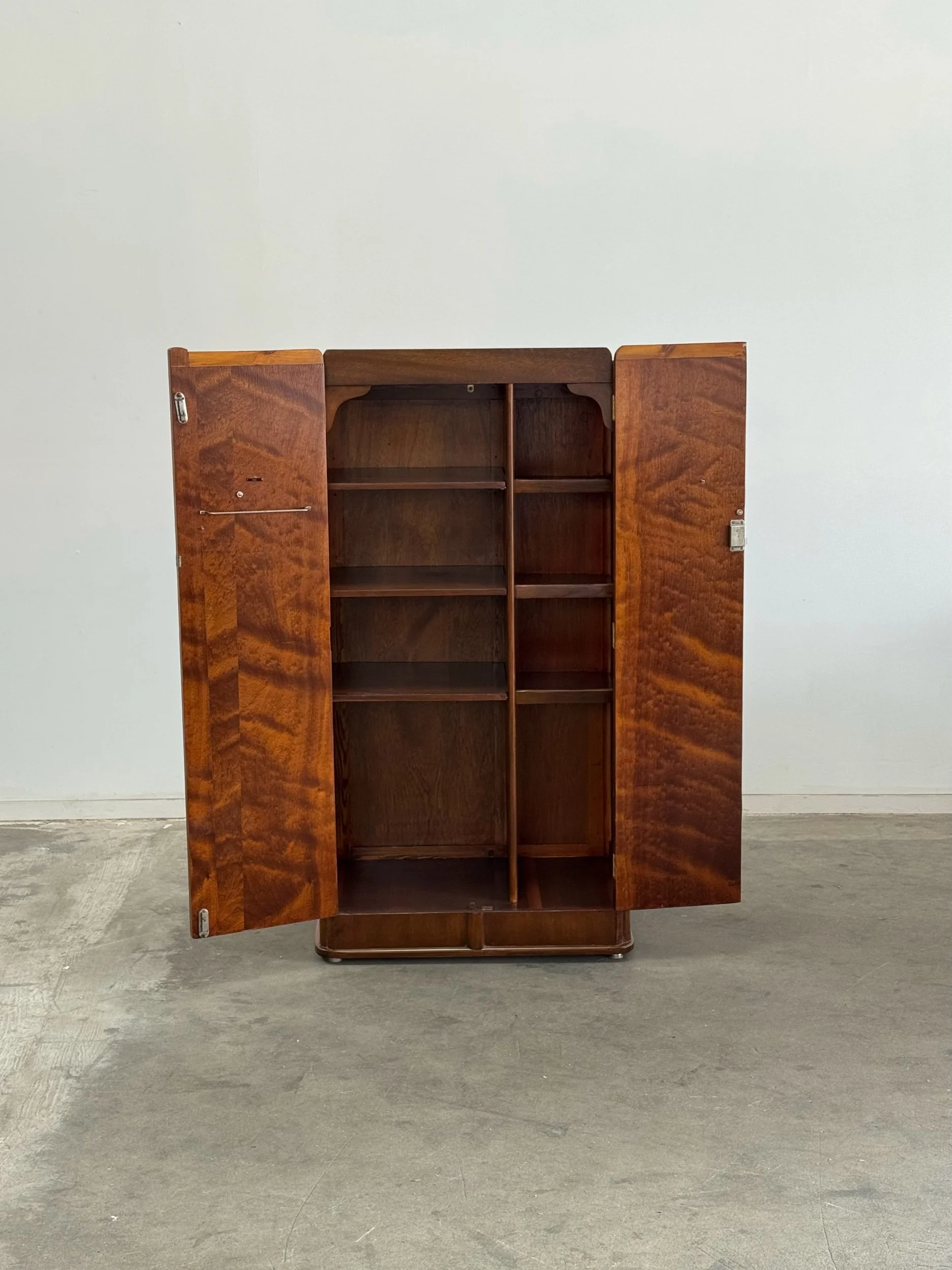Danish modern corner bookcase in fully restored condition. Item is structurally sound and sturdy with no wobble. Unit features a great angular corner design and ample stretchers for great support.