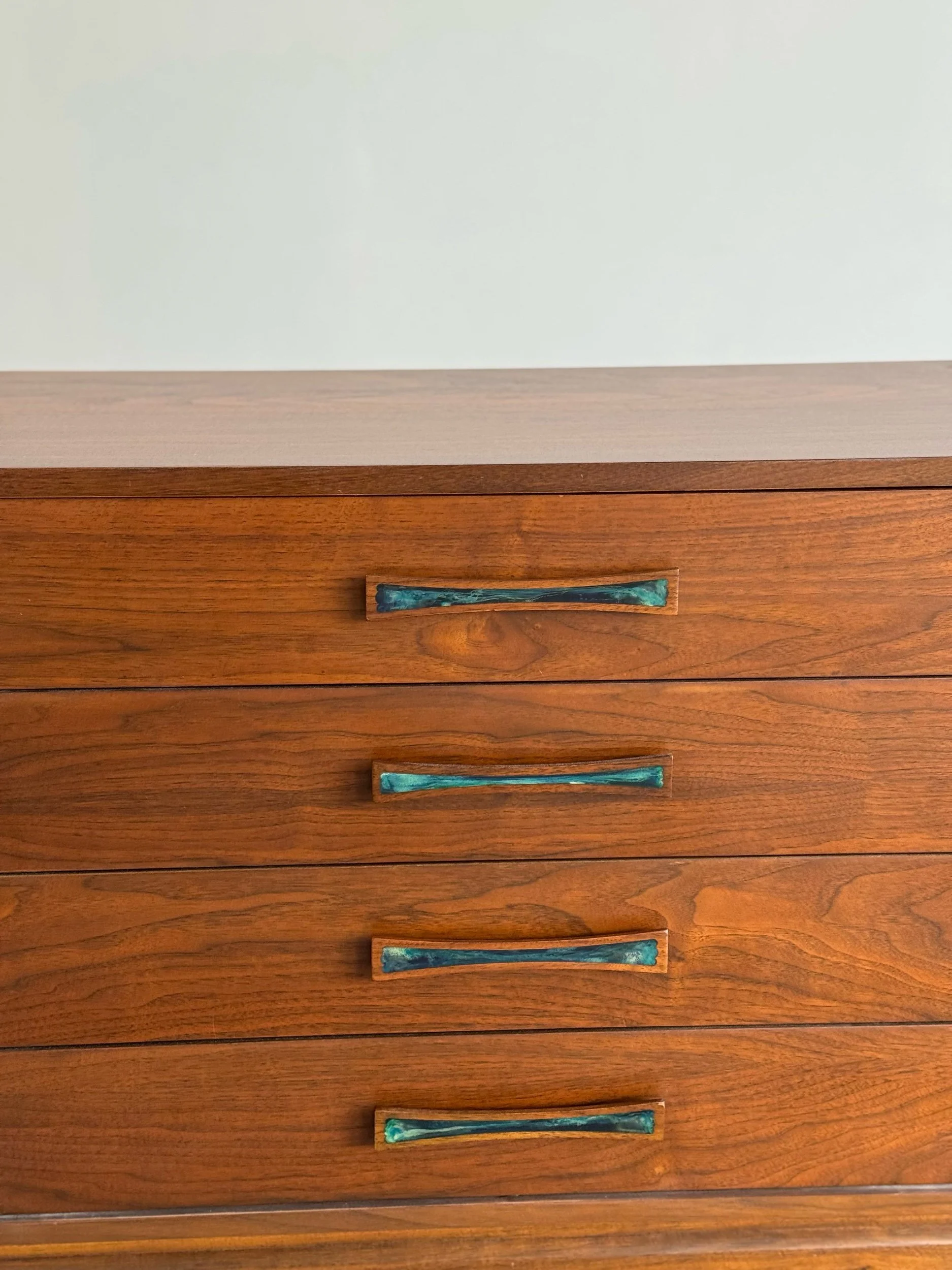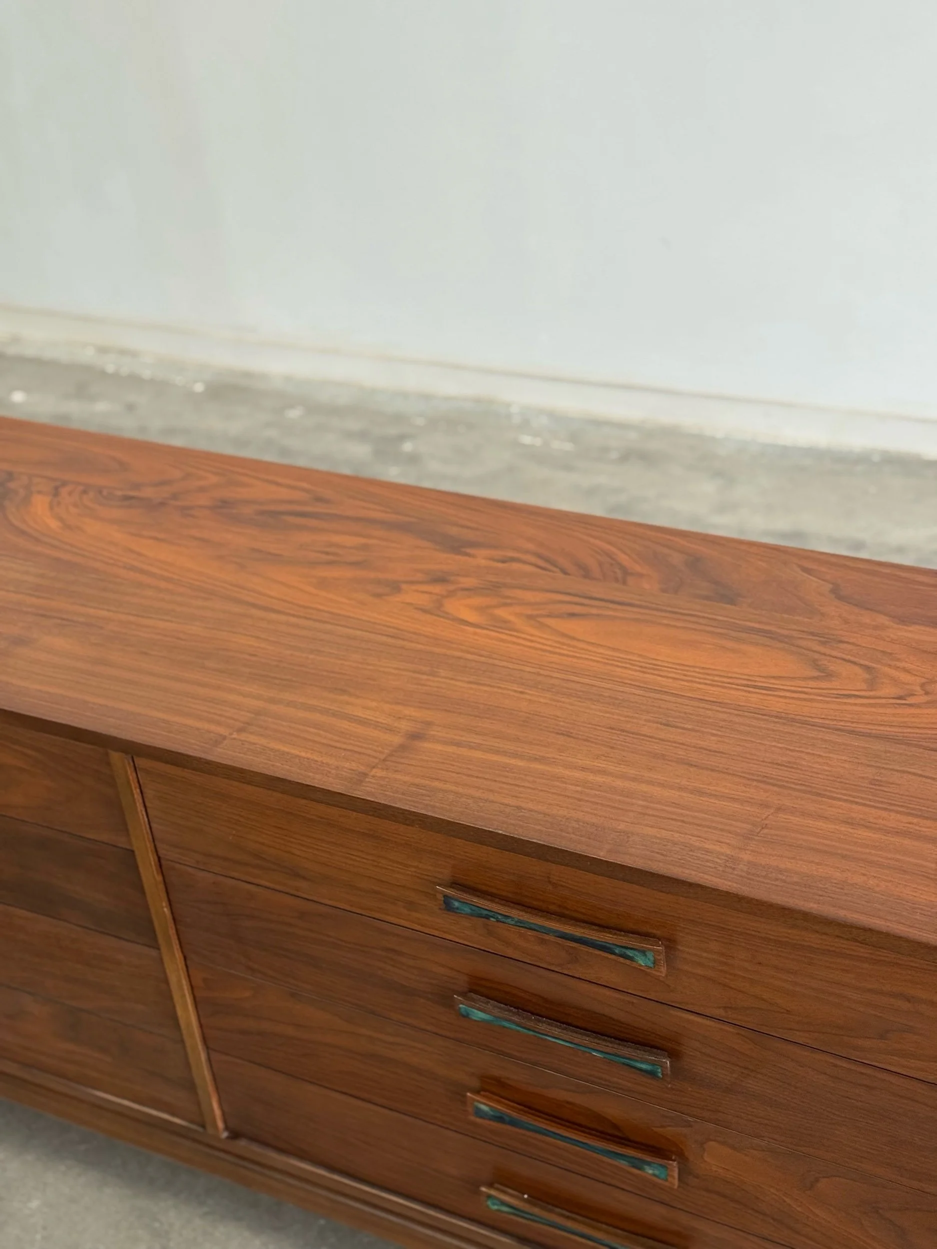 Fully restored walnut dresser in great condition. Item has been fully restored and shows well with no areas of major wear. Unit is structurally sound and fully functional.